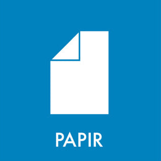 Et stilrent Papir-skilt i den klassiske blå farve fra det danske sorteringssystem.