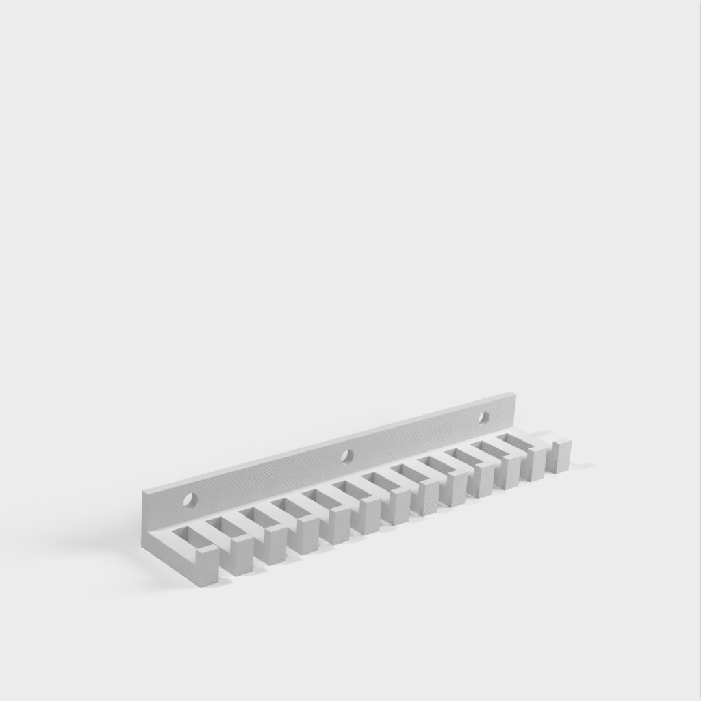 Den 12-spåriga lilla kabelhållaren är designad för att enkelt monteras på sidan av ditt skrivbord för att hålla mindre kablar som USB-kablar. Den är 125 mm lång med 12 5 mm breda spår. Ändarna har en 4 mm upphöjd bit för att hålla kablarna från att glida av.