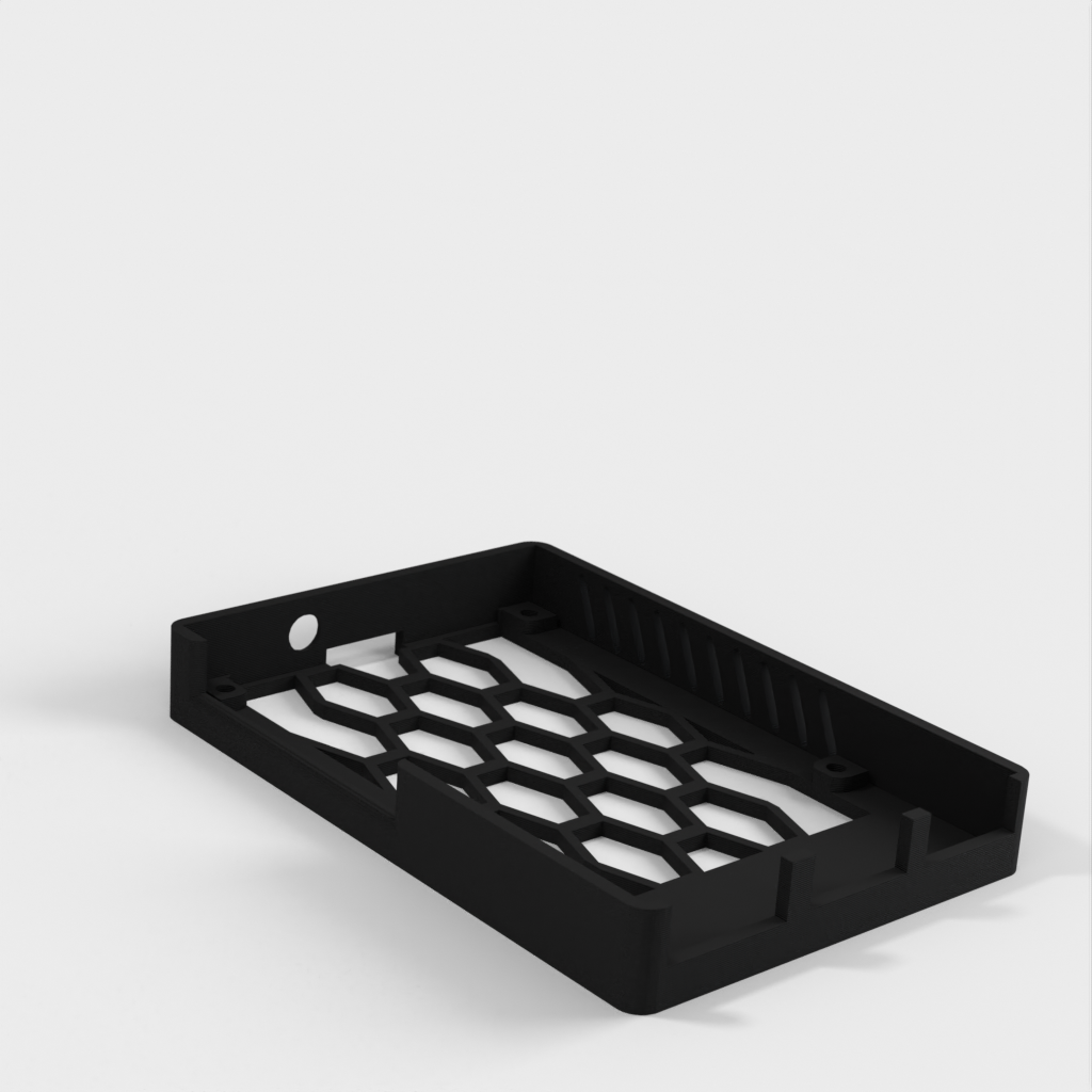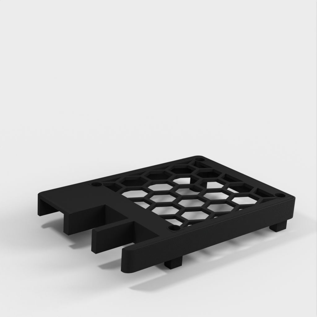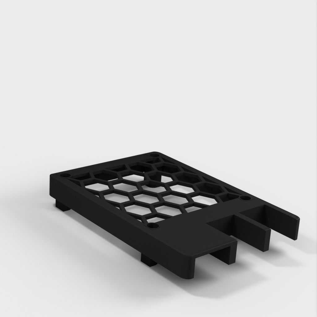 Raspberry Pi 5 fodral med låg profil och aktiv kylare. Fodralet är utformat för att vara tillräckligt öppet för att rikta luftflödet effektivt, vilket säkerställer optimal prestanda för din Raspberry Pi 5. M2.5 20 mm skruvar eller kortare krävs för montering, och du kan överväga att lägga till gummifötter i botten för ökad stabilitet. Ett praktiskt och snyggt tillbehör för alla Raspberry Pi-entusiaster.