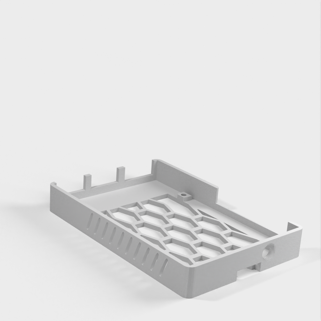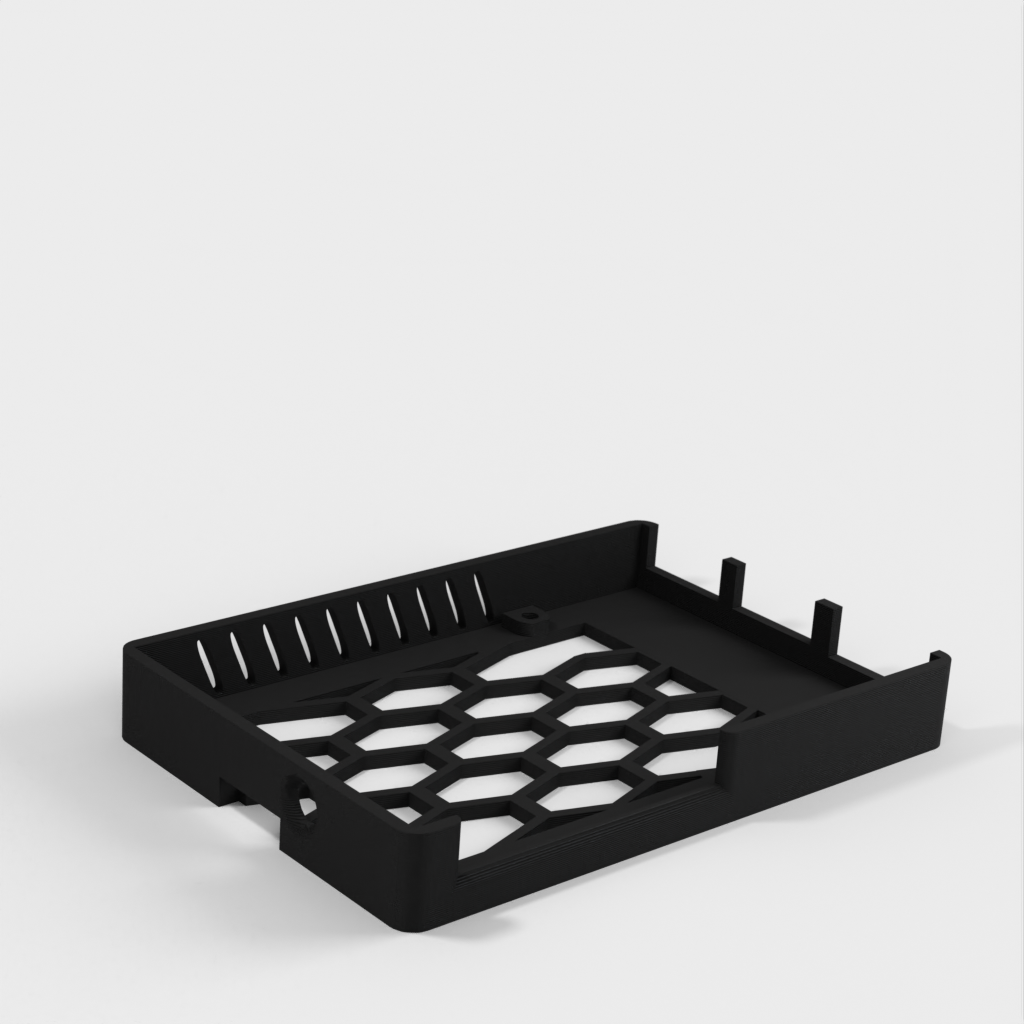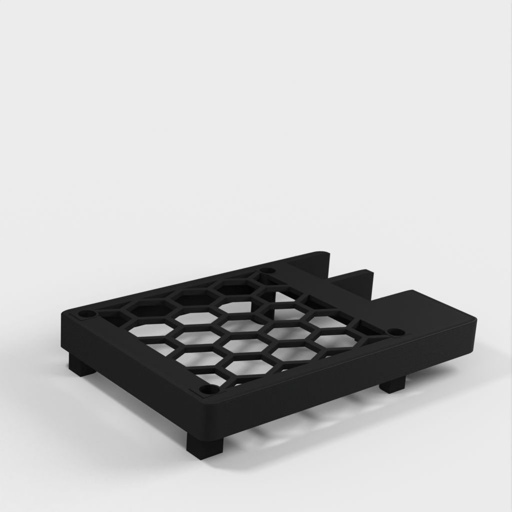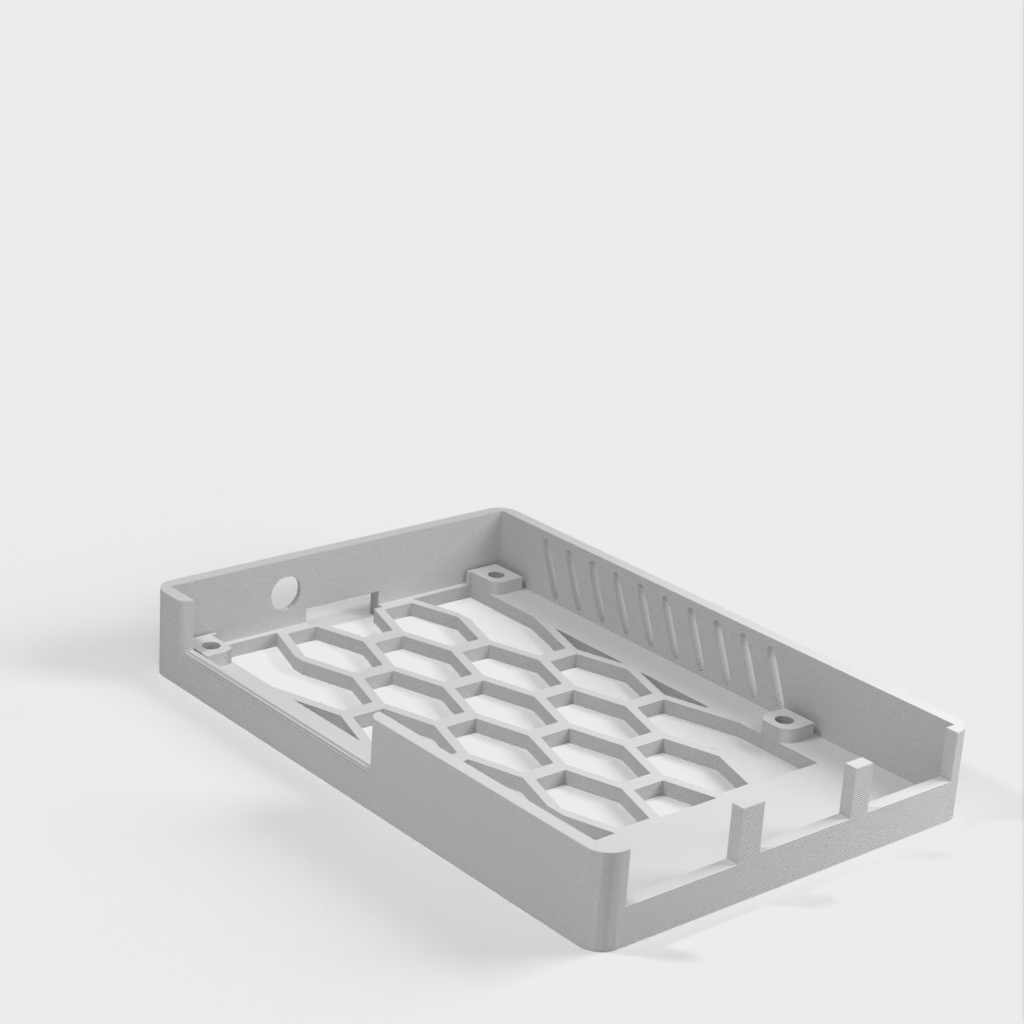 Raspberry Pi 5 fodral med låg profil och aktiv kylare. Fodralet är utformat för att vara tillräckligt öppet för att rikta luftflödet effektivt, vilket säkerställer optimal prestanda för din Raspberry Pi 5. M2.5 20 mm skruvar eller kortare krävs för montering, och du kan överväga att lägga till gummifötter i botten för ökad stabilitet. Ett praktiskt och snyggt tillbehör för alla Raspberry Pi-entusiaster.