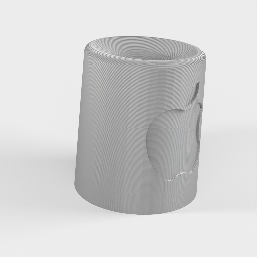 En enkel hållare för Apple Pencil. Det finns tre olika versioner tillgängliga som kan passa olika utskriftsupplösningar. Detta stativ ser till att din Apple Pencil förvaras säkert och elegant när den inte används. En modell med Apple-logotypen ingår också för de hårda fansen. Observera: Detta är endast stativet, Apple Pencil ingår inte.