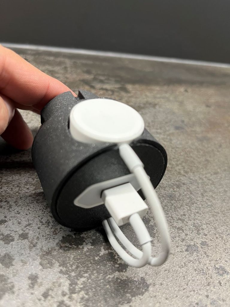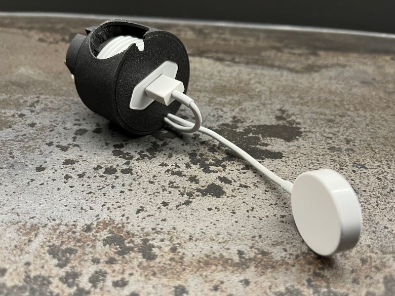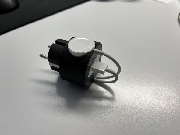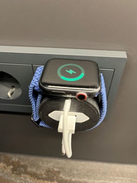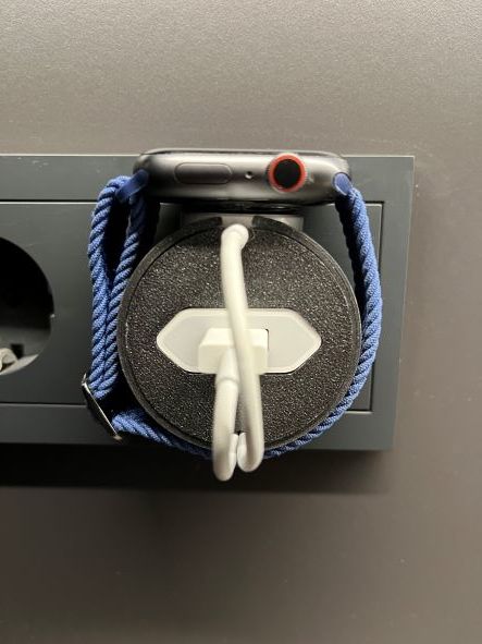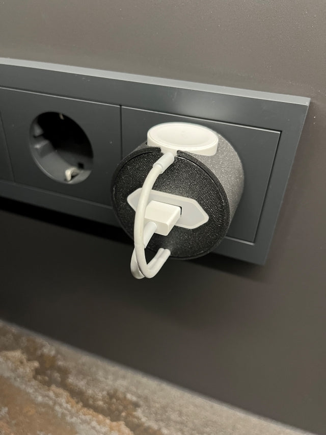 Detta är en laddstation speciellt designad för din Apple Watch. Den är perfekt för att hålla din klocka organiserad och skyddad medan den laddas. Den är kompatibel med europeiska uttag och är lätt att montera. Med möjligheten att täcka kabeln med det medföljande kabelskyddet säkerställer du optimalt skydd och ordning. Sätt bara i USB-kontakten, rulla ihop din kabel som visas på bilden, sätt i laddningsplattan och din Apple Watch Dock V2 är klar att använda.