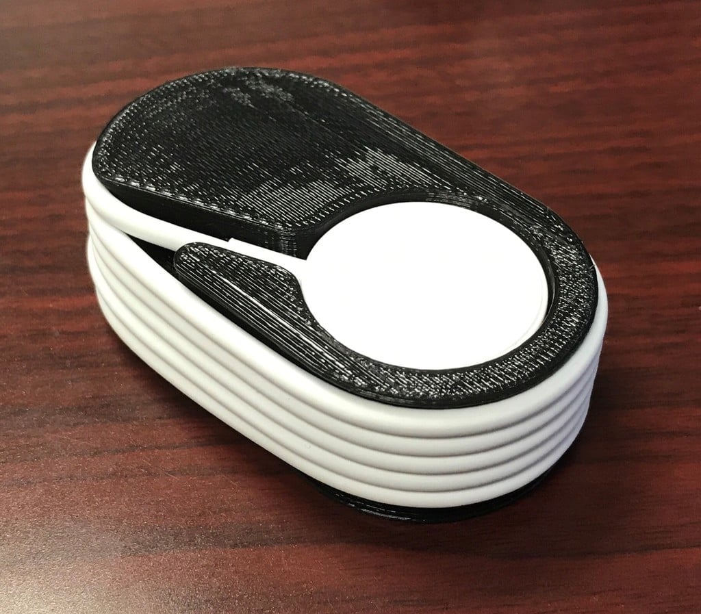 Detta är en hållare för laddningskabeln till din Apple Watch. Med denna hållare kan du packa undan laddaren snyggt när du inte använder den. Det är en enkel och praktisk lösning för att hålla ordning på ditt skrivbord eller nattduksbord.