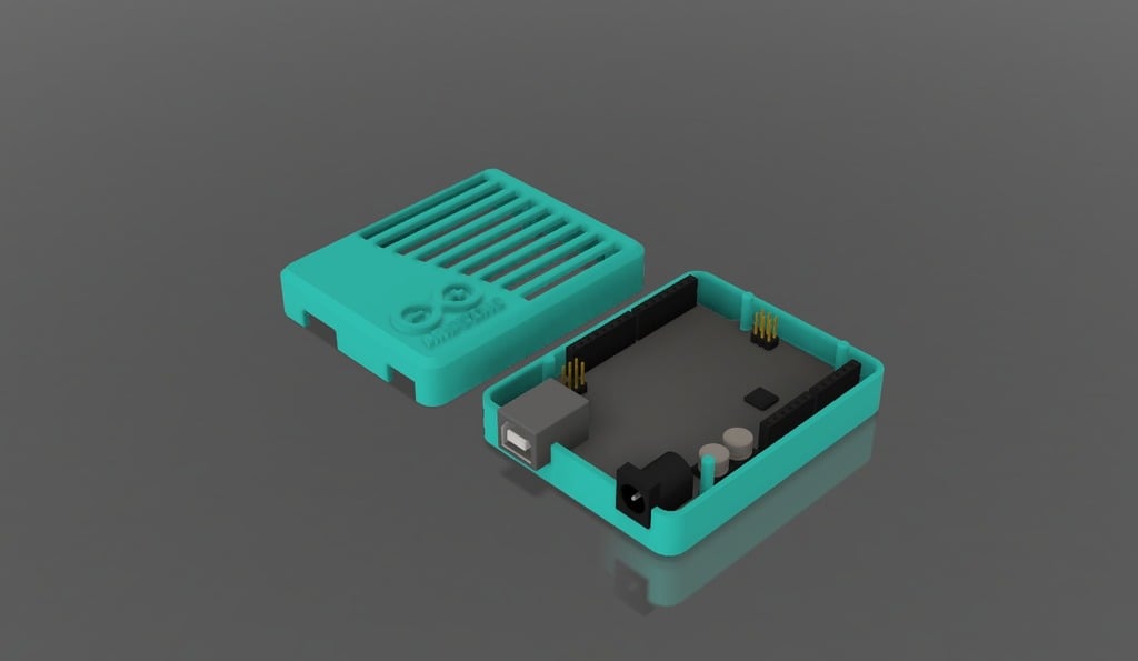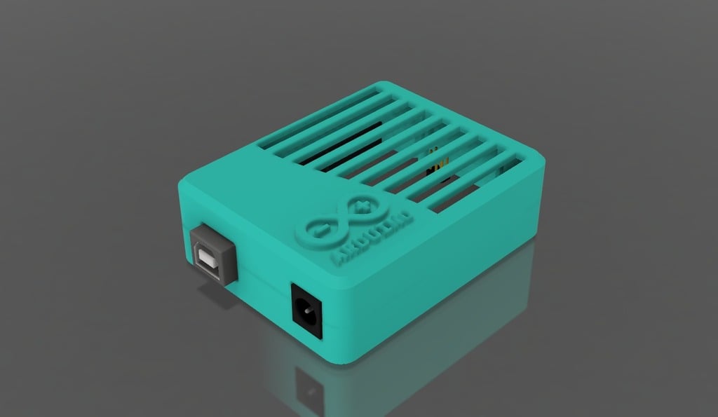 Detta är ett fodral för Arduino UNO baserat på Taylor Steins design. Fodralet är utrustat med den officiella Arduino-logotypen. Den är perfekt för att skydda din Arduino UNO-bräda och ger en snygg twist till ditt projekt.