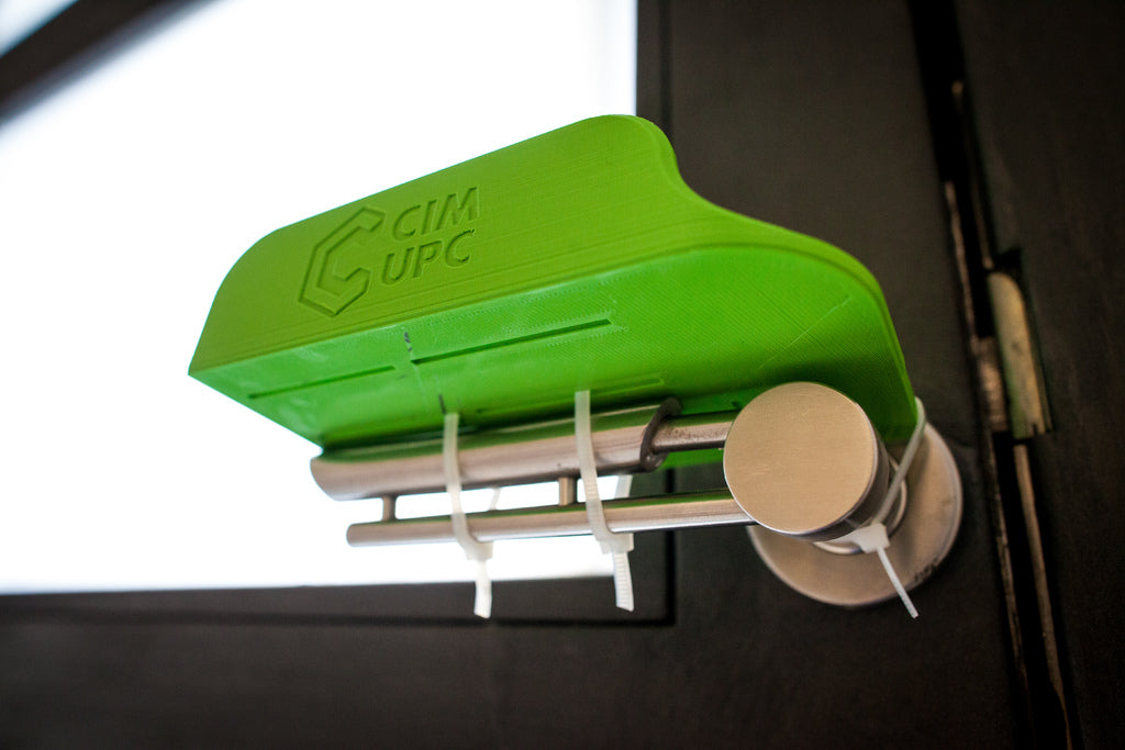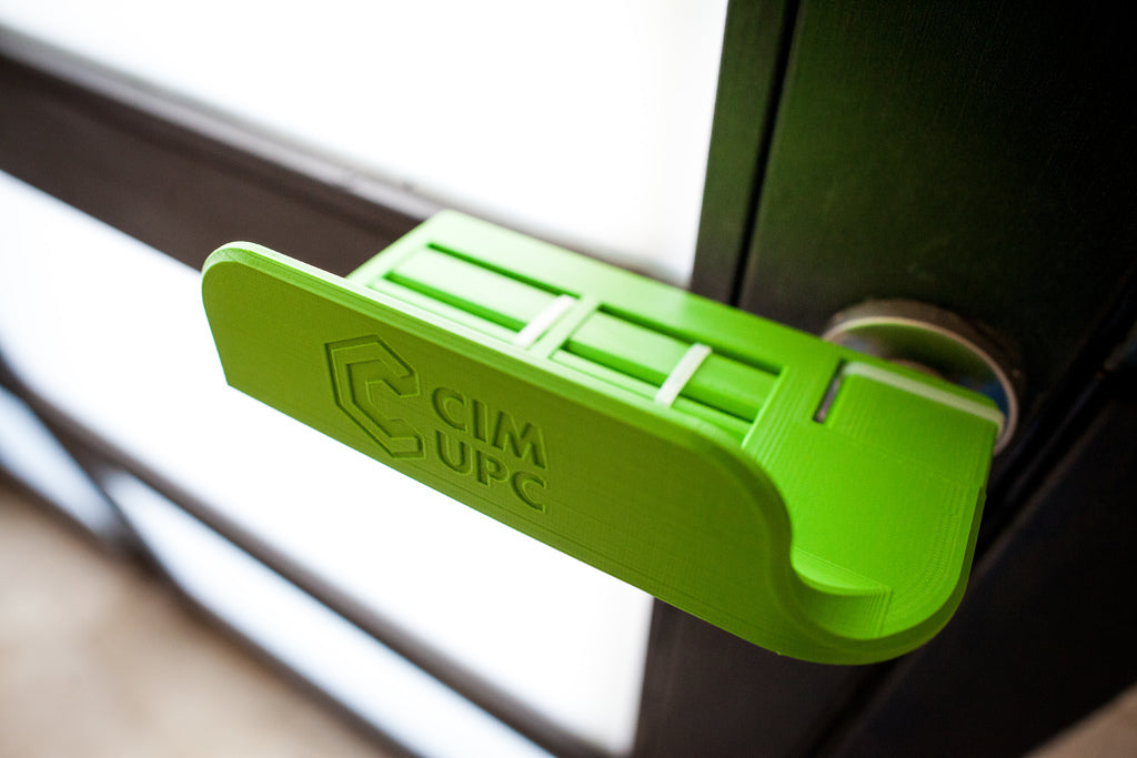 Arm Door Opener - COVID-19 är en fristående dörröppnare designad för att minska risken för COVID-19-infektion. Denna enhet kan enkelt tillverkas med en stationär 3D-skrivare och monteras med bara 3 buntband. Arm Dörröppnaren kan anpassas till olika dörrhandtag och är lätt att montera. Den finns för både höger- och vänsteröppningsdörrar och kan installeras på under en minut. Denna produkt är idealisk för offentliga utrymmen i byggnader, sjukhus, arbetscentra eller butiker där det finns en hög risk för virusöverföring genom dörrhandtag.