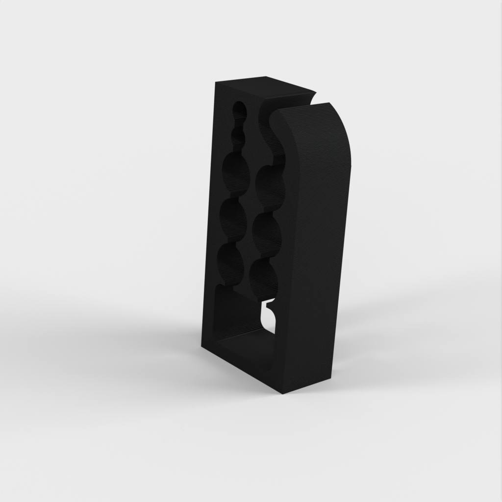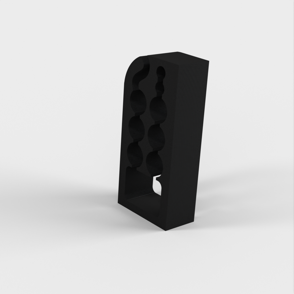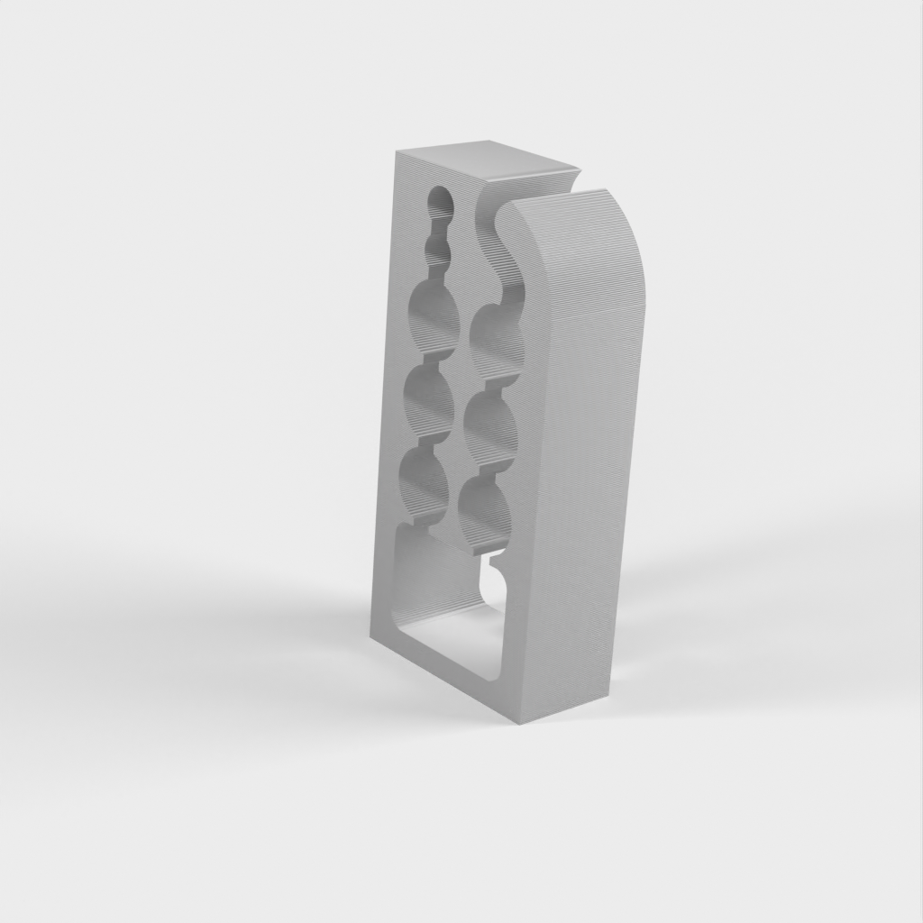 Sockelmonterbar kabelorganisator som kan organisera högen av datorkablar som löper längs med socklar på ditt kontor. Denna organisatör kan hålla flera datorkablar av nästan vilken diameter som helst och kommer att hålla dem organiserade när de används i par.