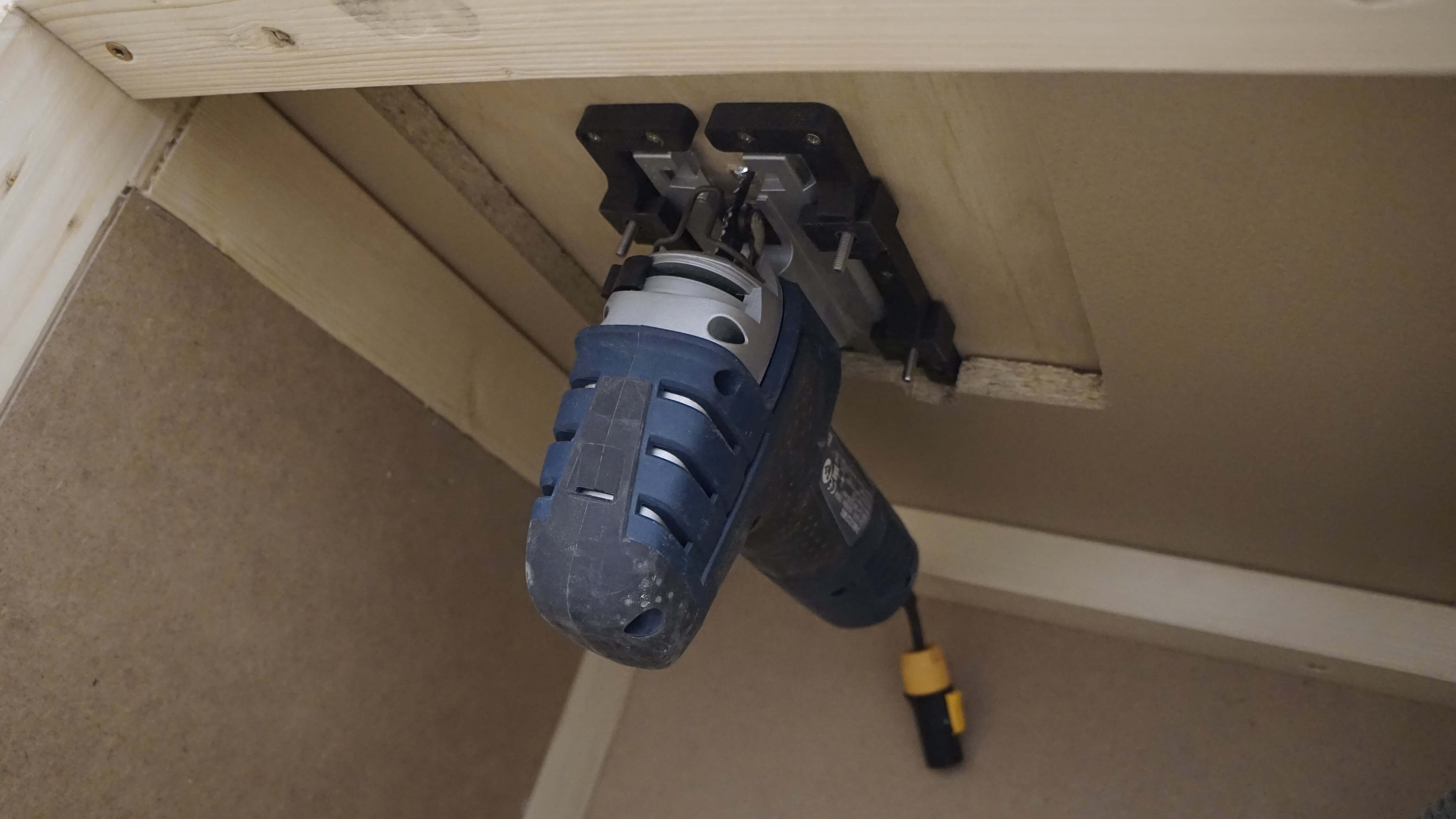 Detta är ett bordsfäste för din Bosch GST 150 CE geringssåg, som gör att du kan förvandla din geringssåg till en bandsåg eller sticksåg. Monteringssatsen består av två delar - en vänster och en höger konsol.