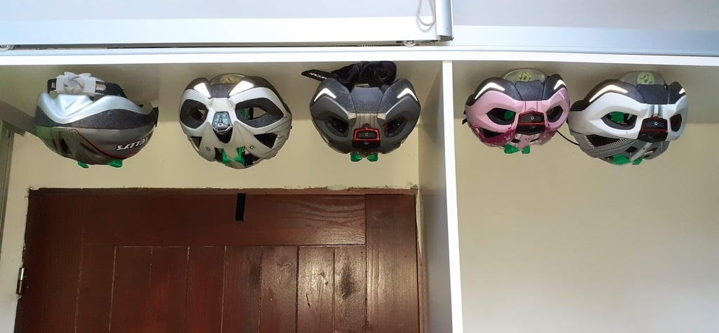 Med vår cykelhjälmshållare kan du enkelt förvara din hjälm på ett organiserat och effektivt sätt. Denna praktiska hållare ser till att din hjälm alltid är lätt att hitta och nära till hands. Det rekommenderas att fästas med ett gummiband för bättre stabilitet. Så nästa gång du ska ut på en cykeltur kan du snabbt och enkelt hämta din hjälm.