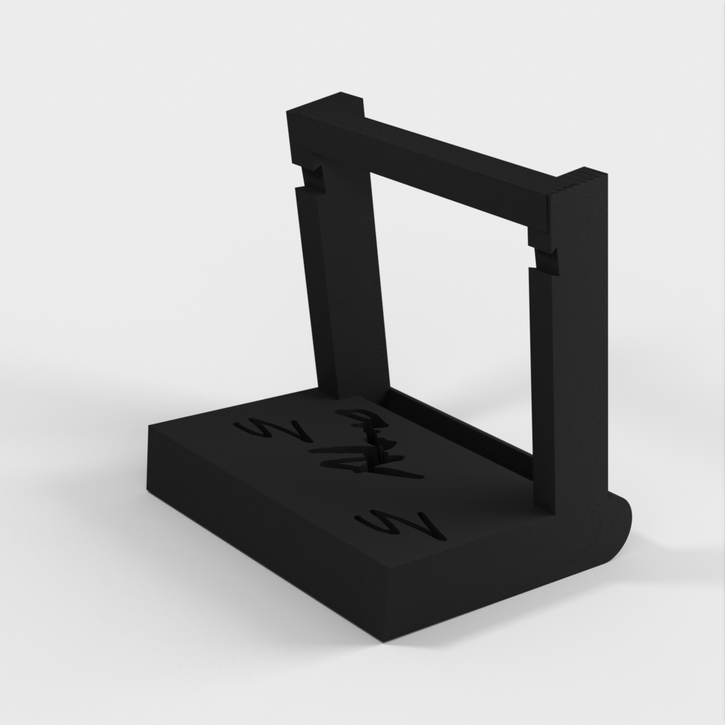 Detta unika telefonställ i 3D-modell kan hålla två telefoner samtidigt, antingen vertikalt eller horisontellt. Modernt och stilrent, det är ett praktiskt tillskott till alla skrivbord eller arbetsplatser. Mixa gärna om eller ändra det för att passa dina behov! Njut och ha kul!