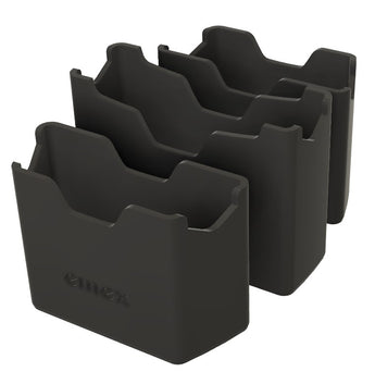 Finns i två versioner: en robust hård variant som garanterar stabil placering på alla ytor, och en mjuk TPU-version som erbjuder skonsam, men ändå organiserad förvaring med enkel isättning och urtagning av dina enheter.