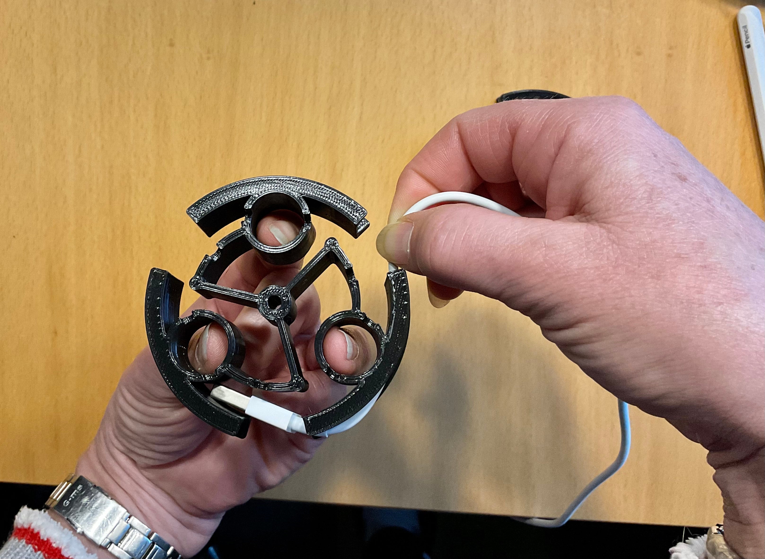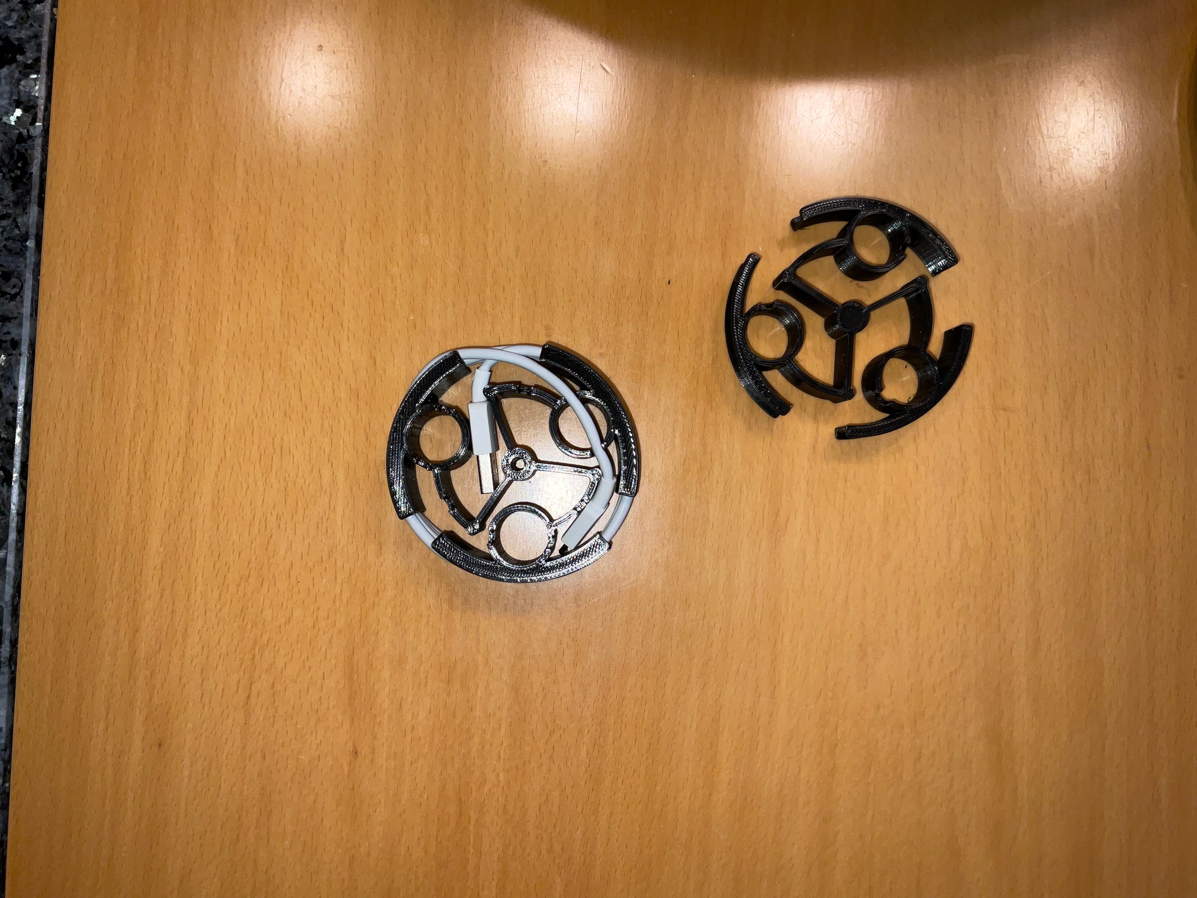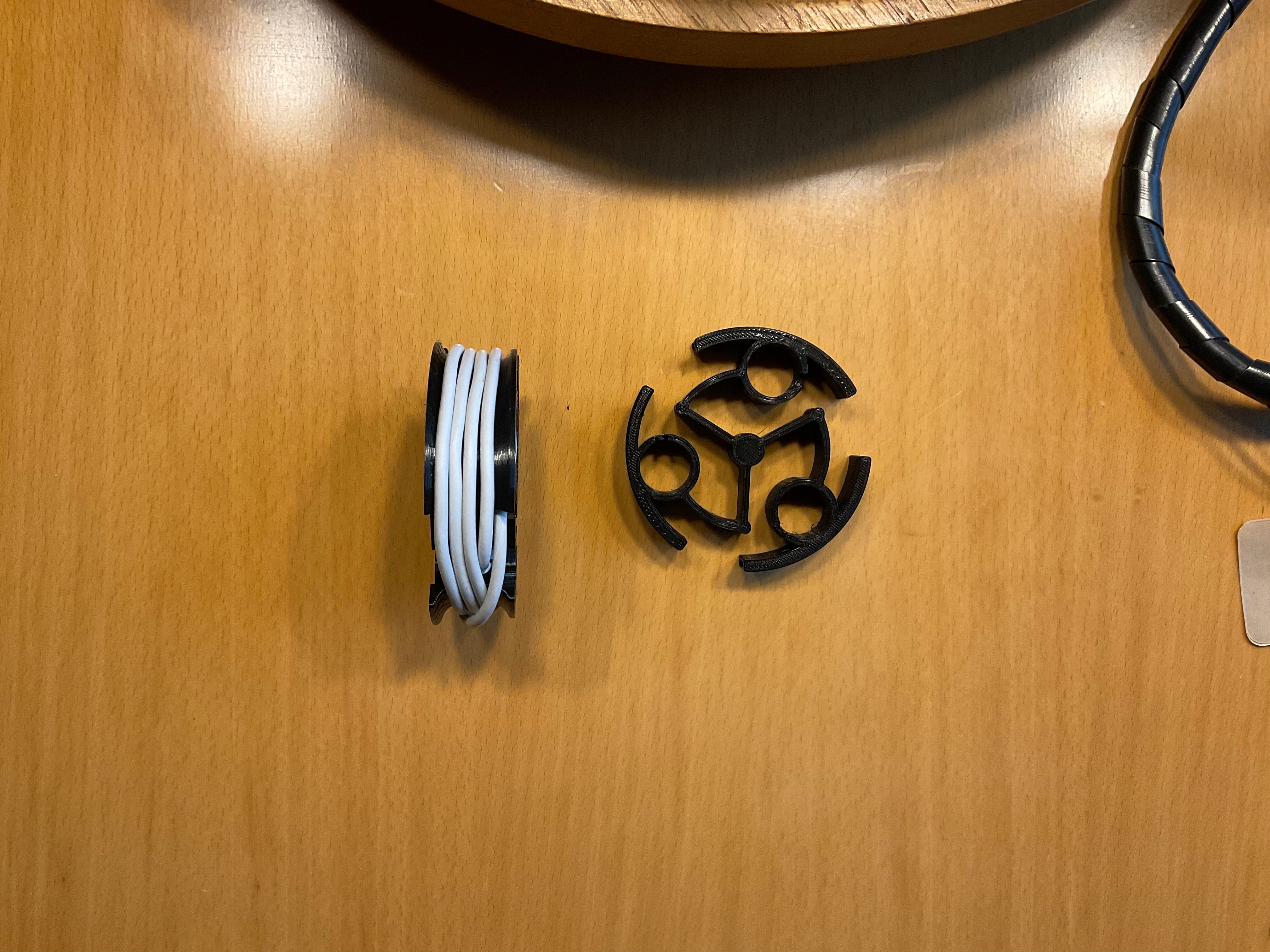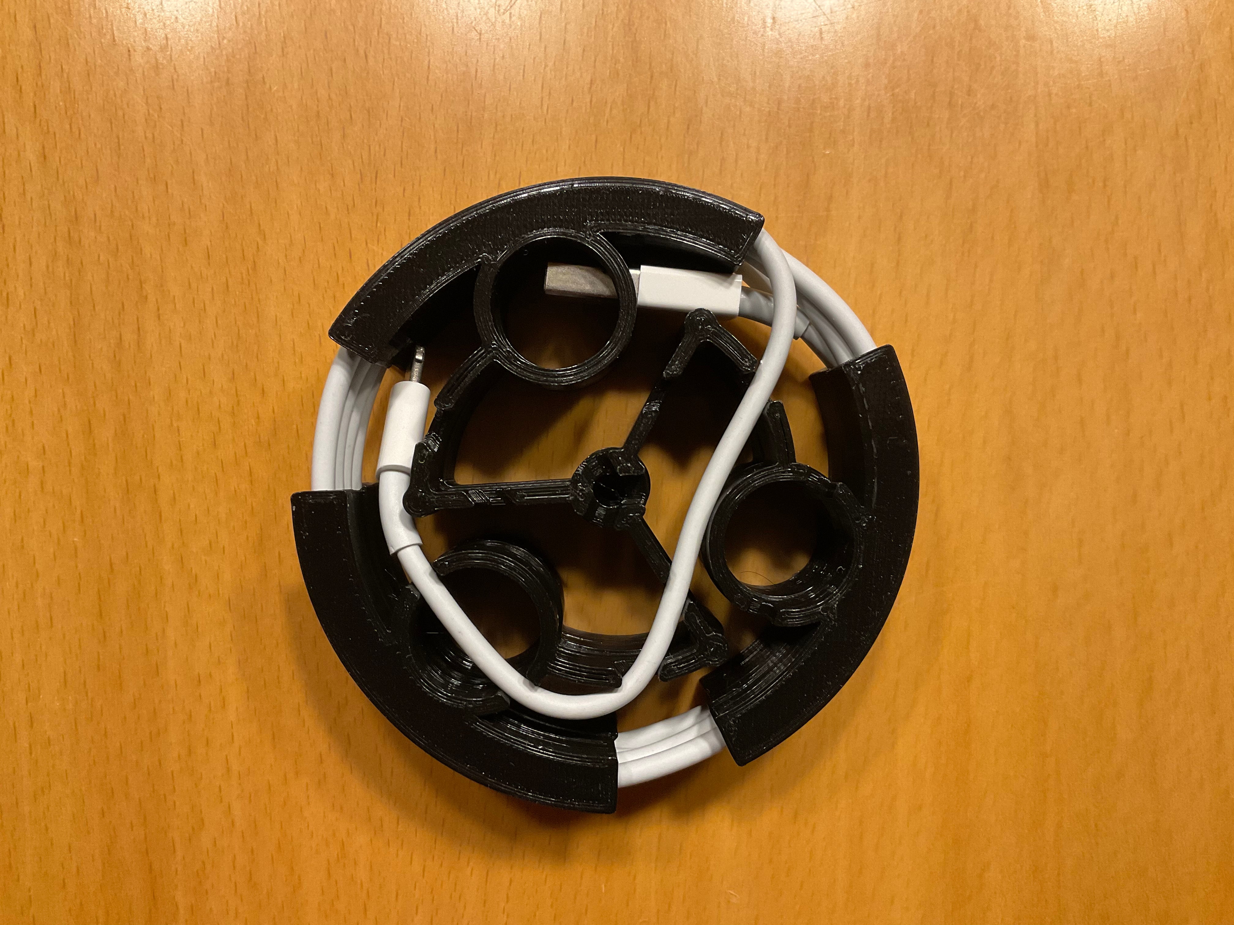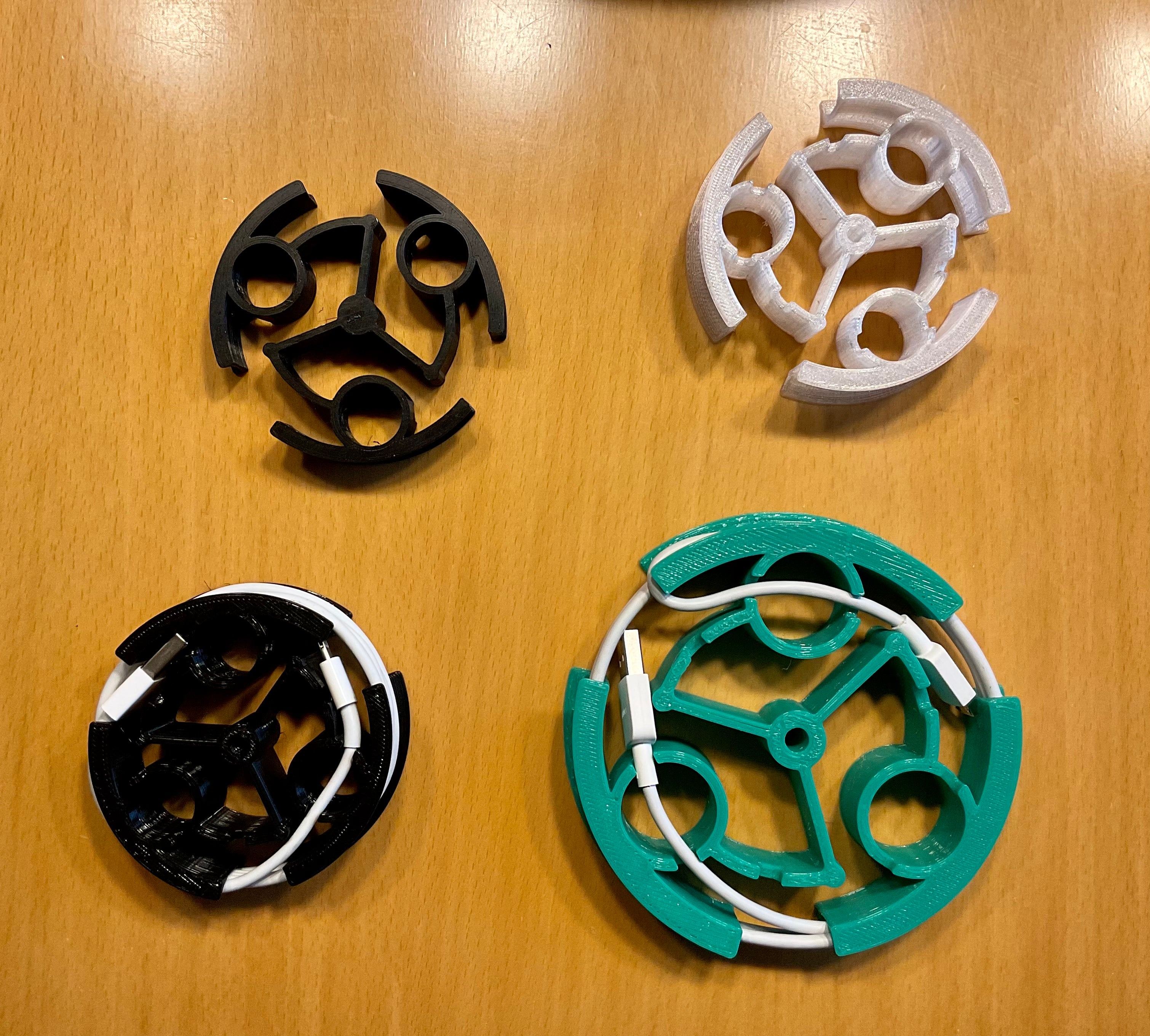 Detta är en flexibel kabelorganisator designad för telefon- eller surfplattor. Den är designad för att enkelt skrivas ut som en enda enhet utan behov av stöd och kan lätt skalas till kabelns längd och tjocklek.