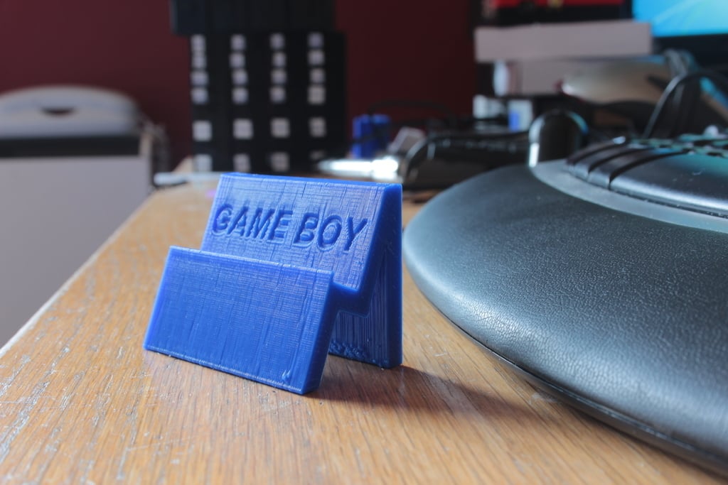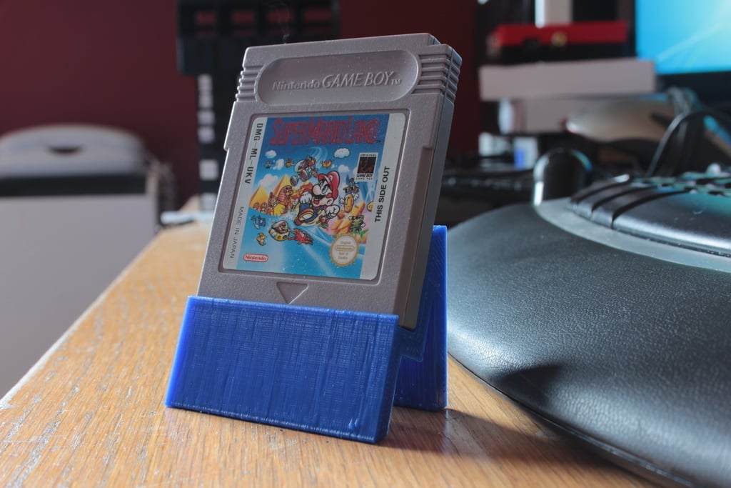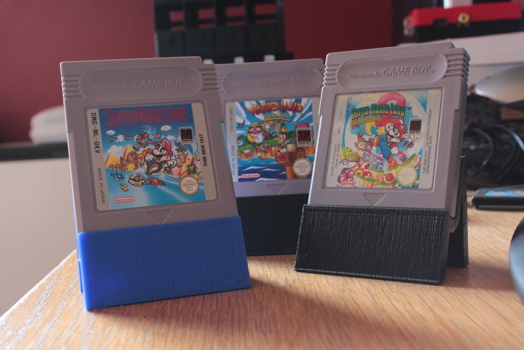 - Enkelt ställ för att visa upp Game Boy-spelkassetter.