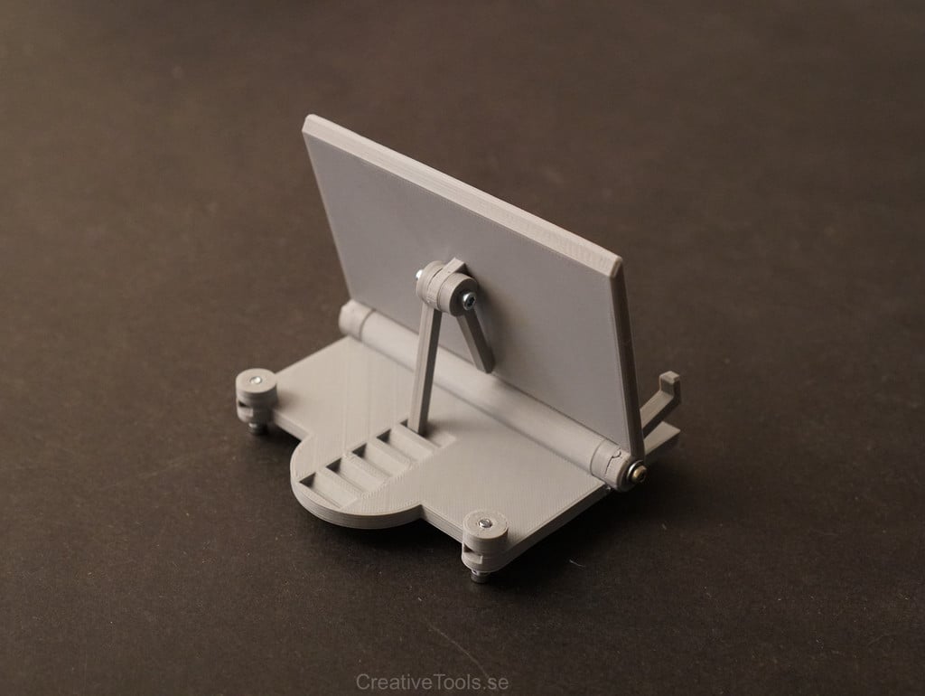 Ett praktiskt smartphoneställ för skrivbordet, 3D-utskrivbart och justerbart i olika vinklar. Perfekt för att titta på YouTube-videor på din smartphone!