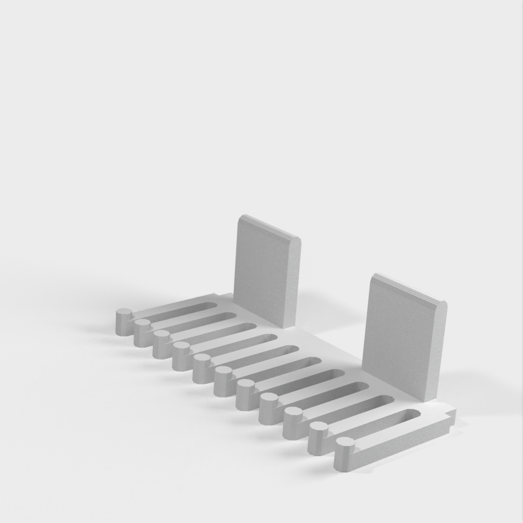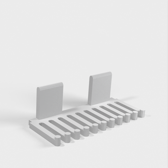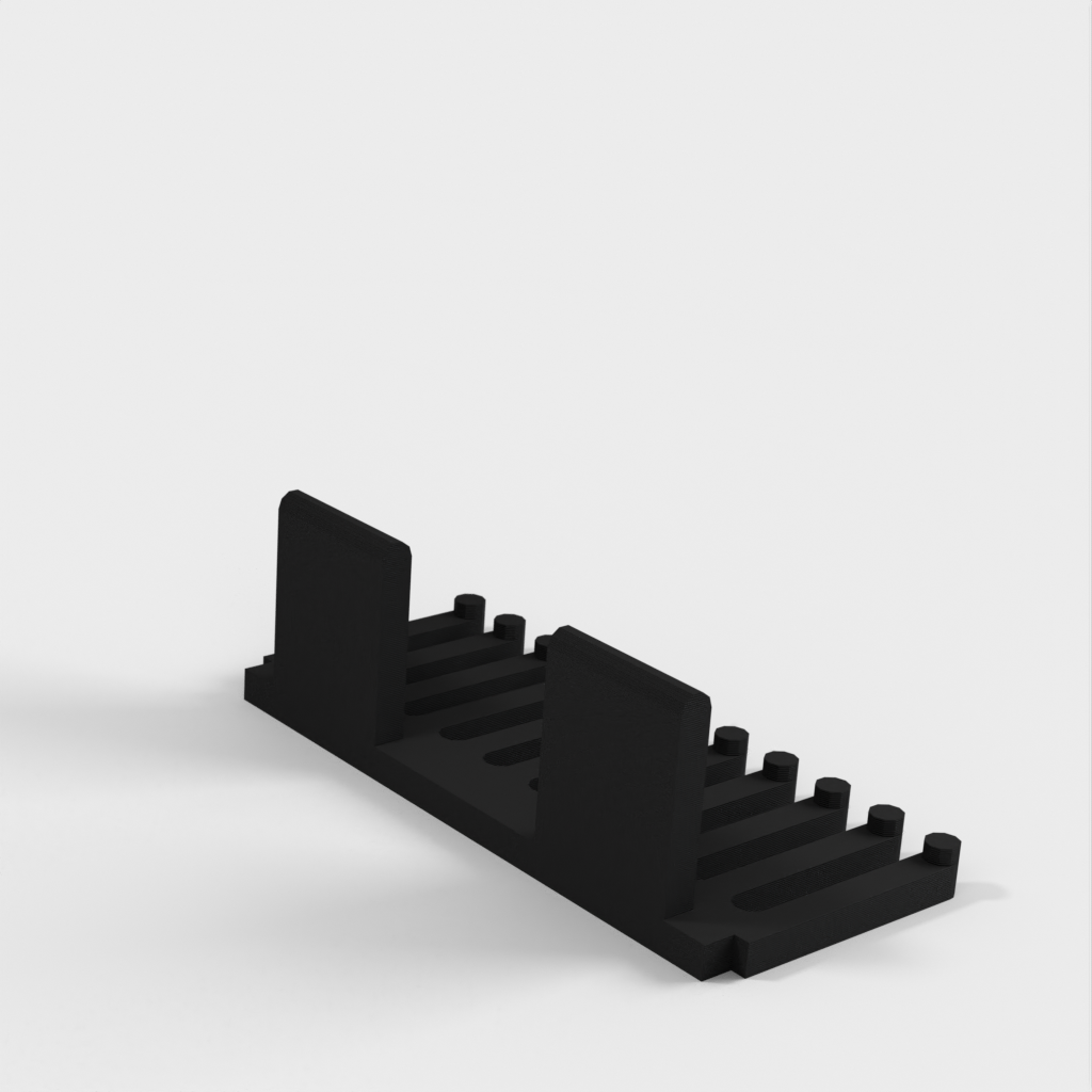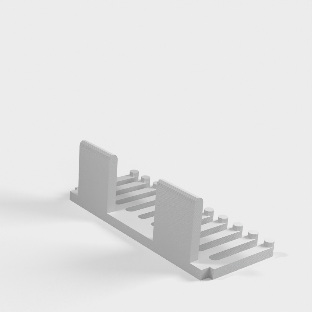 Kamblehandlers kabelhållare är ett praktiskt verktyg för att organisera och hålla dina kablar på plats. Denna kabelhållare har modifierats från den ursprungliga designen för att ha en plan yta. Detta tillåter användning av dubbelhäftande tejp eller 3M kontakthäftande remsor, beroende på dina preferenser och behov. Denna hållare är perfekt för alla hem, kontor eller verkstad för att hålla dina kablar snygga och snygga.