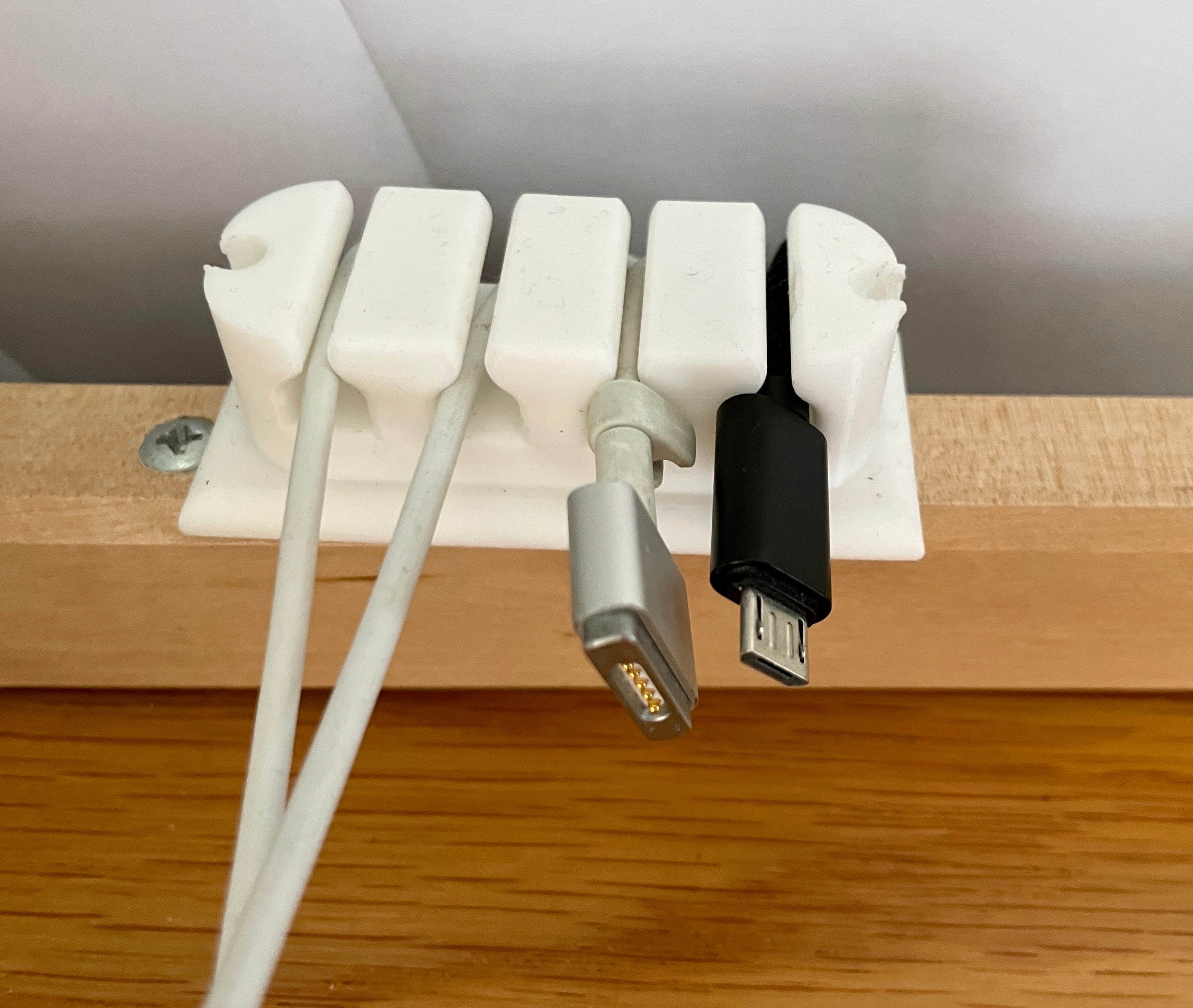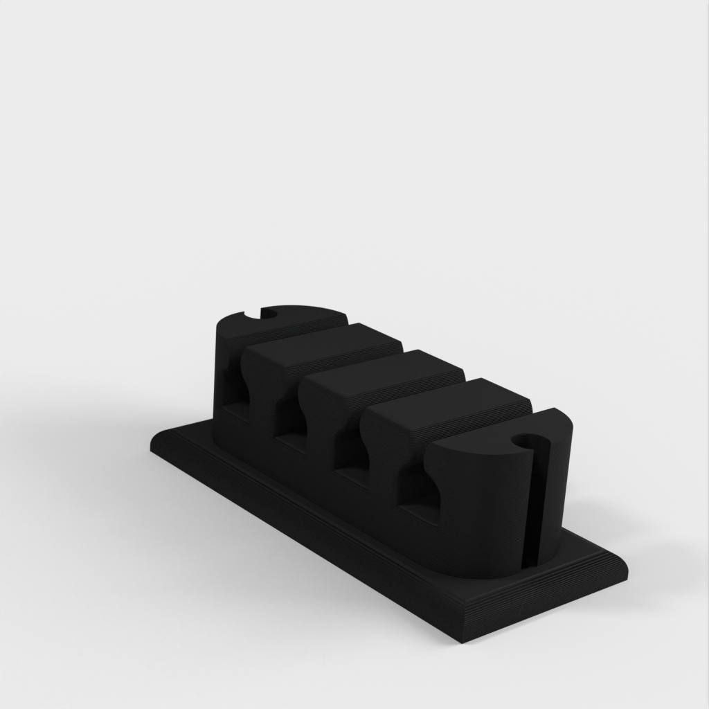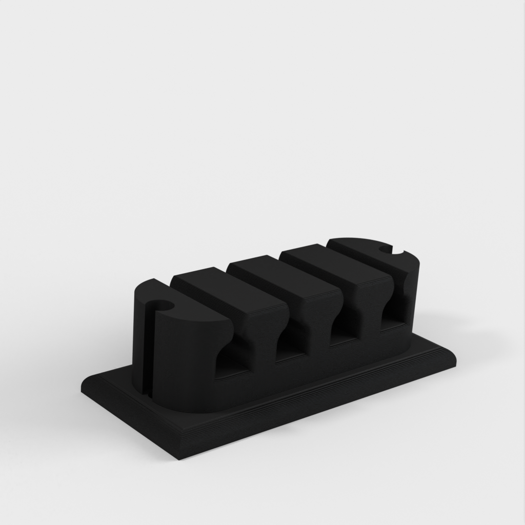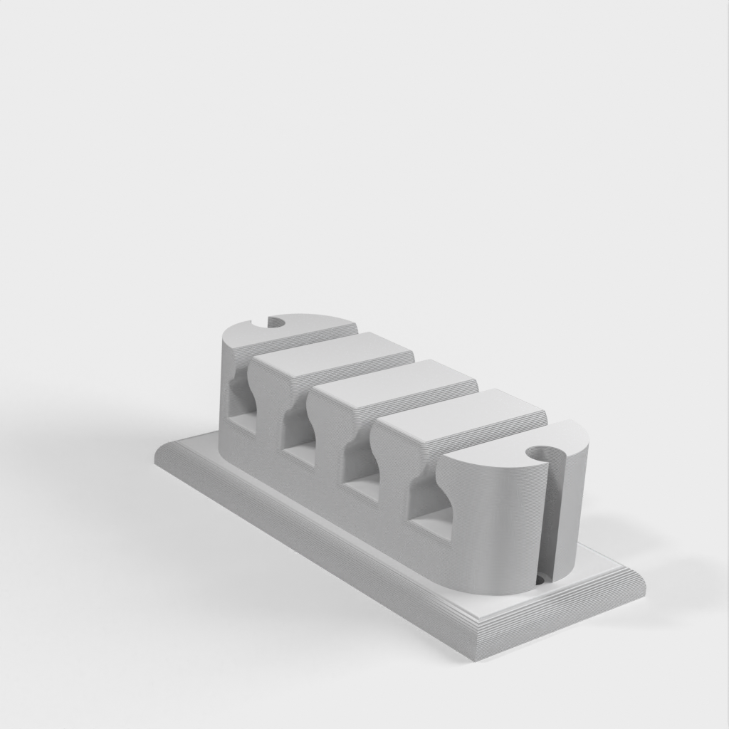 En 4-trådig kabelhållare med skruvhål. Denna kabelhållare är lätt att installera och hjälper till att organisera dina kablar enkelt. Det ger en enkel lösning på det vanliga problemet med kabeltrassel. Du kan enkelt och säkert fästa dina kablar på plats och samtidigt kunna byta ut dem vid behov. För extra styrka har en 70% fyllning och 4 omkretsar lagts till i de områden som upplever mest stress.