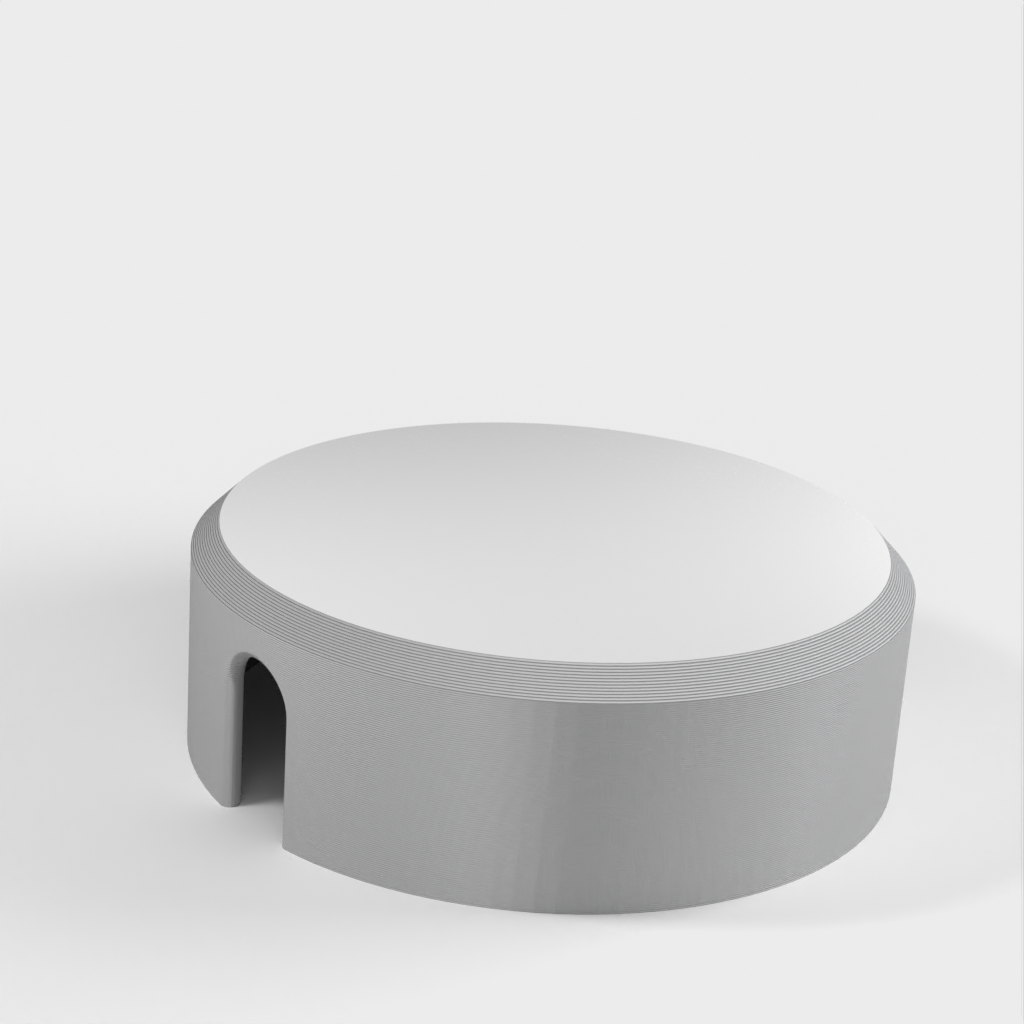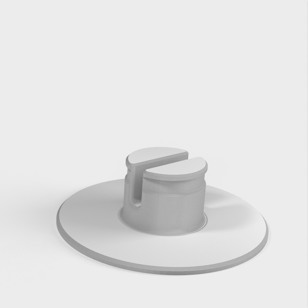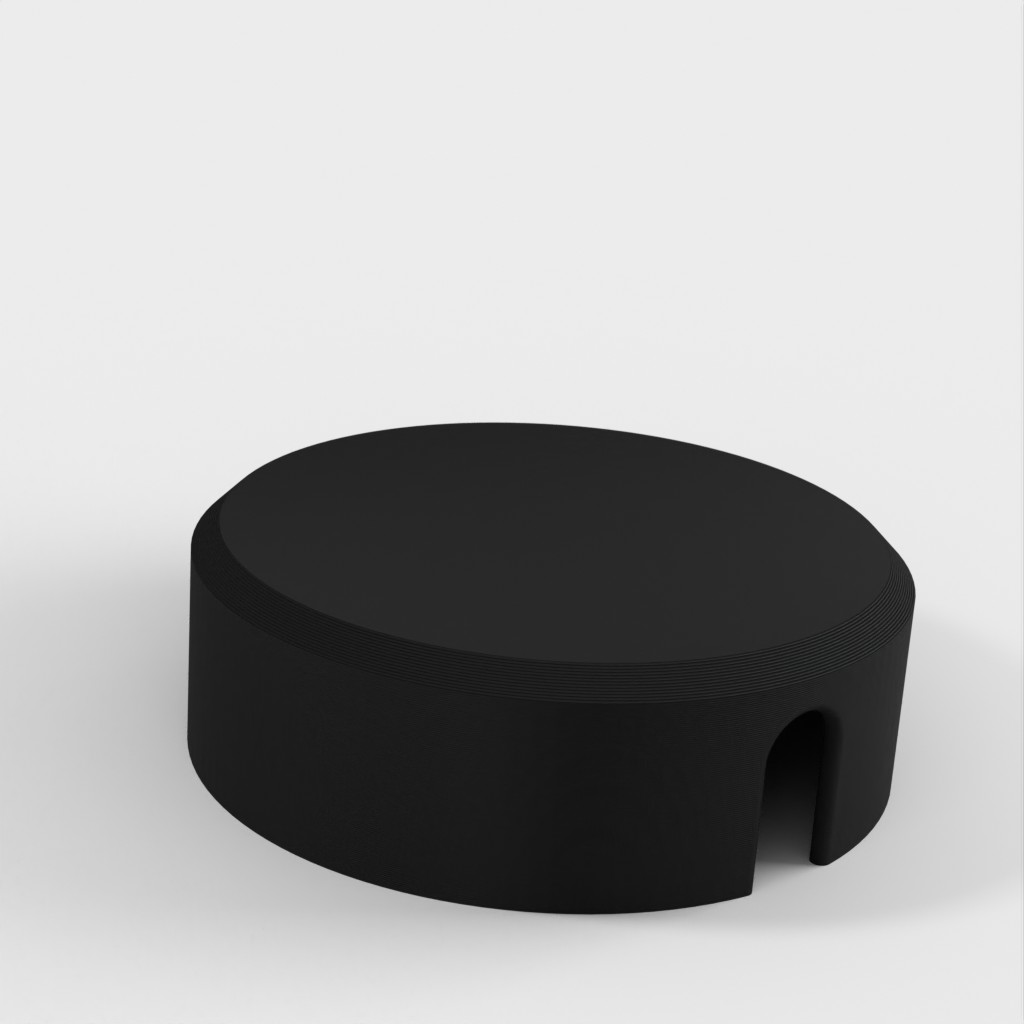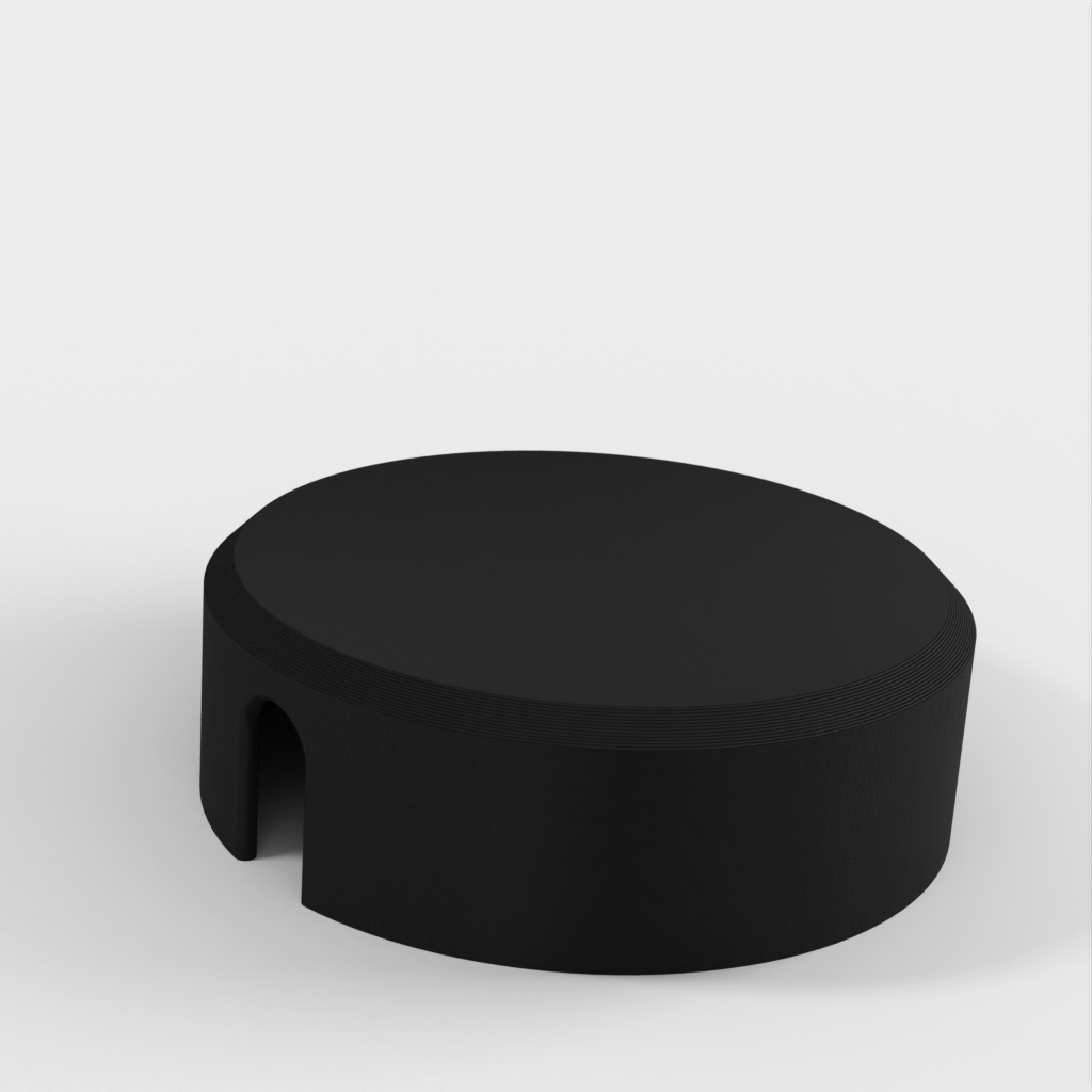 Detta är ett fodral för att lagra överflödiga kablar runt din arbetsstation eller så kan du använda det för att förvara dina hörlurar när du är på språng. Den har en enkel konstruktion som klickar ihop. Det finns ett spår på toppstycket som bottenstycket kommer att snäppa in i. Sätt in kabeln i spåret på bottenstycket, rikta in toppstycket med bottenstycket, tryck ihop dem tills de klickar ihop. Vrid bottenstycket med hjälp av fingerregistren på baksidan för att linda upp kabeln. Dra i kabeländarna för att förlänga kabeln.