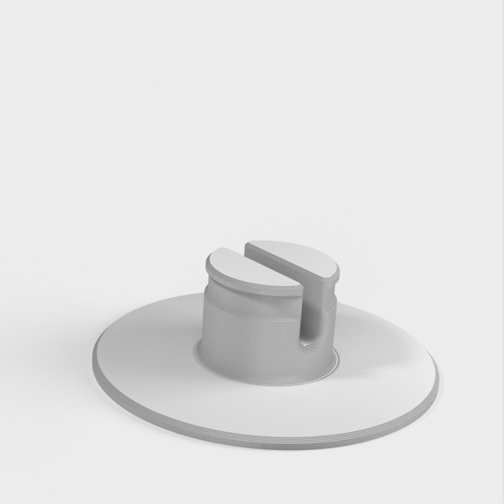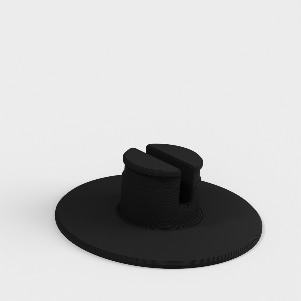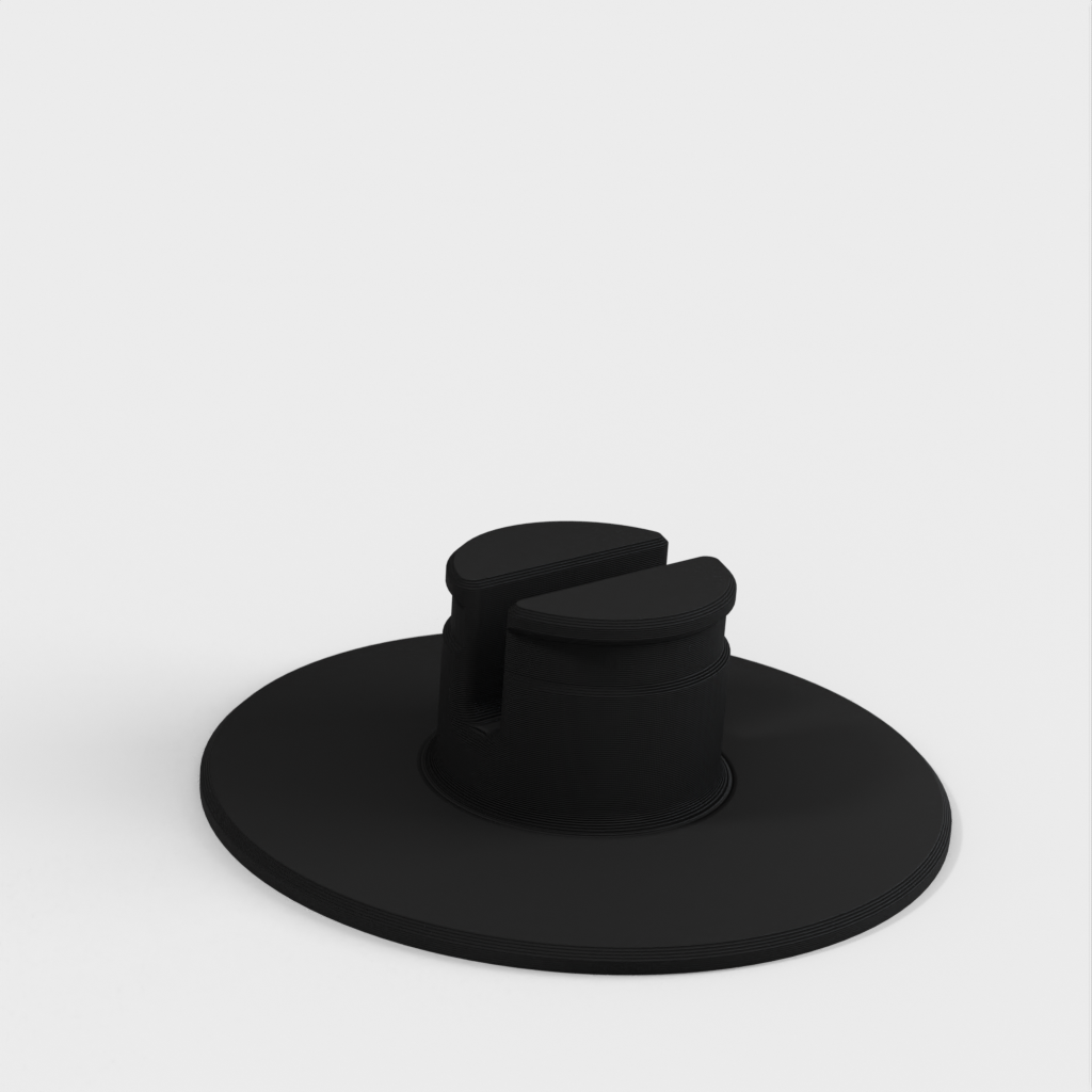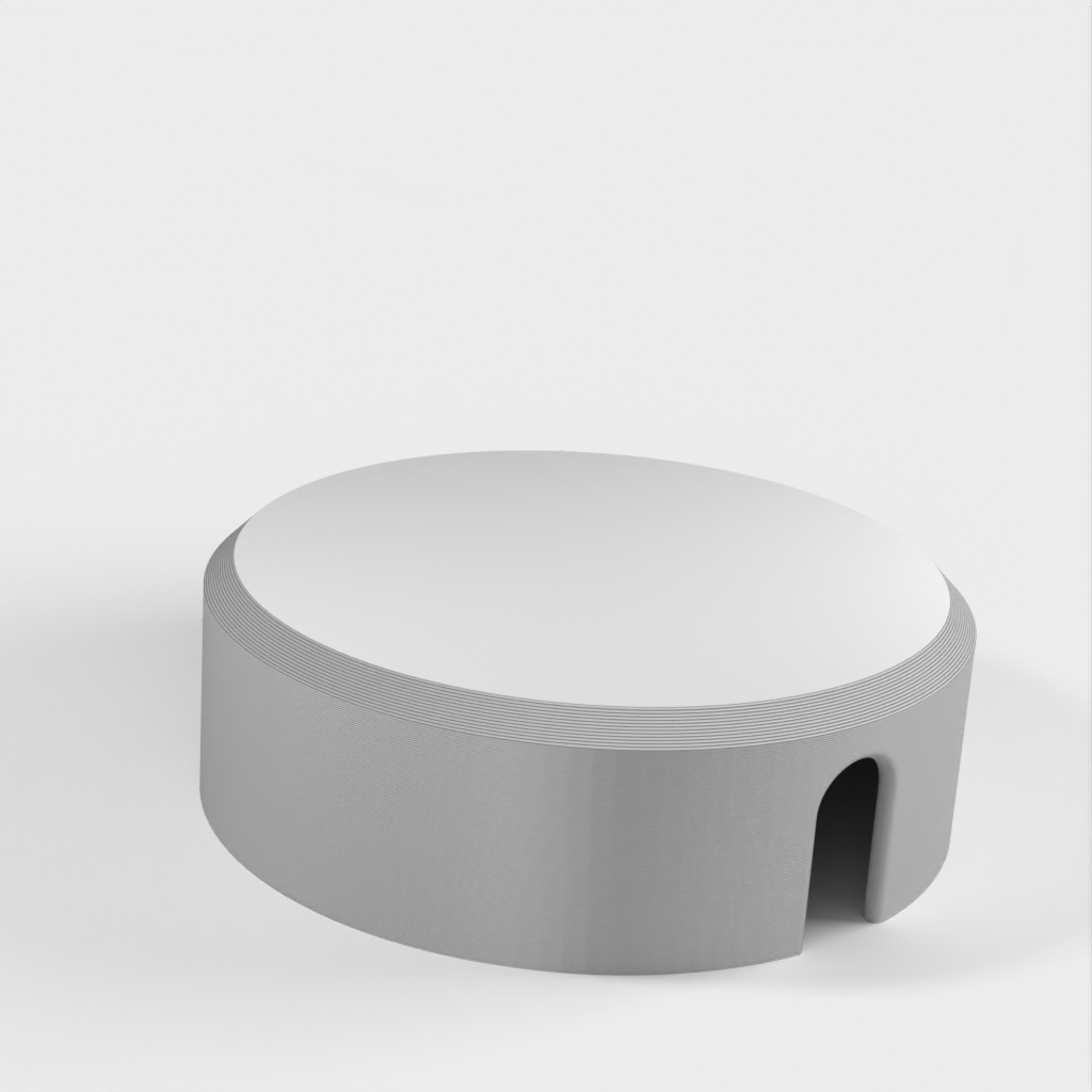 Detta är ett fodral för att lagra överflödiga kablar runt din arbetsstation eller så kan du använda det för att förvara dina hörlurar när du är på språng. Den har en enkel konstruktion som klickar ihop. Det finns ett spår på toppstycket som bottenstycket kommer att snäppa in i. Sätt in kabeln i spåret på bottenstycket, rikta in toppstycket med bottenstycket, tryck ihop dem tills de klickar ihop. Vrid bottenstycket med hjälp av fingerregistren på baksidan för att linda upp kabeln. Dra i kabeländarna för att förlänga kabeln.