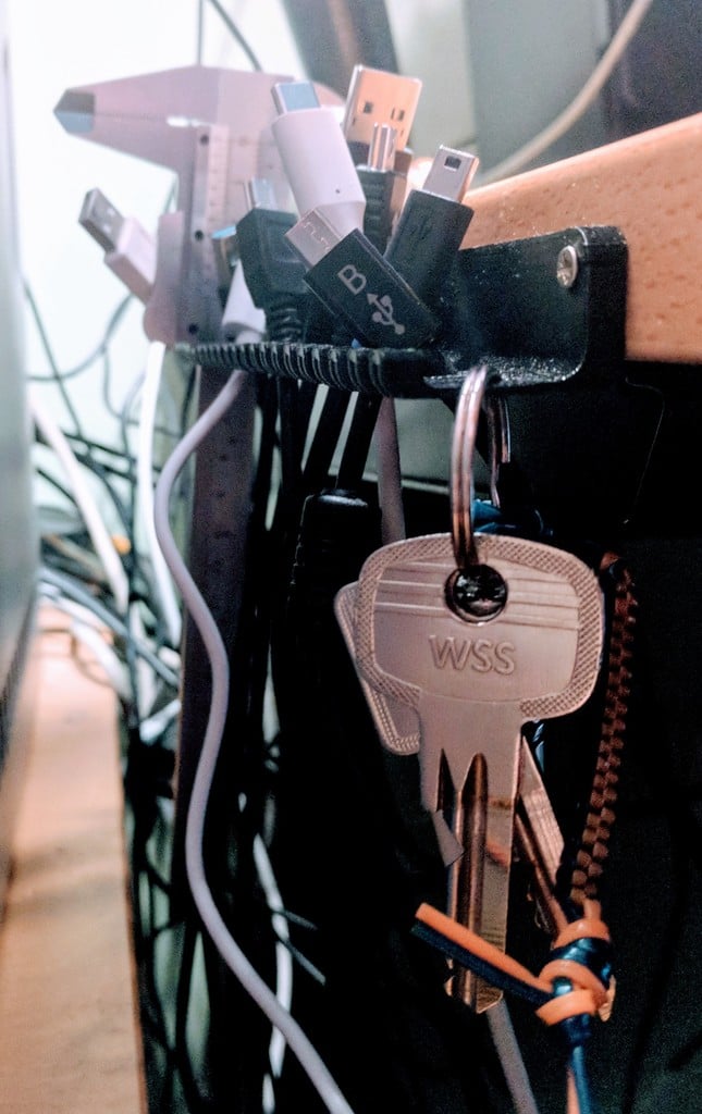 En kabelhållare för skrivbordet. Cable Management-hållaren låter dig enkelt organisera och dölja kablar för en snyggare arbetsstation. Det hjälper dig att hålla ditt skrivbord fritt från skräp och förbättrar din effektivitet.