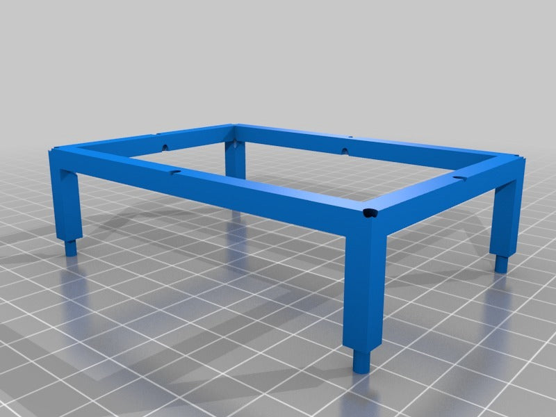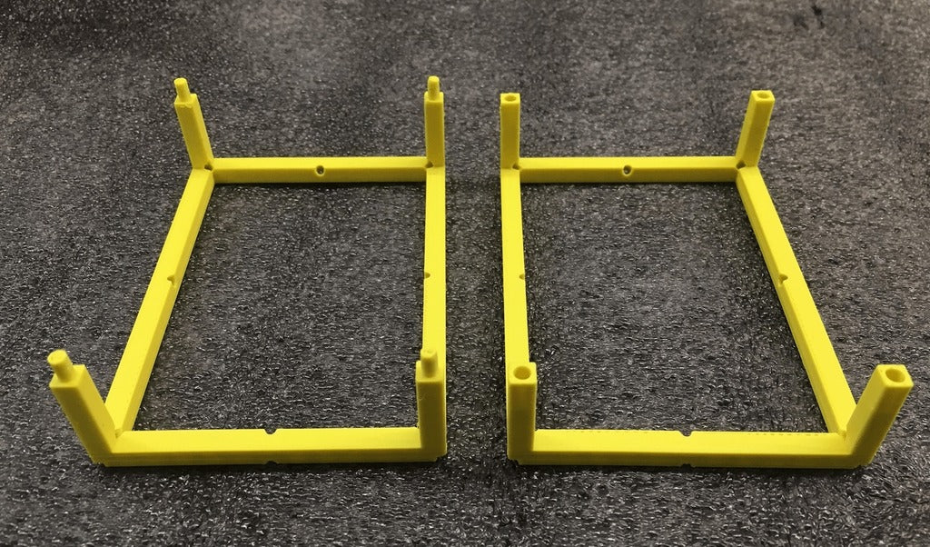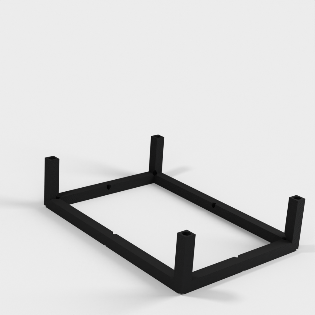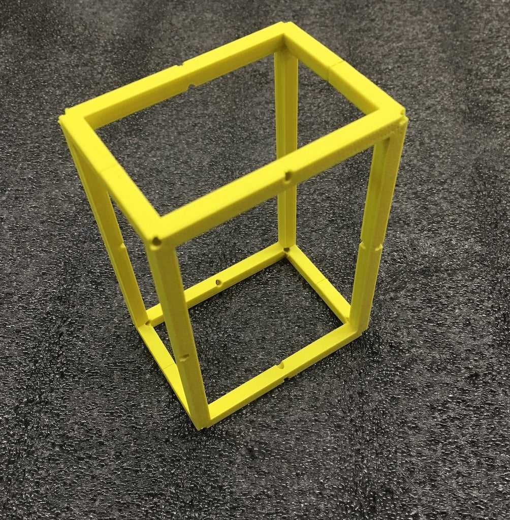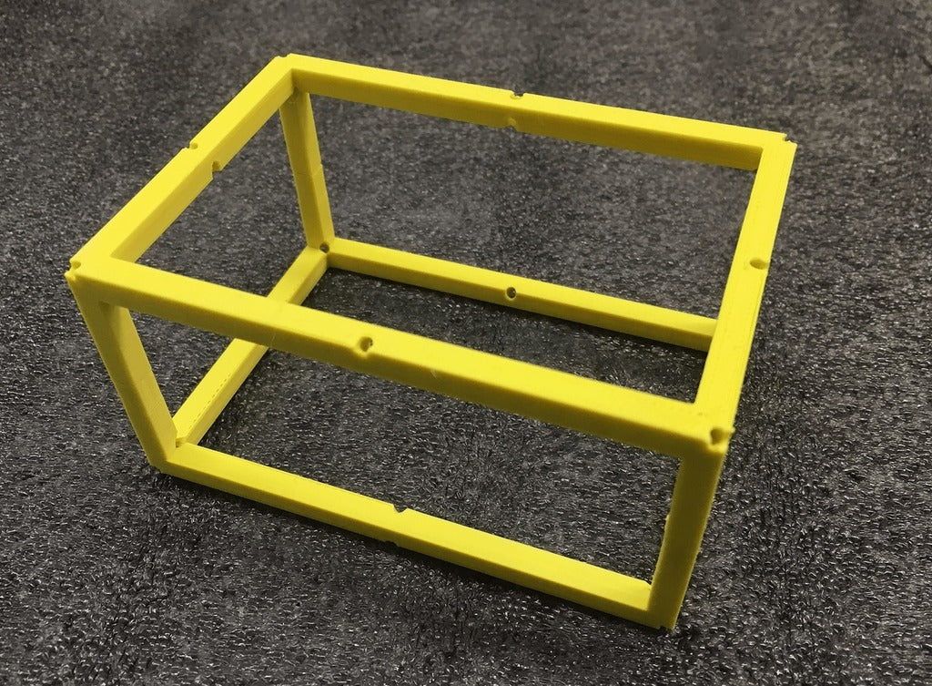 Denna kubformade ram består av två delar, vilket gör utskriften enklare och snabbare - du behöver inte göra några stöd. Det är ett openscad-projekt, så du kan enkelt anpassa det efter dina behov. Den medföljande stl-filen har följande mått (höjd, bredd, längd): 50x70x100mm