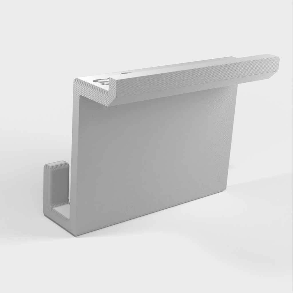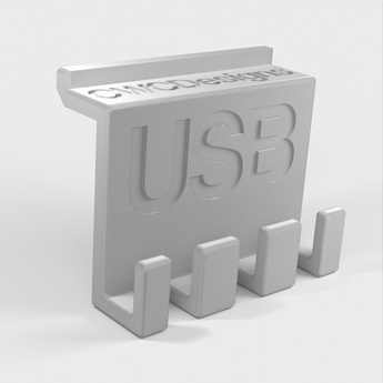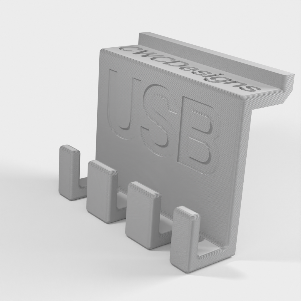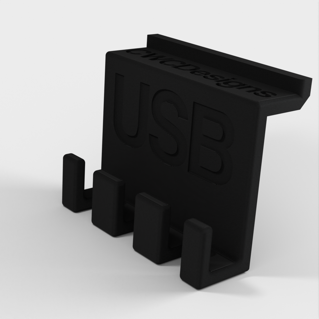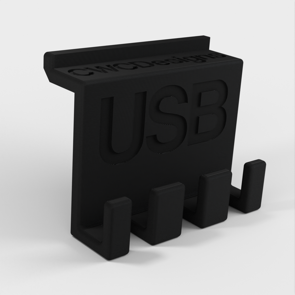Detta är en USB-hållare för att rengöra och organisera lösa kablar på din arbetsplats. Den är designad för att passa perfekt under ett Lack-bord från Ikea, med ett avstånd på 3,5 mm mellan plexiglaset på Lack och bordet. Denna kompakta lösning skapar en snyggare och mer organiserad arbetsyta.