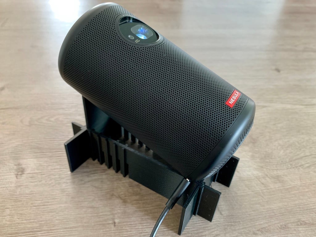 Detta är ett takprojektionsställ för Nebula Capsule 2-projektorn. Stativet är mycket stabilt och snabbt och enkelt att använda. Den fungerar på golv, nattduksbord, säng, bokhylla etc. och den har justerbara vinklar. Det kan fungera med en liten USB-nyckel och en USB-C-strömkabel ansluten. Den kan packas platt och passar i Nebula Capsule 2-fodralet och den är lätt att skriva ut utan stöd.
