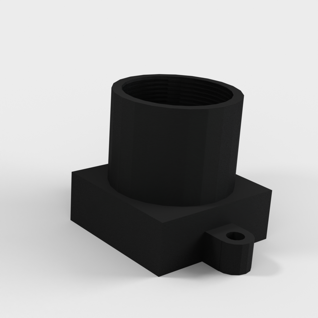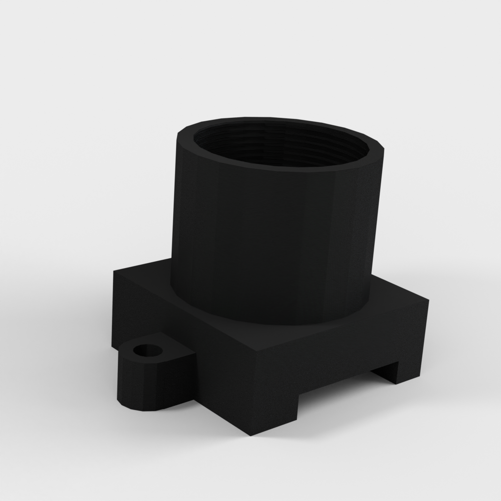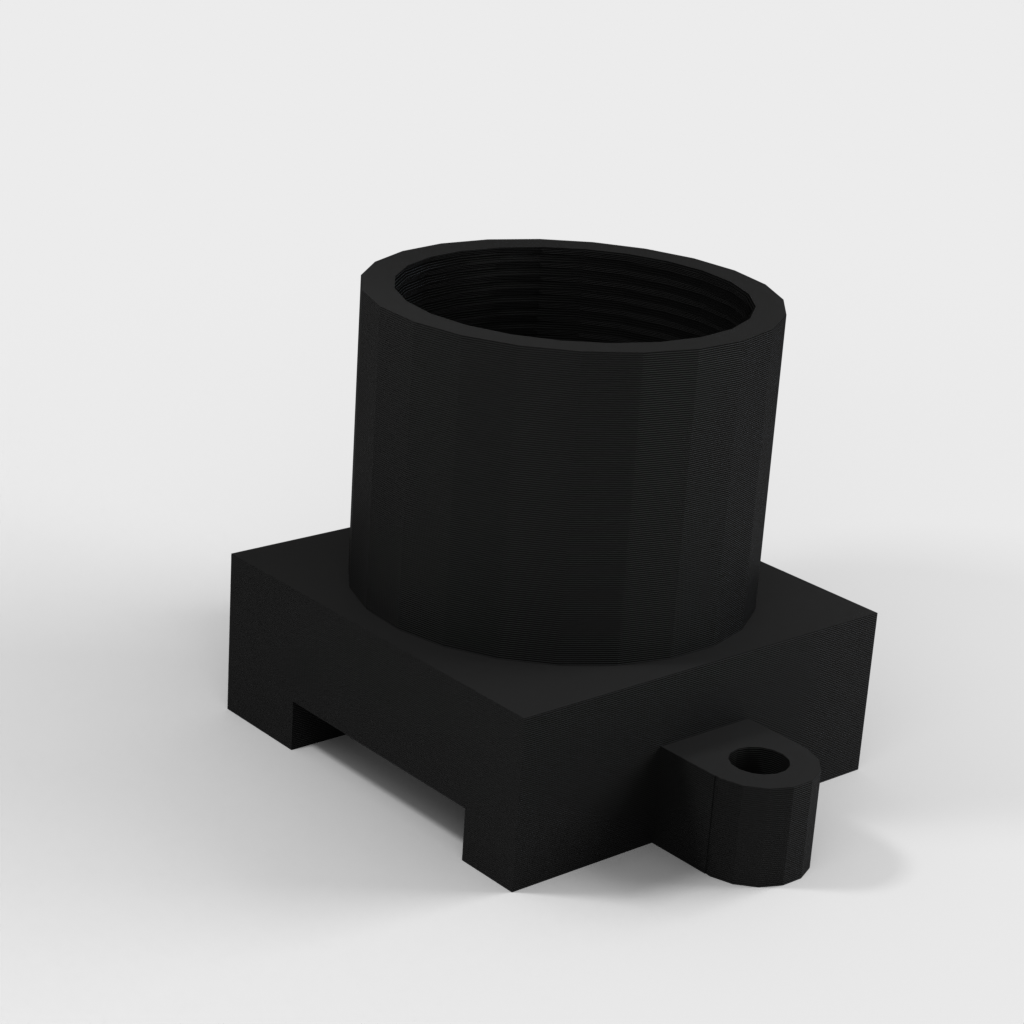 Detta är ett M12-fäste för en Raspberry Pi V2-kamera. Fästet har anpassats för att passa Pi V2-kamerans unika konstruktion, där kontakten är förskjuten från V1-kameran. Efter utskrifts- och rengöringsstöd passar detta fäste perfekt till kameran.