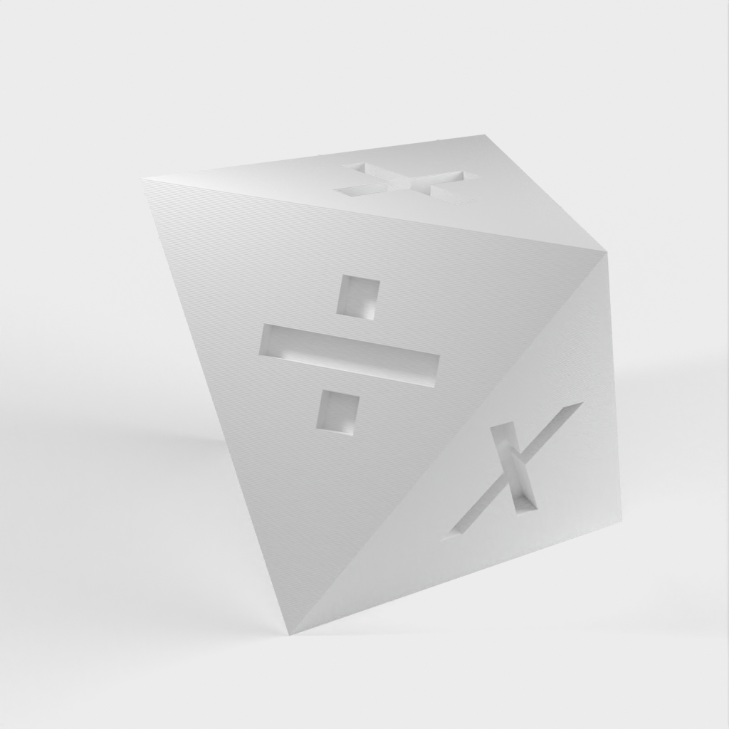 En uppsättning mattekuber som gör matematikinlärning roligt och interaktivt. Innehåller en talkub (1-0) och en symbolkub (+ - x ÷). Lämplig för olika åldersgrupper och förmågor, eftersom du kan skapa matematiska ekvationer så enkla eller komplicerade som du vill.