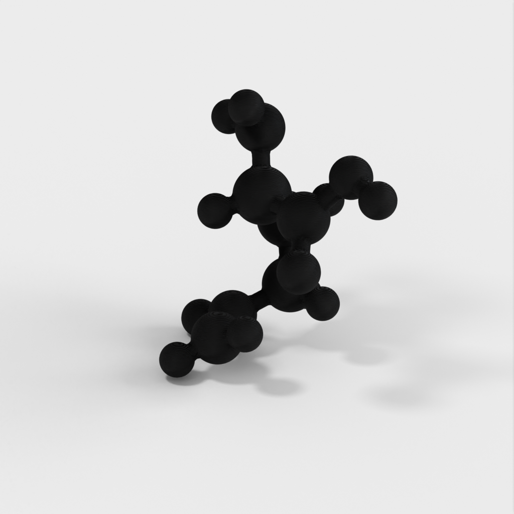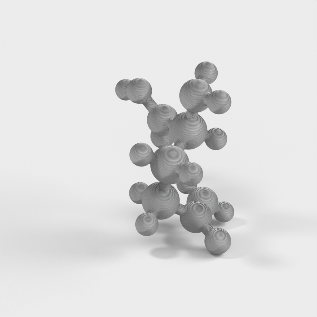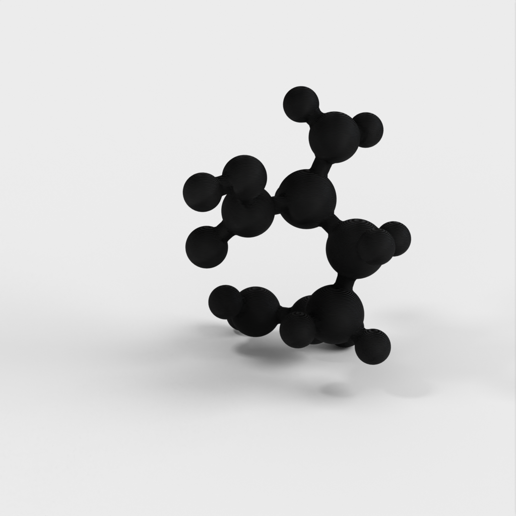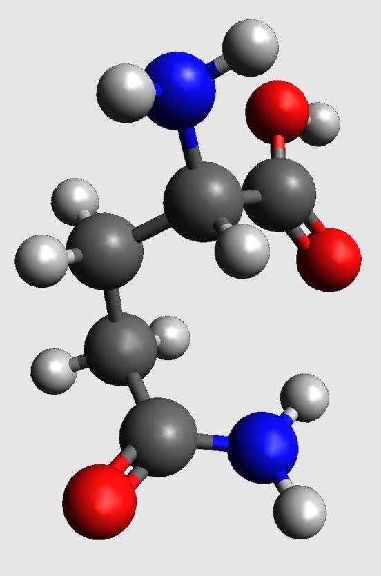En molekylär modell av glutamin i atomär skala. Modellen är vattentät, mångfaldig och 3D-vänlig STL. Glutamin ingår i många proteiner och kan jämföras med Glukos och kolhydrater för att illustrera varför man behöver olika typer av mat för att få i sig alla grundämnen kroppen behöver. Denna modell är särskilt användbar för undervisning om kemi.