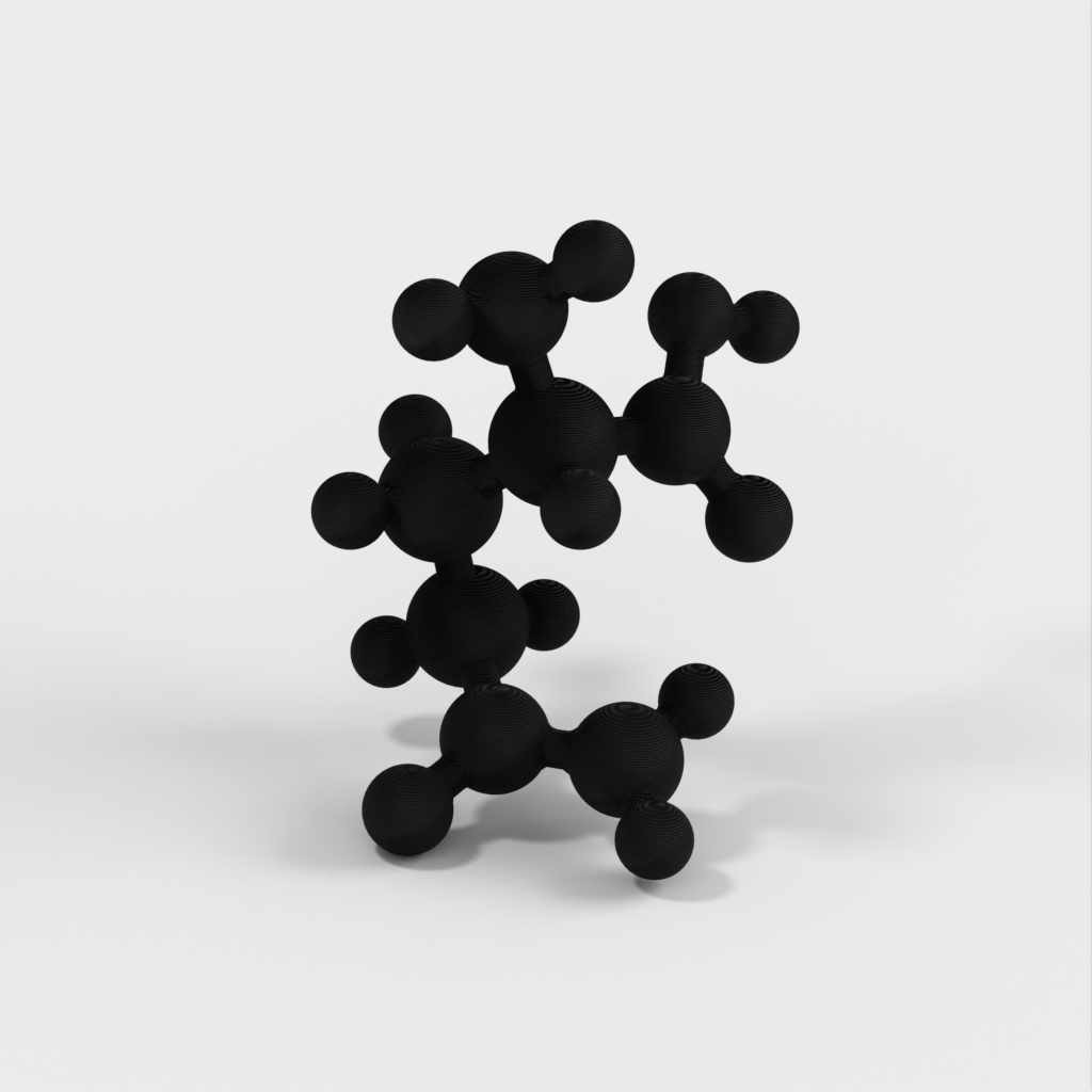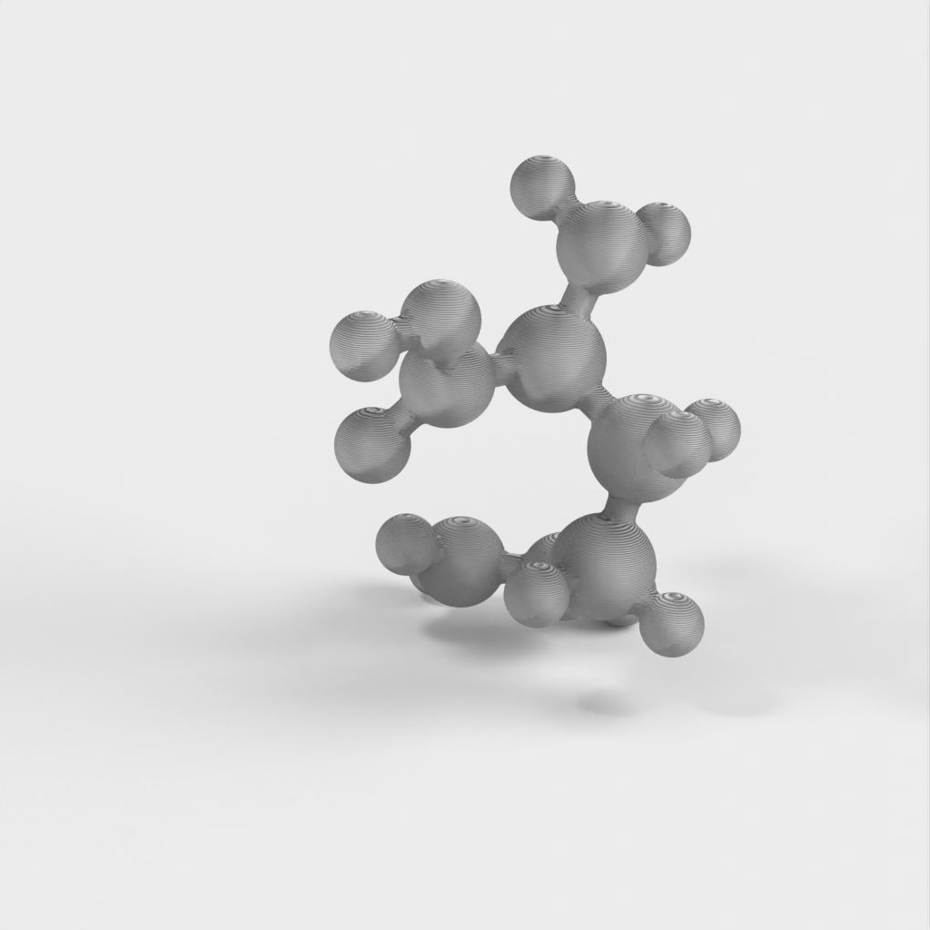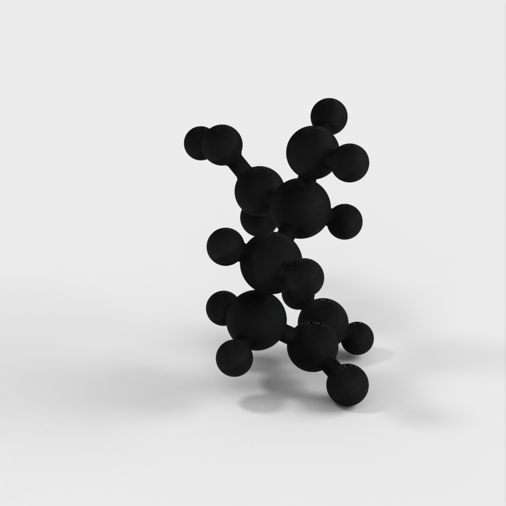 En molekylär modell av glutamin i atomär skala. Modellen är vattentät, mångfaldig och 3D-vänlig STL. Glutamin ingår i många proteiner och kan jämföras med Glukos och kolhydrater för att illustrera varför man behöver olika typer av mat för att få i sig alla grundämnen kroppen behöver. Denna modell är särskilt användbar för undervisning om kemi.