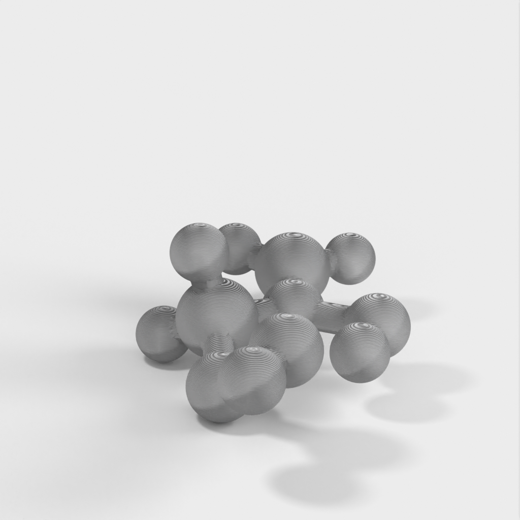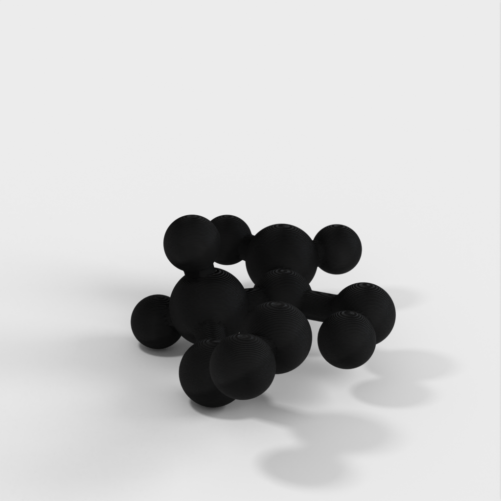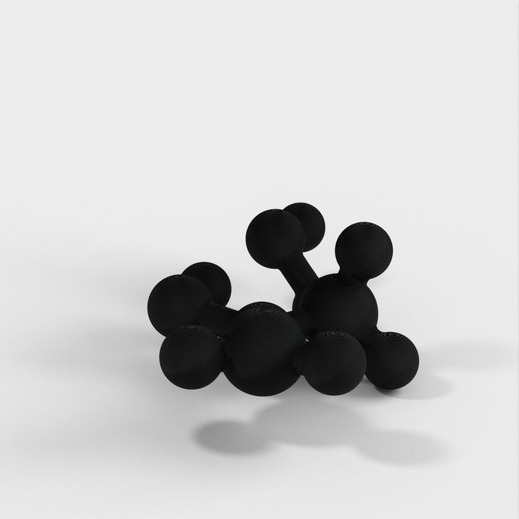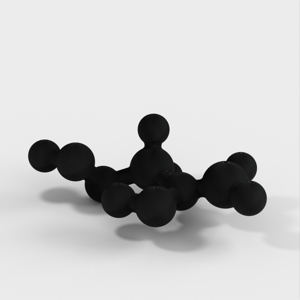 Detta är en molekylär modell av vinylacetat. Modellen används för att lära barn om kemi, speciellt polyvinylacetat (PVA), som är det vita lim som används för att göra slem i grundskolan. Denna modell ger en visuell bild av vad som finns i slem.