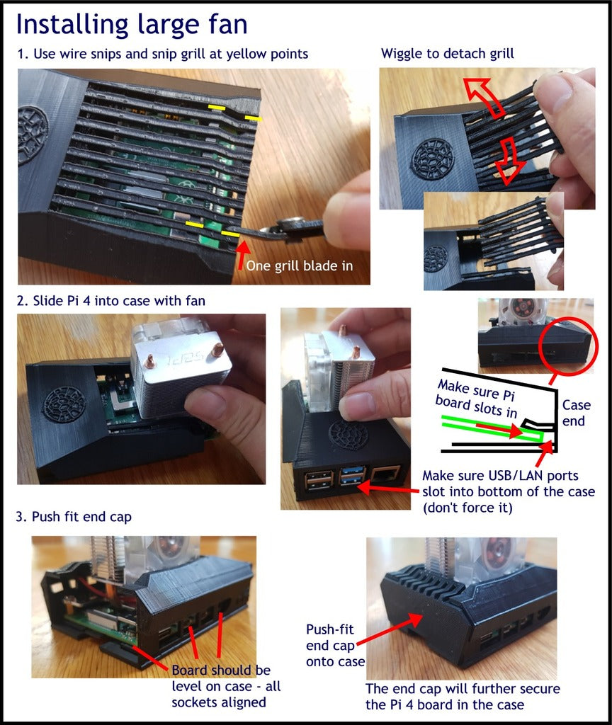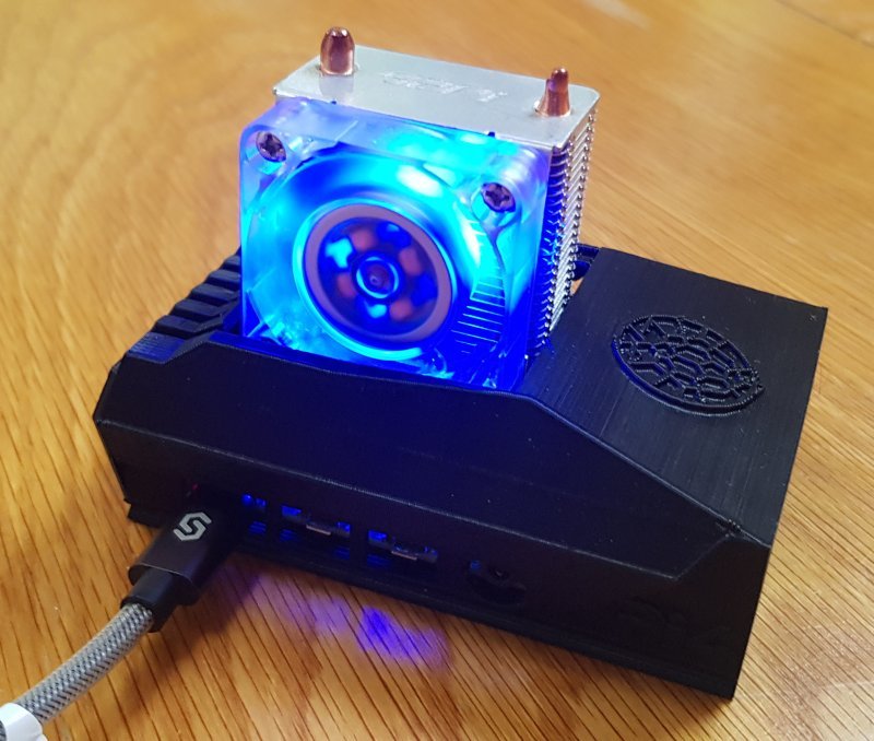 Ett Raspberry Pi 4-fodral designat för 2 Ghz överklockning. Det här fodralet kan rymma både en liten 30 x 30 x 7 mm (5 volt) fläkt och den större "ICE Tower Cooler". Kartongen kan tryckas "som den är" tillsammans med den lilla fläkthållarens ändstycke. Alternativt kan lådan enkelt modifieras för att ta den större kylaren.