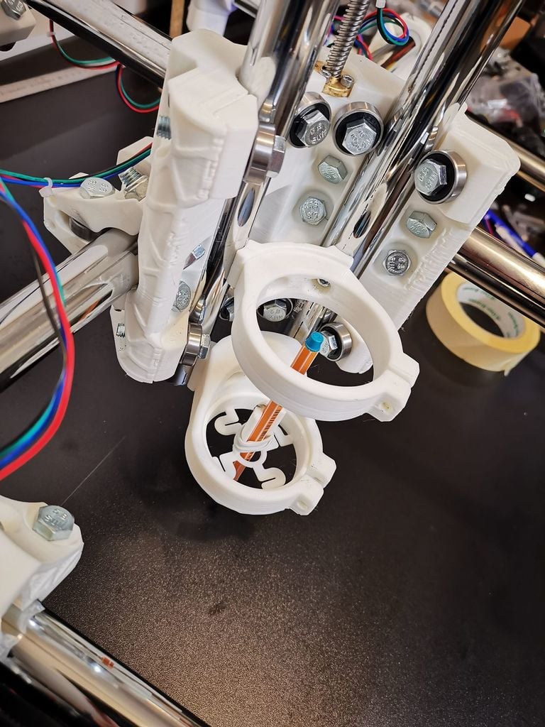 Pennhållare för MPCNC Primo, designad för att passa en 65 mm verktygshållare som Makita RT0700C. Denna hållare gör det enkelt att byta mellan pennan och spindeln utan att behöva ta bort verktygshållaren från MPCNC Primo. Ett praktiskt tillskott till din arbetsyta som säkerställer en organiserad och effektiv arbetsprocess.