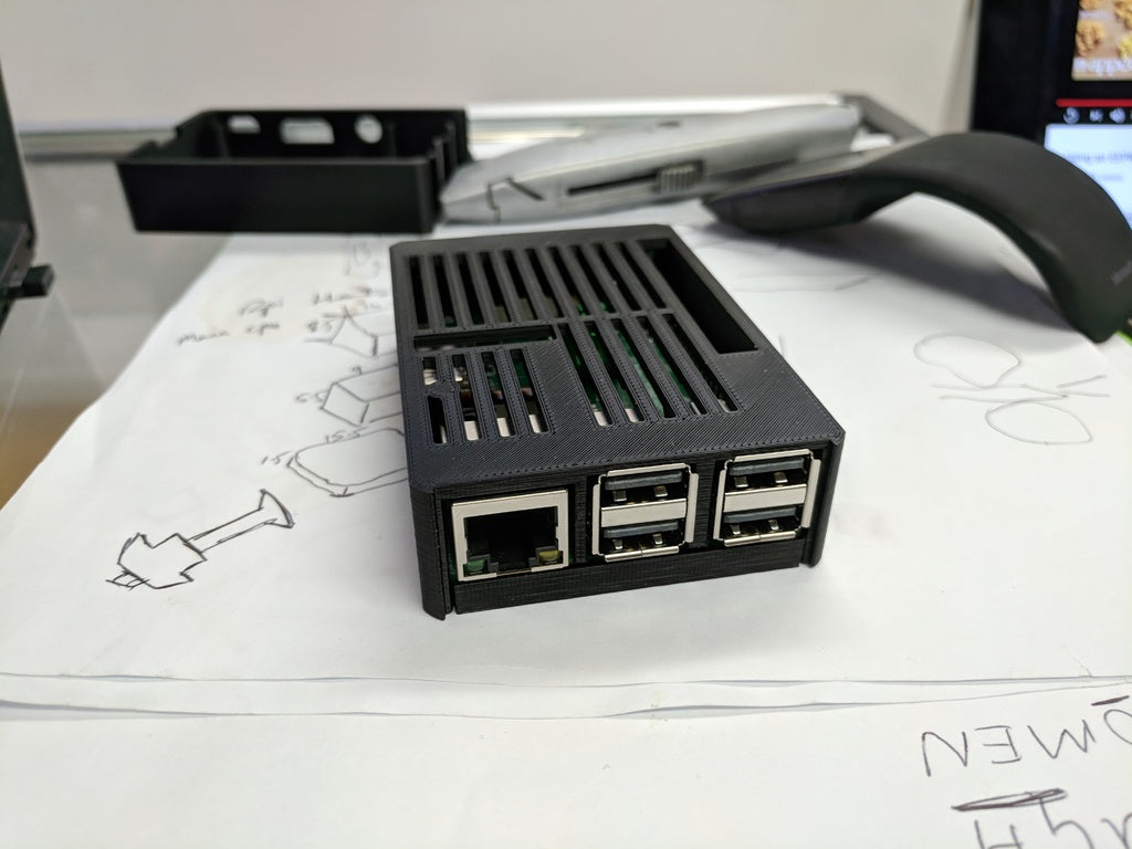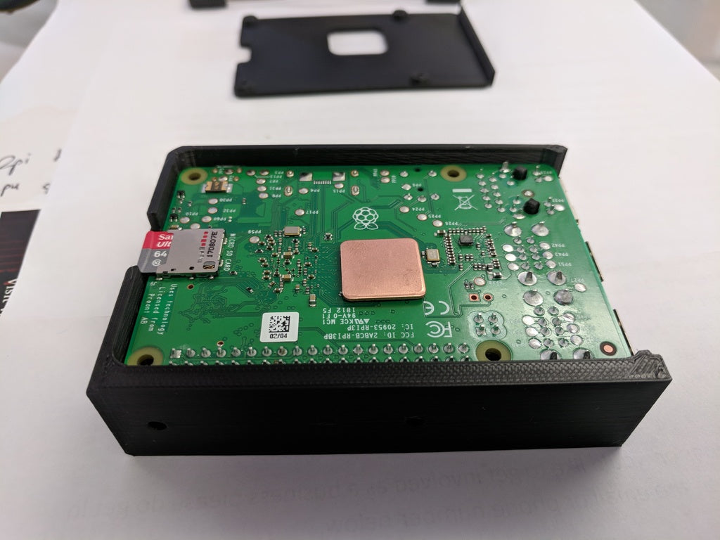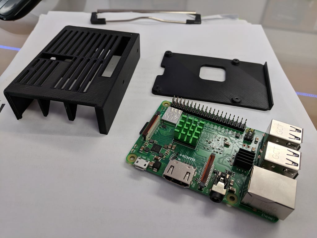 - Specialdesignet kabinet, der giver plads til en Raspberry Pi 3 B+ med ekstra køleelementer.