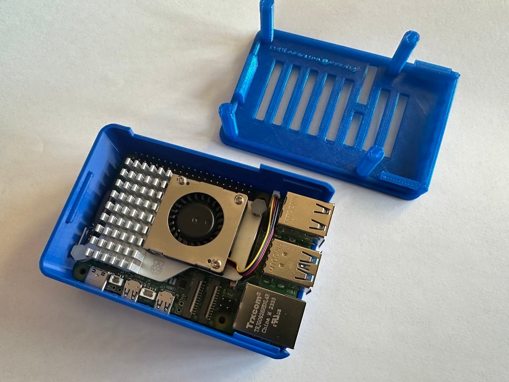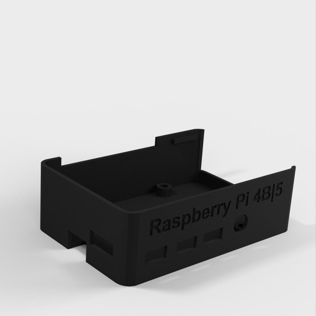 En multifunktionell box för Raspberry Pi-modellerna 5, 4B och 3B. Detta fodral har ett antal tillval, bland annat plats för en aktiv kylare till Raspberry Pi 5. Det finns även olika skyddsalternativ som passar alla modeller, inklusive skydd med och utan fästpunkter för en 30mm eller 40mm fläkt. Detaljer och ytterligare alternativ finns på https://www.thingiverse.com/thing:6242465 och https://www.thingiverse.com/thing:6260580 .