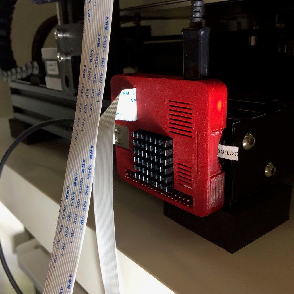 Detta är ett Raspberry Pi A+ fodral designat med hål för 25x25 kylfläns och ventilation på ovansidan. Ett hål har också lagts till för snäppmonteringsdelen och extra stödlinjer för ökad hållbarhet. Detta fodral har en snäppmonteringsdel för Ender 3, vilket gör det enkelt att fästa och ta bort fodralet. Du kan hitta 25x25 kylflänsen avsedd för detta fall här: https://www.aliexpress.com/item/32846989011.html?spm=a2g0s.9042311.0.0.27424c4dZpcUsU