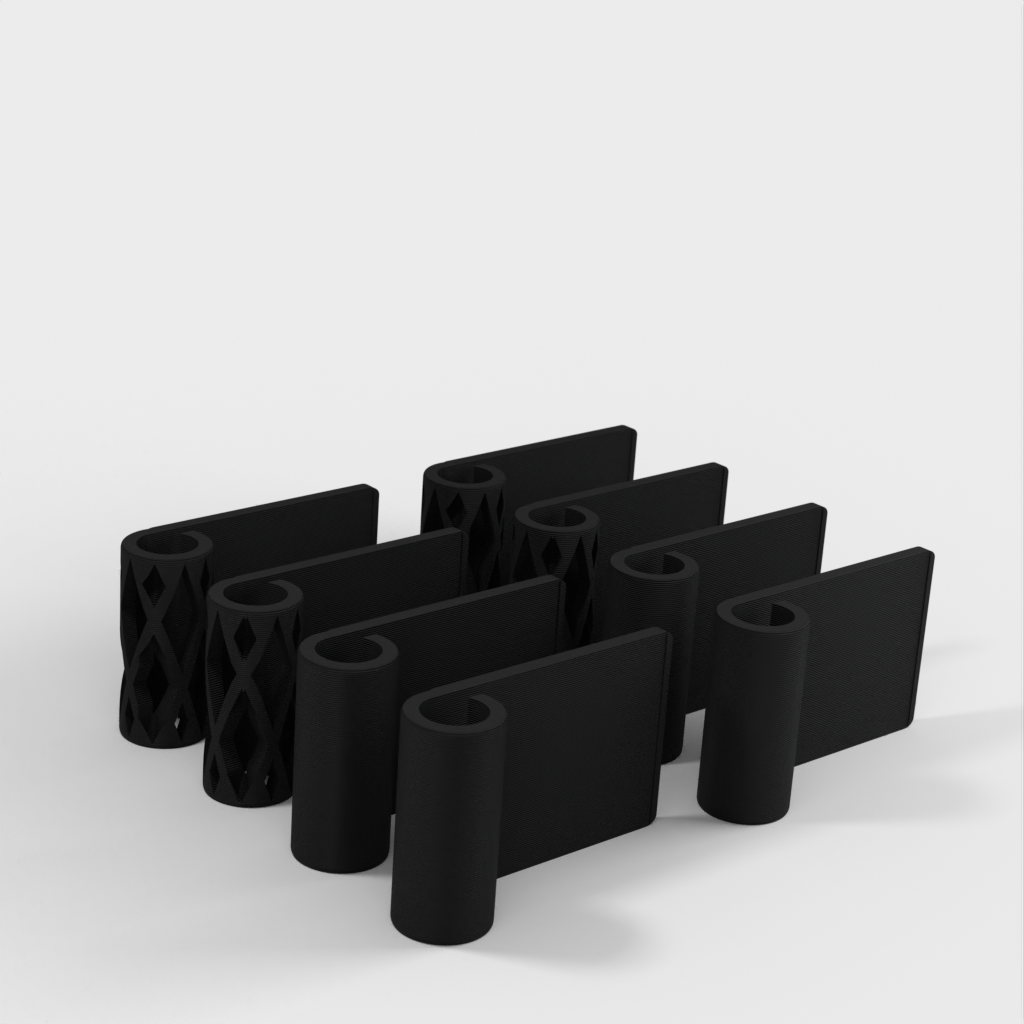 S-Pen Holder är en hållare designad för Samsung stylus. Den kommer i två utföranden, ett korsmönster som är mer flexibelt och ett gediget tryck som är starkare och svårare att få pennan i, men som förväntas mjukna med tiden. Hållaren kan fästas med #M Command självhäftande remsor.