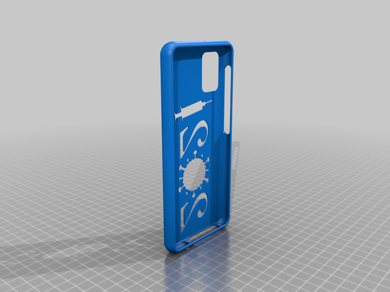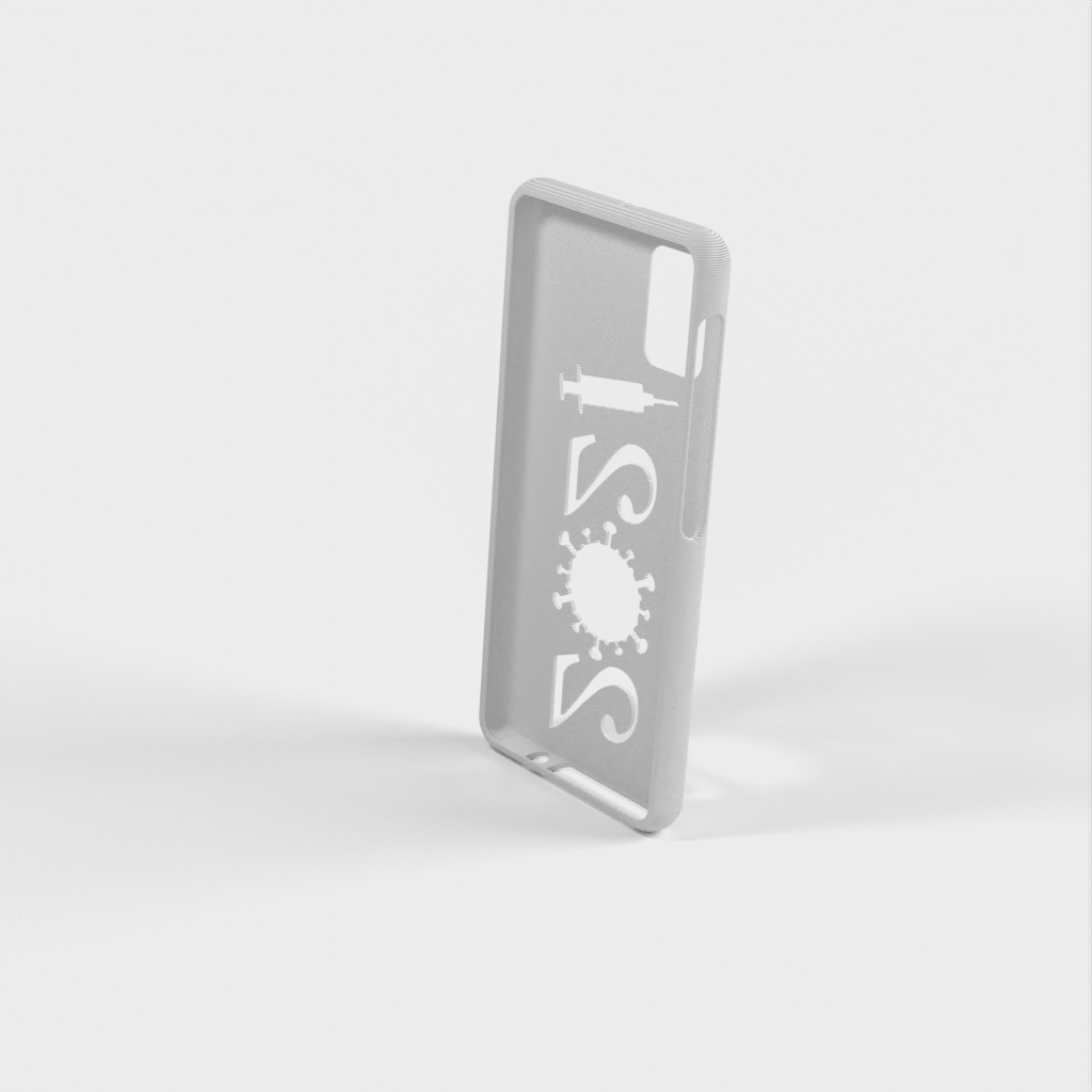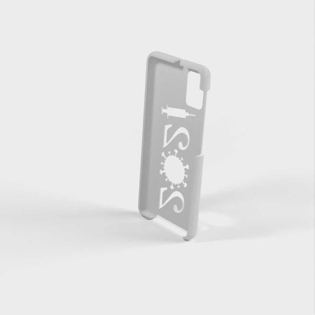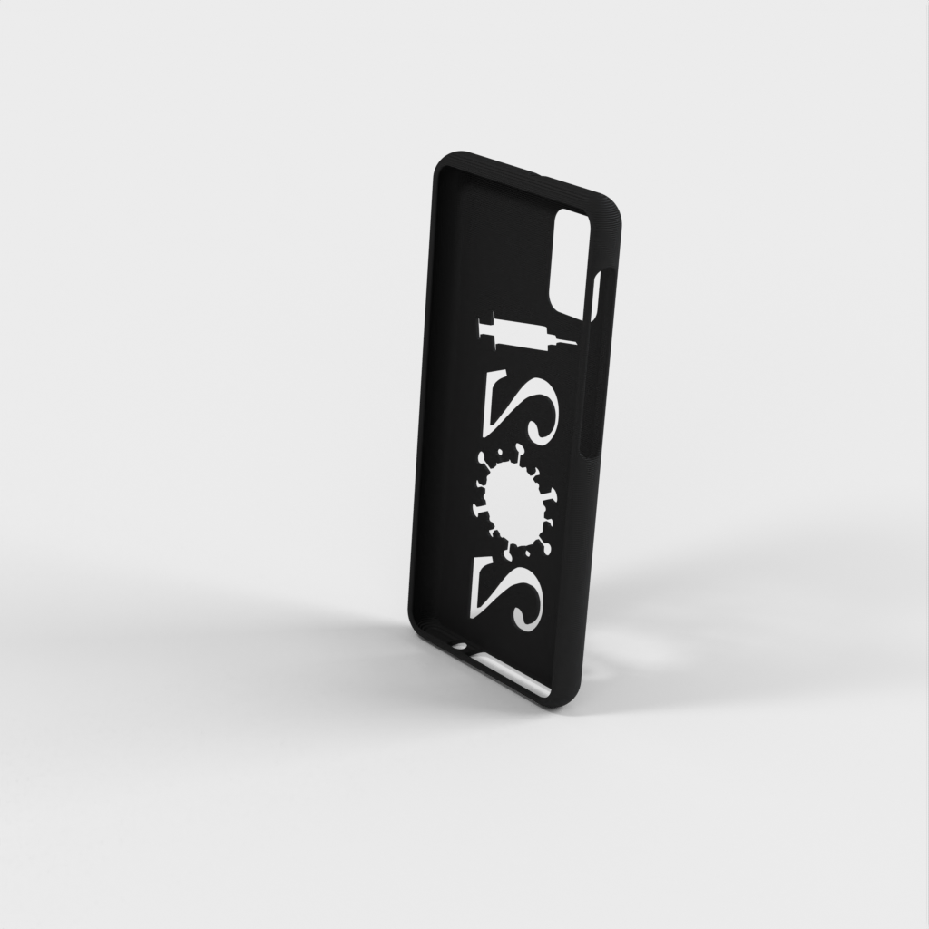 Ett mobilfodral för Samsung Galaxy A31 a315. Skalet är designat för att passa perfekt runt telefonen, och det finns öppningar för alla knappar och funktioner. På baksidan av fodralet finns en unik design med årtalet "2021" format som ett virus och en spruta - en symbol för covid-19-vaccinationen.