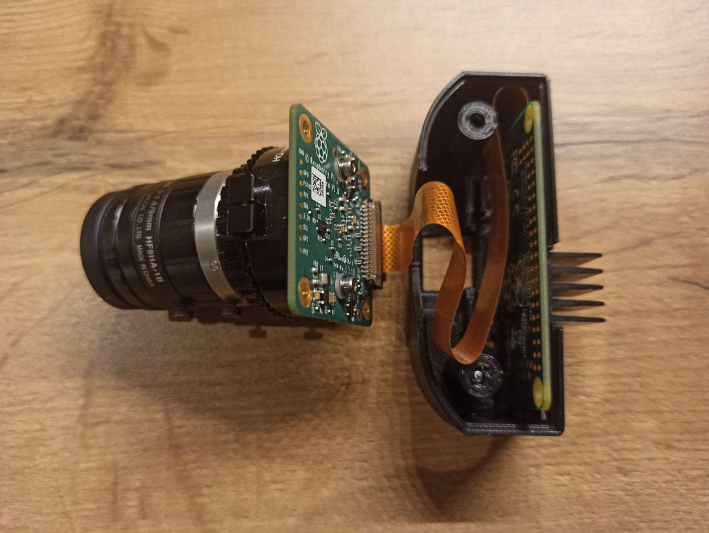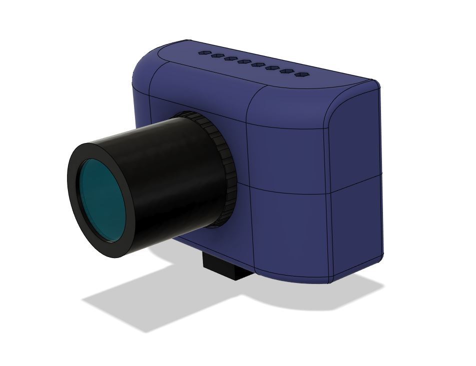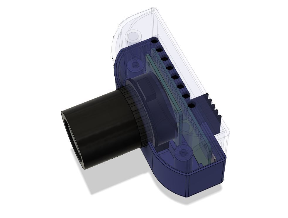 Kamerahuset kan stängas med två 3 mm plåtskruvar. Det finns flera .stl-filer för basskalet beroende på vilken åtkomst som önskas. Det finns även vissa versioner med ett större linshål för större C-fattningsobjektiv.
