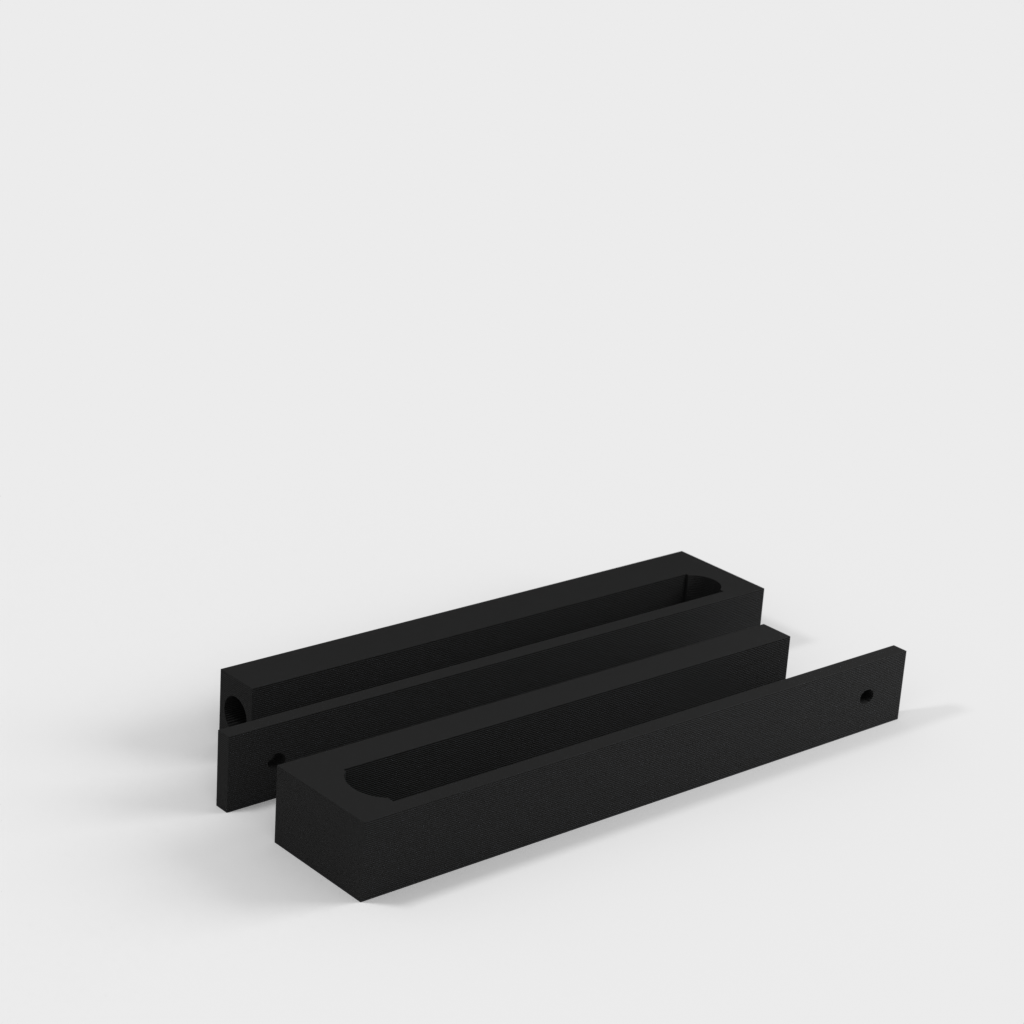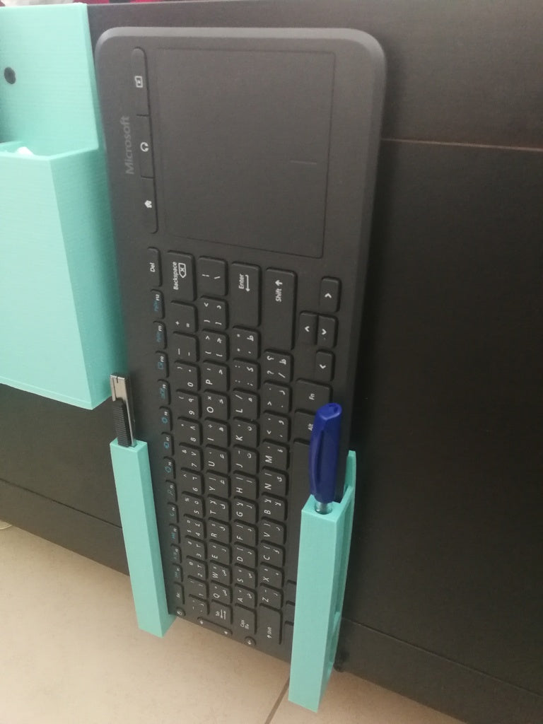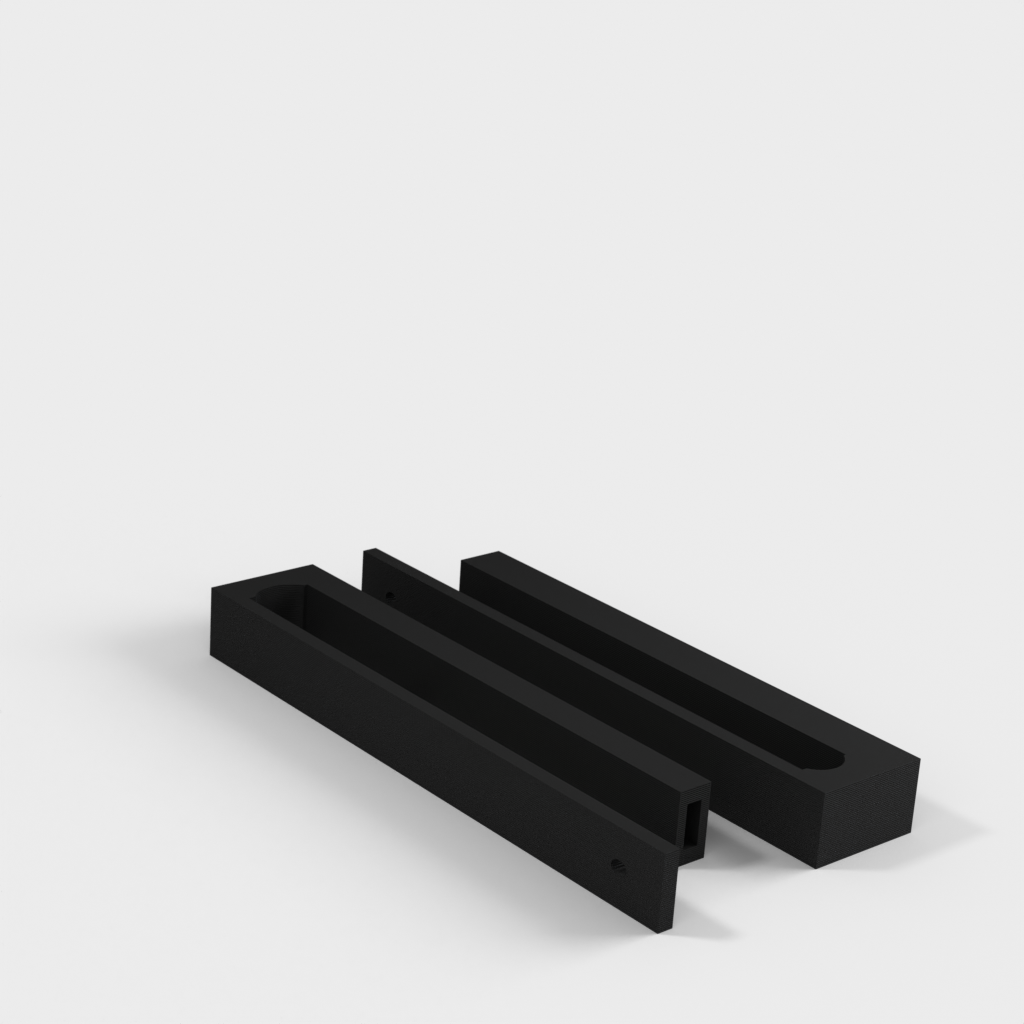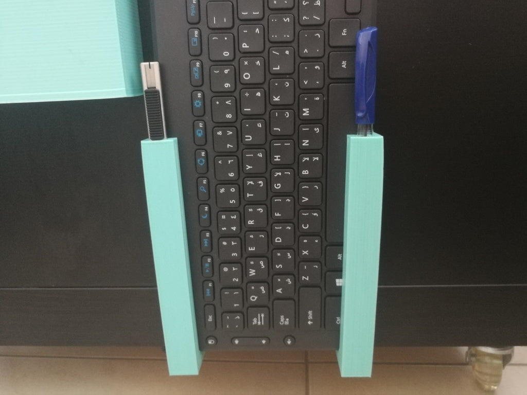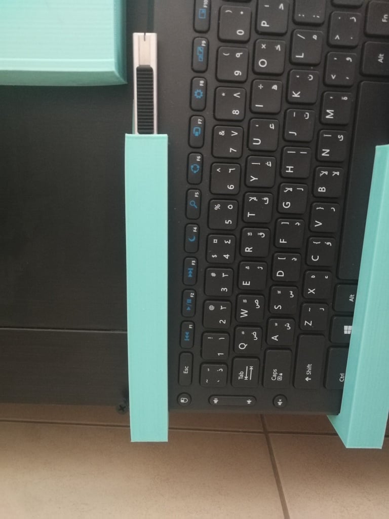 Det är ett tryck i två delar så att du kan justera det för att passa alla tangentbordsstorlekar. Observera att de två delarna inte är symmetriska; ena sidan är bredare än den andra för att passa den böjda formen på tangentbordet. Du kan valfritt importera den till valfri 3D-designapp för att anpassa den efter dina behov.
