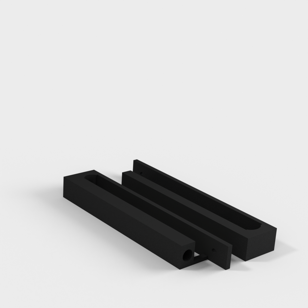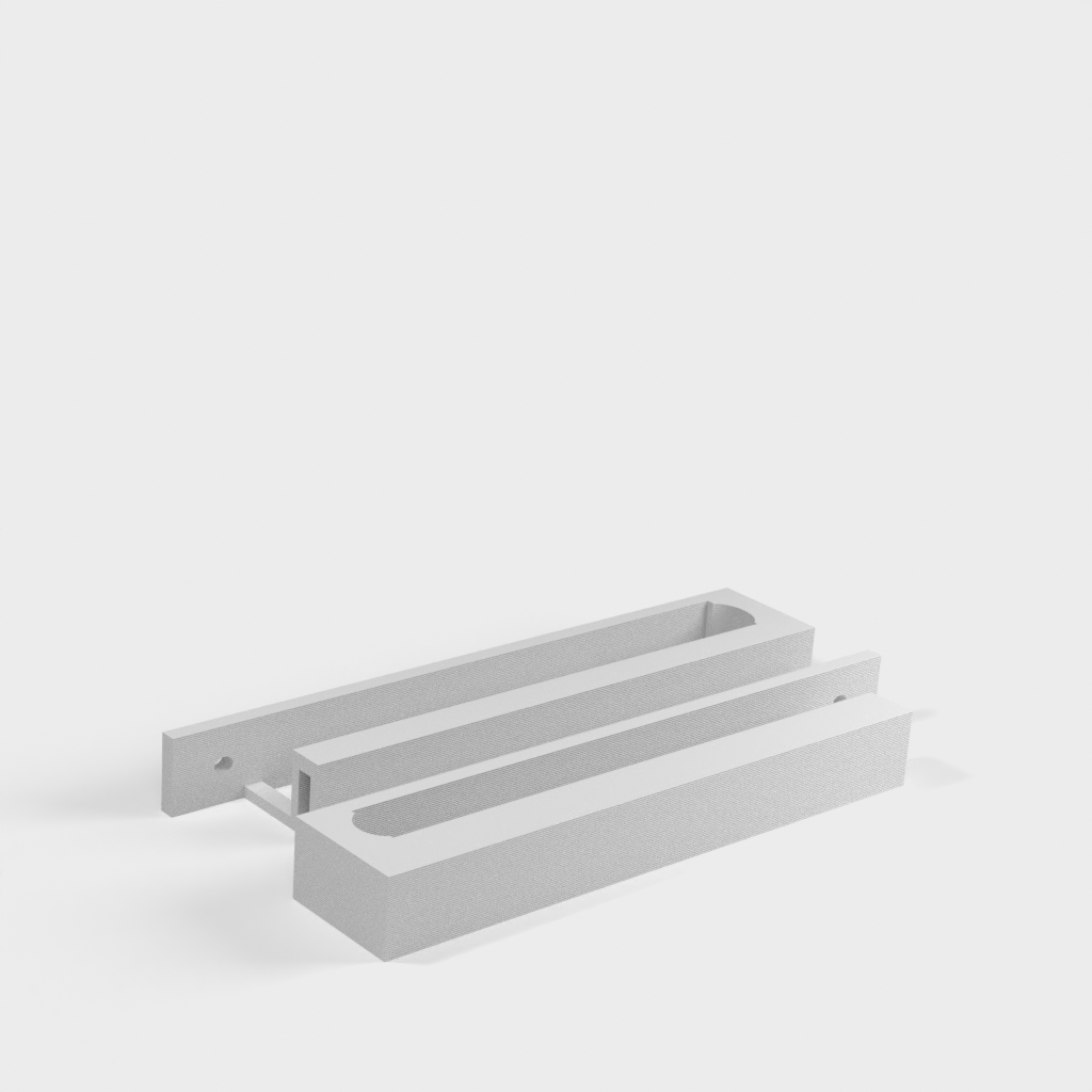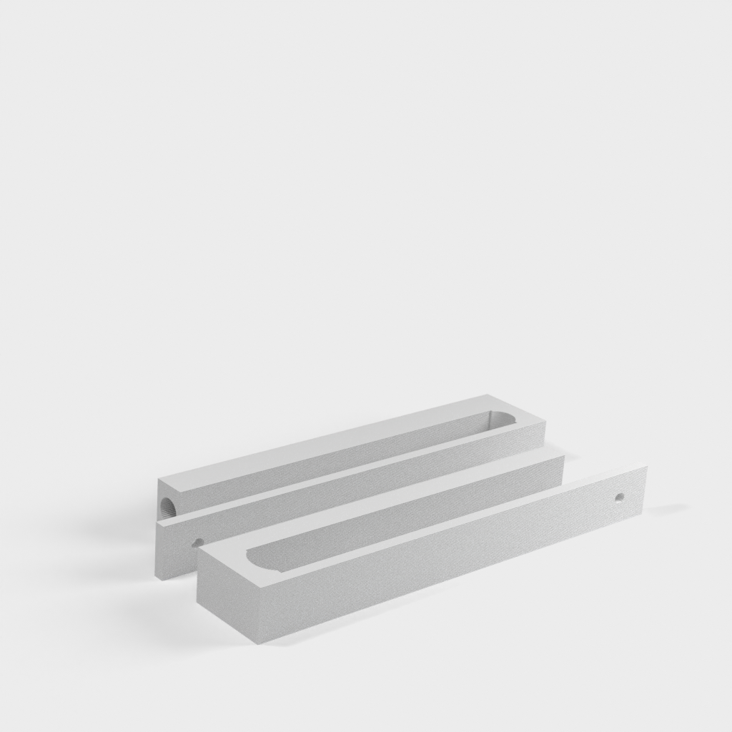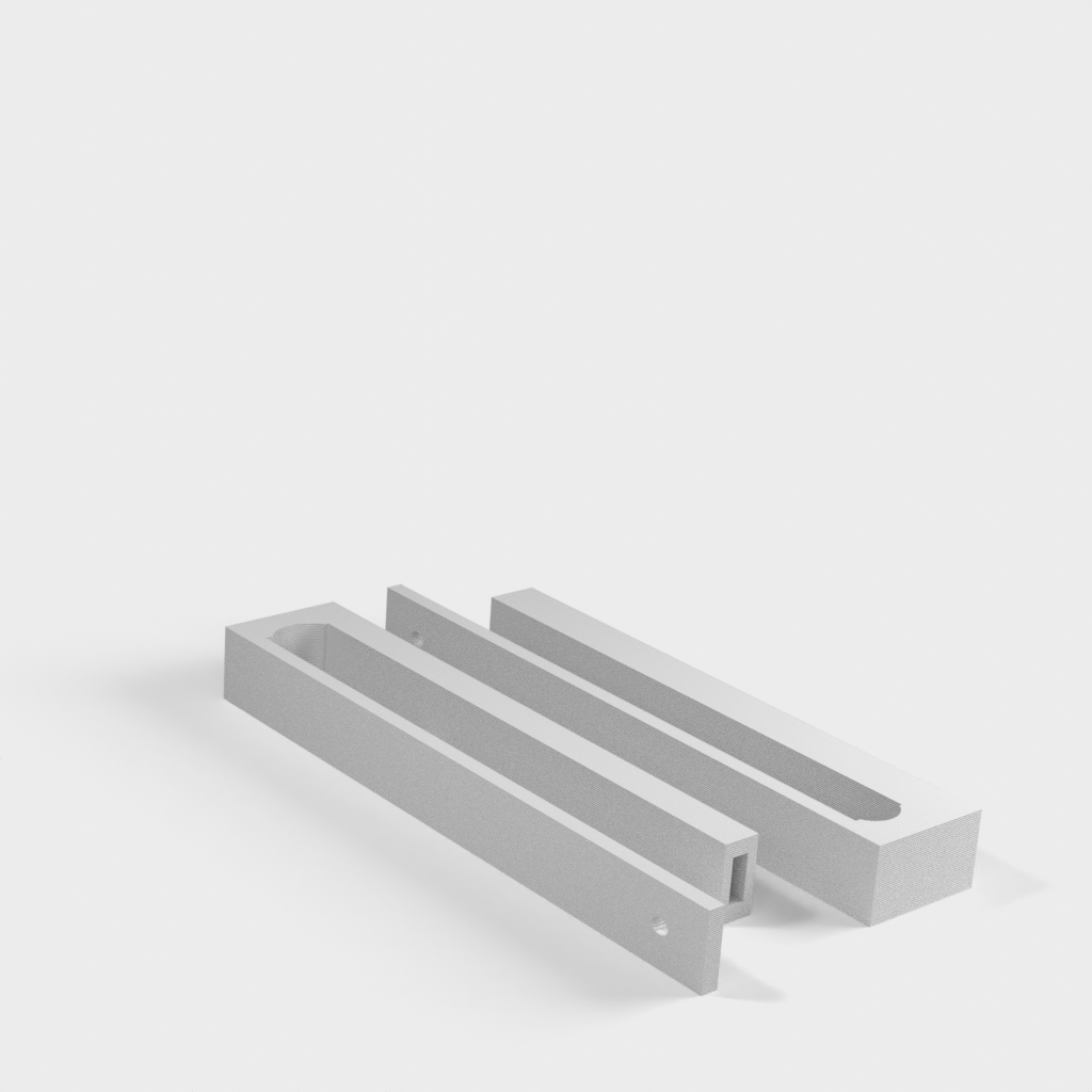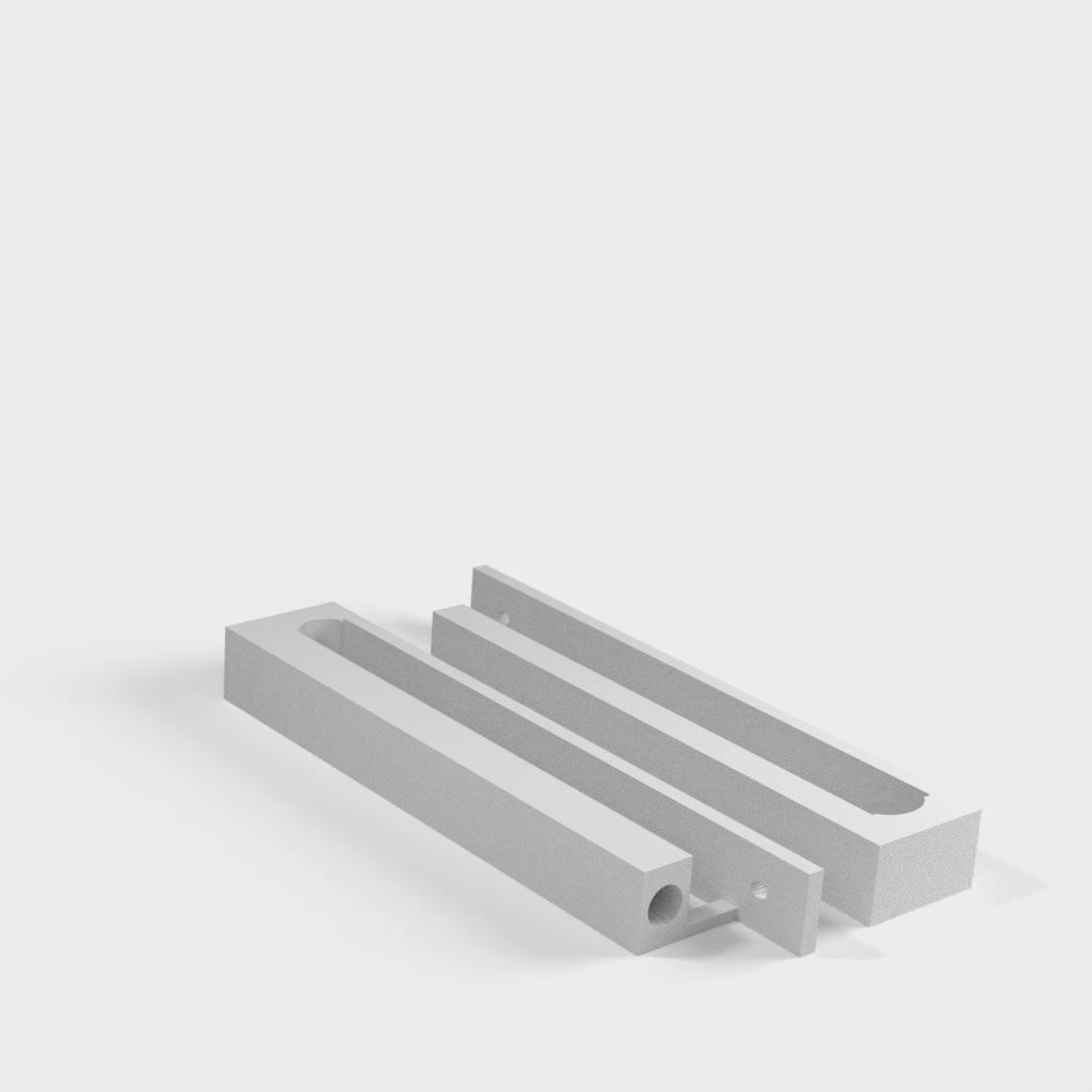 Det är ett tryck i två delar så att du kan justera det för att passa alla tangentbordsstorlekar. Observera att de två delarna inte är symmetriska; ena sidan är bredare än den andra för att passa den böjda formen på tangentbordet. Du kan valfritt importera den till valfri 3D-designapp för att anpassa den efter dina behov.