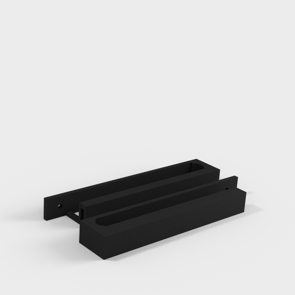 Detta är en tangentbordshållare som kan monteras på ditt soffbord för att säkerställa enkel åtkomst utan att ta upp plats på bordet. Den kan användas med alla tangentbord som används med TV.