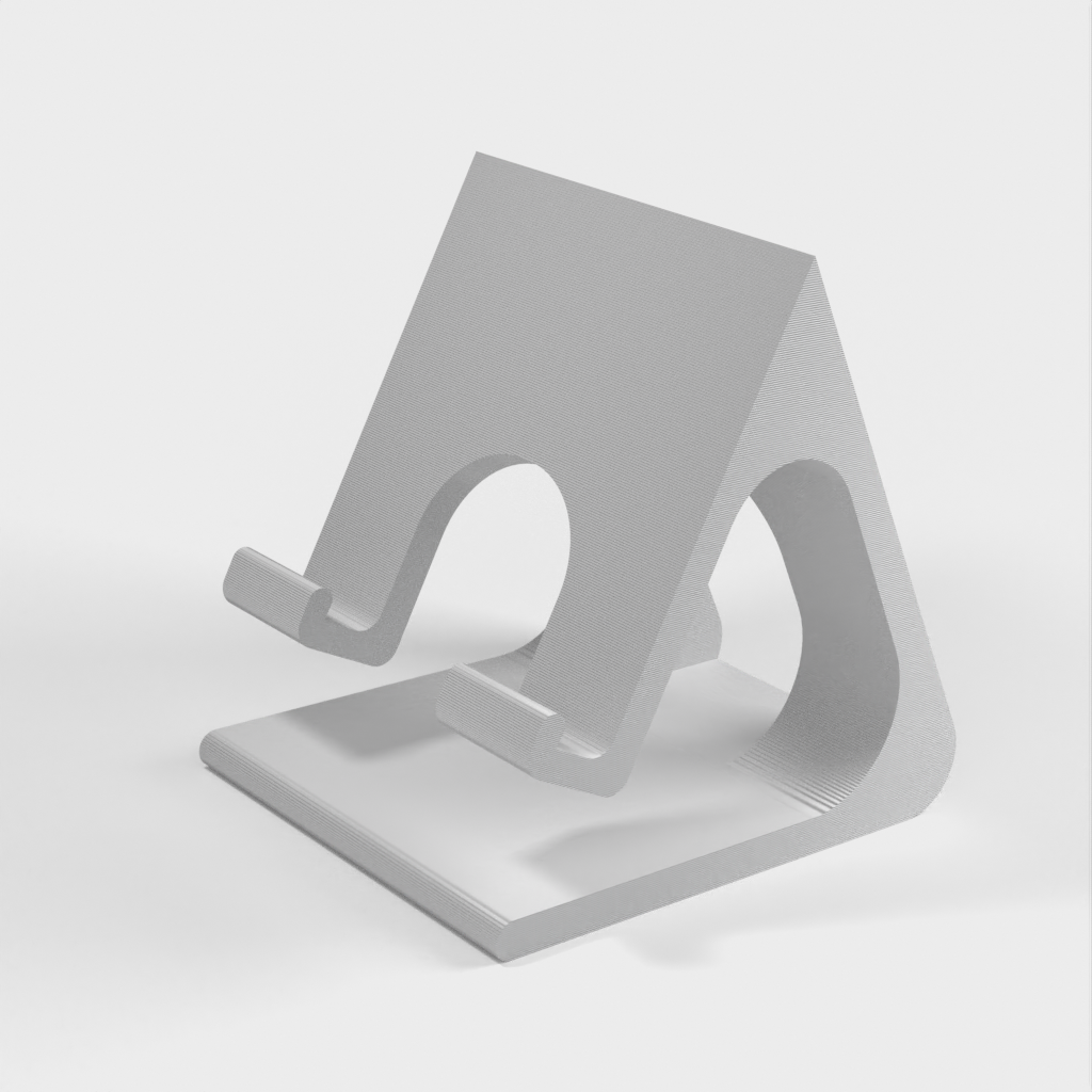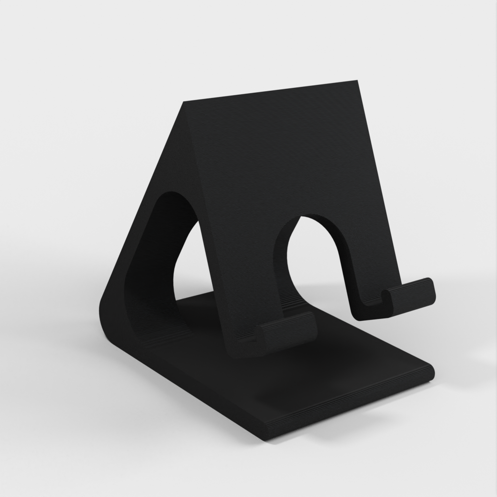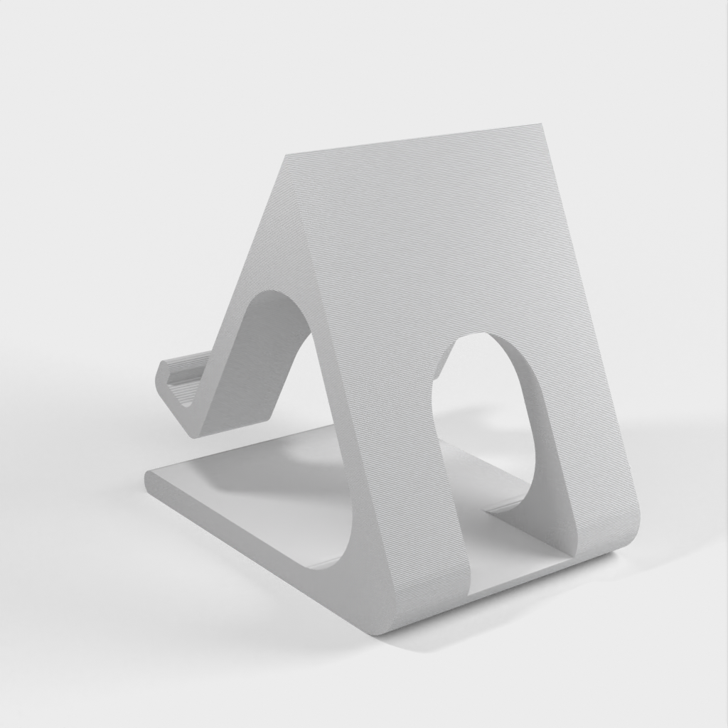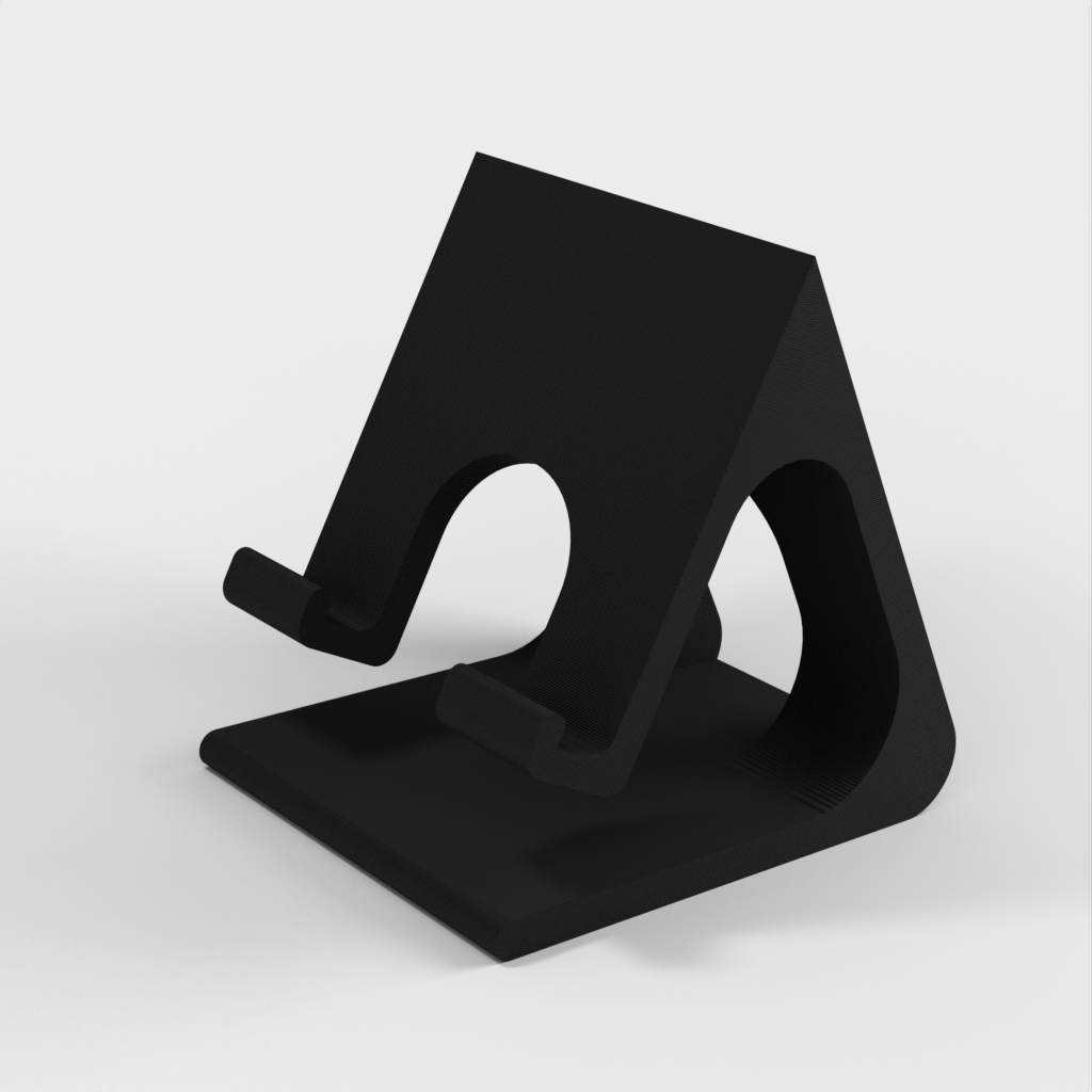Enkelt telefonställ för en iPhone 6 som även kan passa andra modeller. Kabeln går genom hålet så att den är redo att användas. Detta telefonställ är idealiskt för skrivbordet eller kontoret och kan enkelt anpassas för att passa dina behov.
