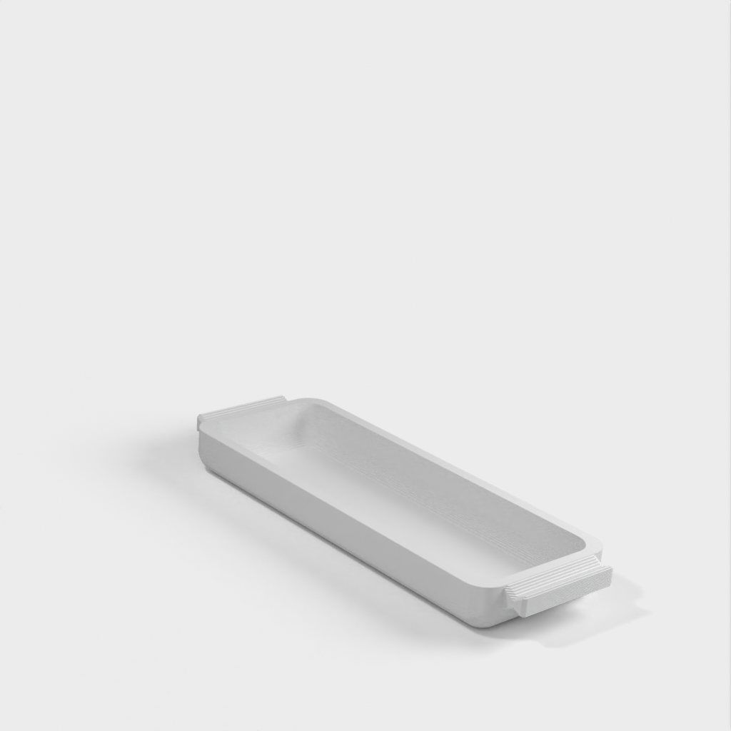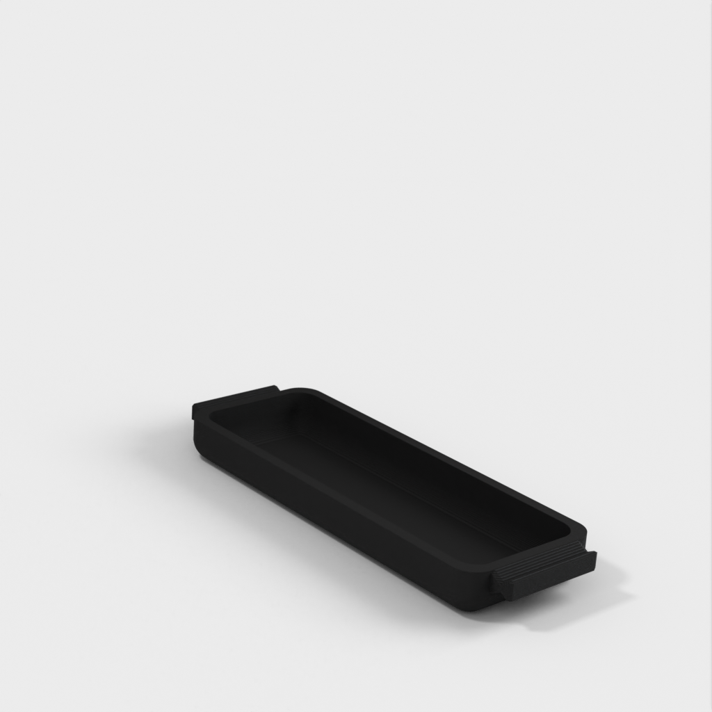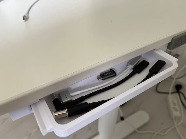 En låda med skjutreglage för höj- och sänkbart skrivbord "Bekant" från IKEA. Denna låda är lägre i höjd och längden är anpassad till "Bekant" skrivbordet. Perfekt för mina USB-C-kablar och adaptrar.