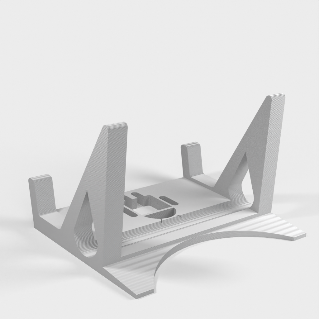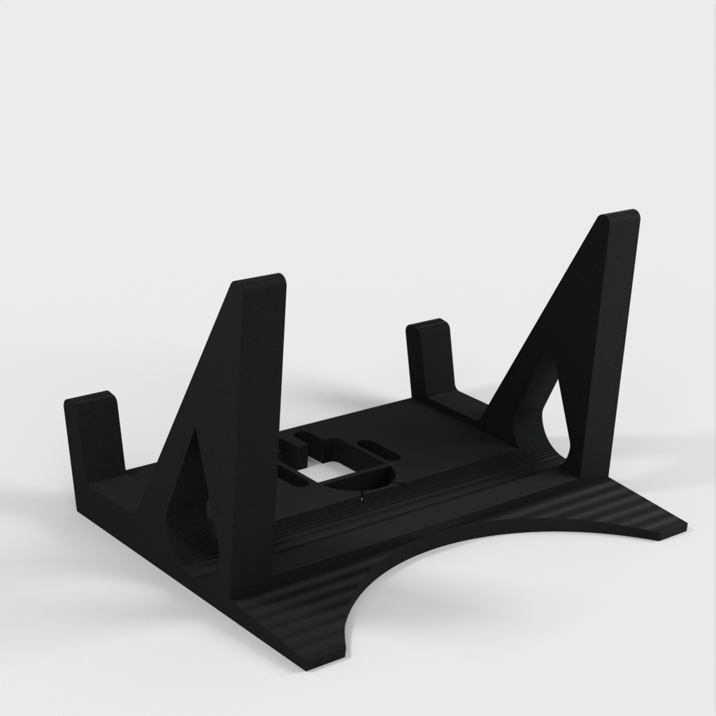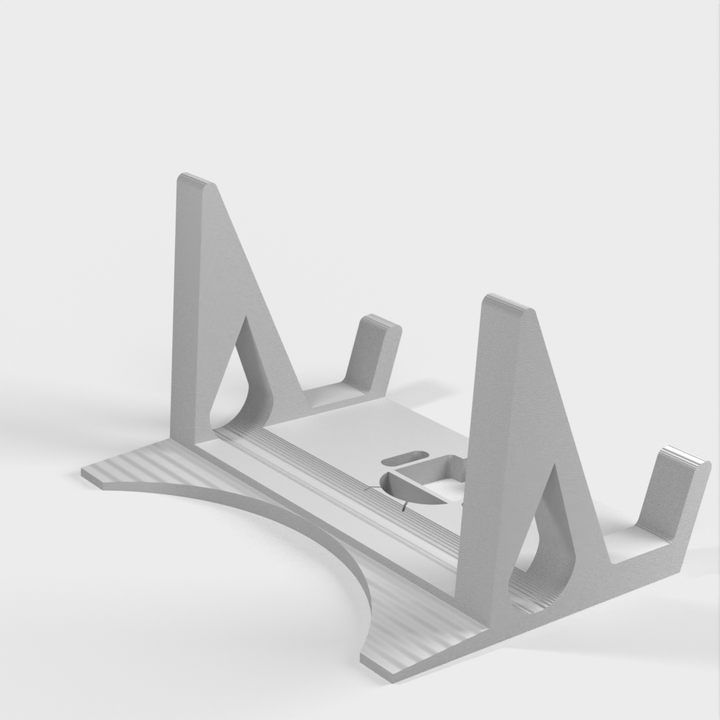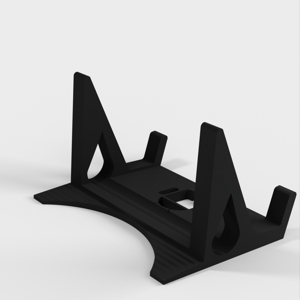 Universal Android-mobiltelefonstativ - lämplig för både vertikal och horisontell placering av din telefon. Ny version med utökad bas för att förhindra att den faller med telefoner större än 3,5" (testad med 4" och 4,5" telefoner). Den har även en skena i full bredd för bättre säkerhet mot att telefoner glider mellan. En modell för en 10" surfplatta är nu tillgänglig.