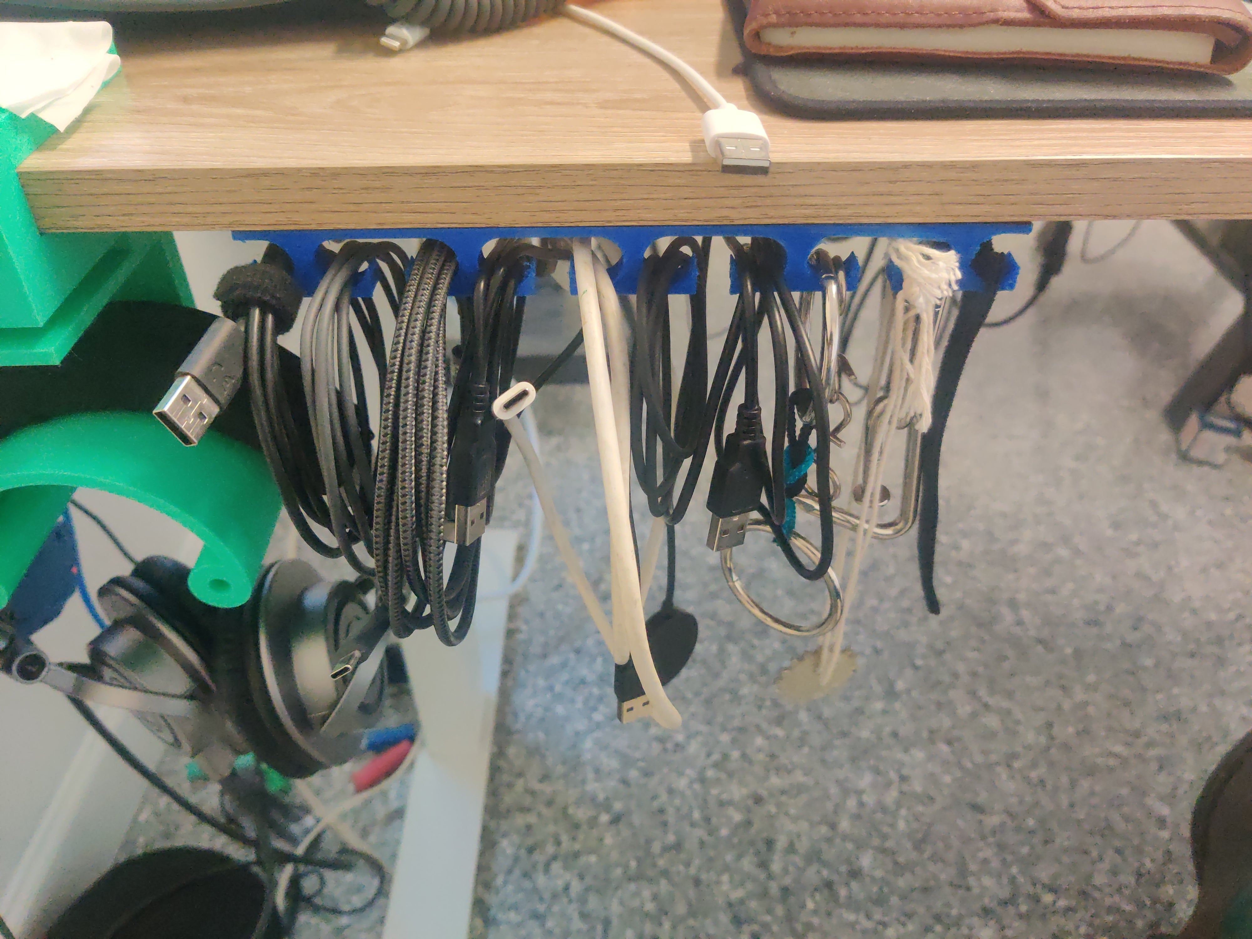 Det här är en liten kabelarrangör som jag gjorde för att hålla USB-kablar snyggt ihoprullade på mitt skrivbord. Jag fäste den under mitt skrivbord med dubbelhäftande tejp. Jag använde personligen 10 mm Tesa-tejp, men 3M-tejp kan också användas. Denna produkt hjälper till att hålla ditt område snyggt och snyggt genom att organisera dina USB-kablar enkelt och effektivt.