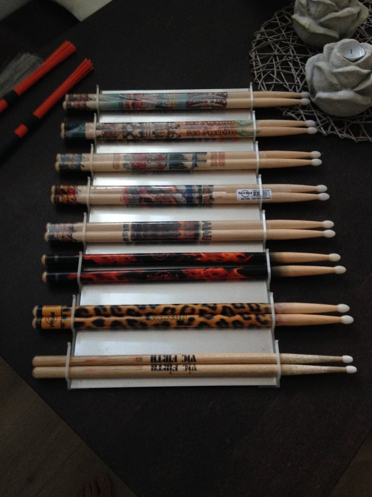 Enkel väggmonterad hållare som kan lagra upp till 5B trumpinnar med en diameter på upp till 17 mm. Denna kompakta design ger enkel åtkomst till extra trumpinnar, så att du alltid har en backup redo medan du spelar. Aluminiumbas spraymålad i svart för ett strömlinjeformat och professionellt utseende.