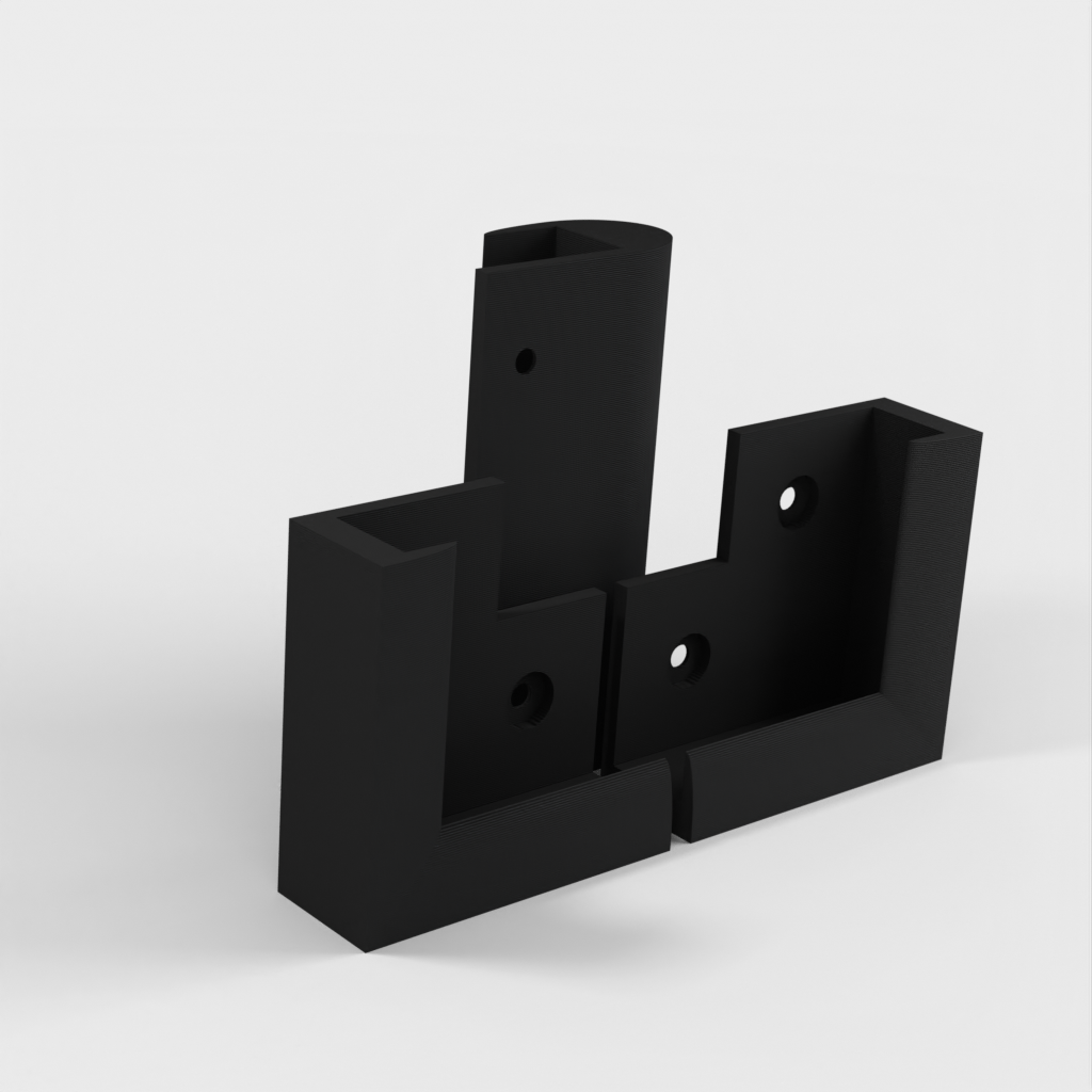 Ett väggfäste för vilken surfplatta som helst i samma storlek som en eldplatta. Detta väggfäste för surfplattor har 3 hörn som kan monteras på olika avstånd beroende på surfplattans storlek.
