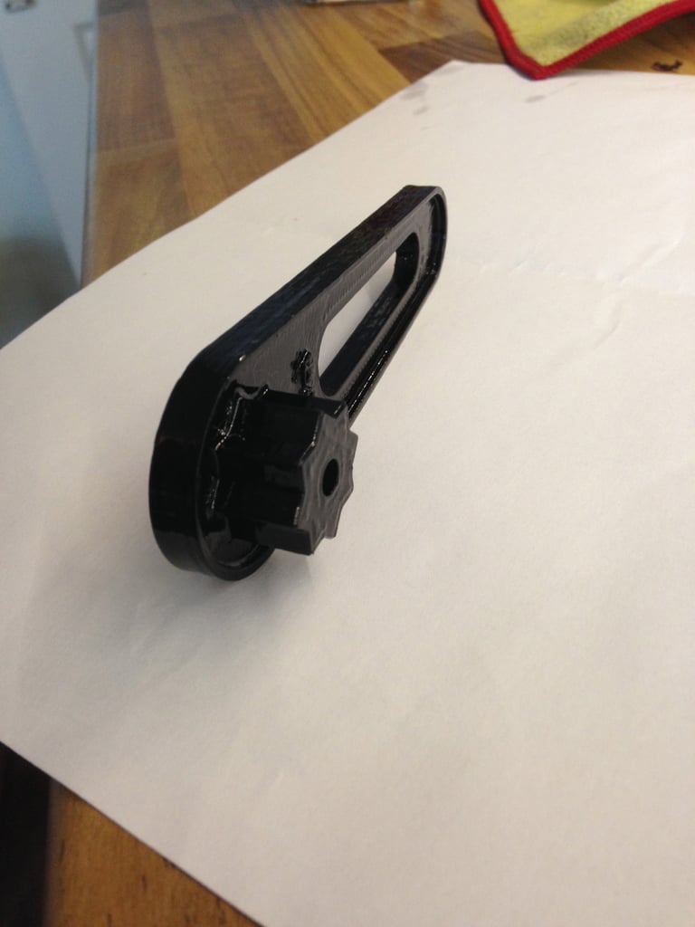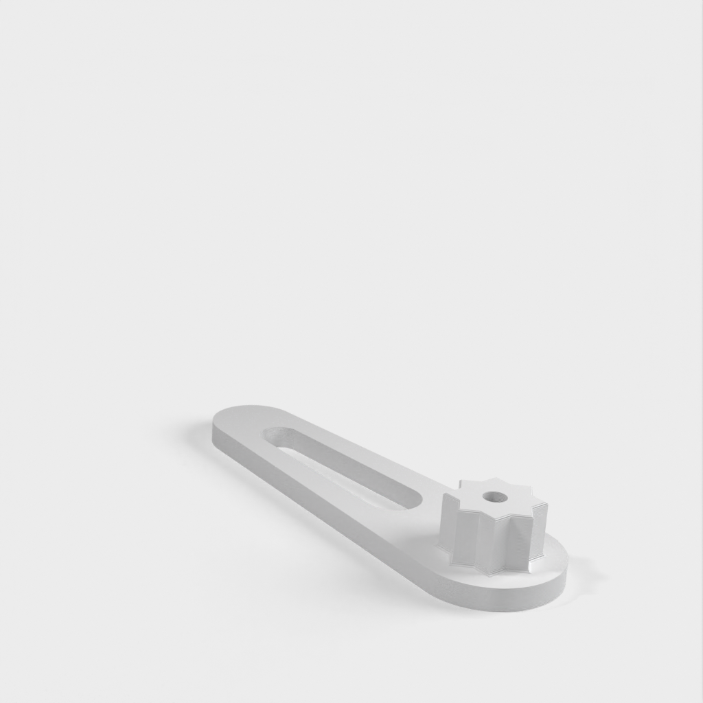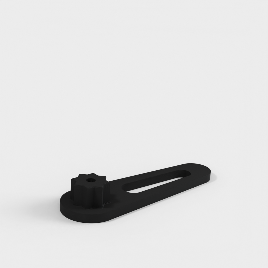 En plastnyckel för användning på en båt med vinschhandtagslock. Vinschhandtag skadar det mjuka aluminiumet och ger för mycket hävstång, vilket orsakar överdragning och bindning. Den här nyckeln är kort eftersom kapslarna ofta placeras på obekväma ställen och för att förhindra överdragning. Dessutom är det mycket billigare än vinschhandtag och rostfria nycklar när de faller överbord.