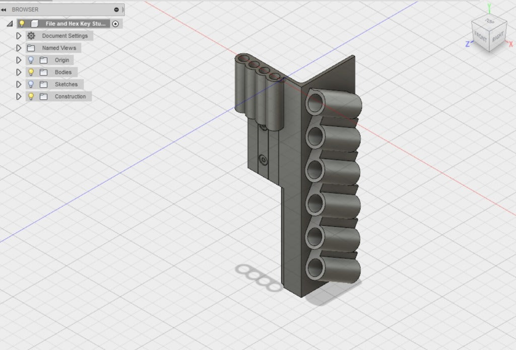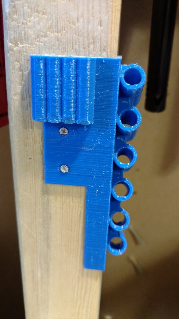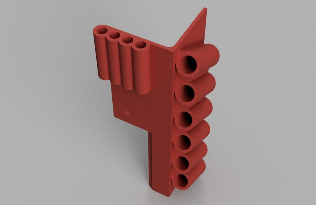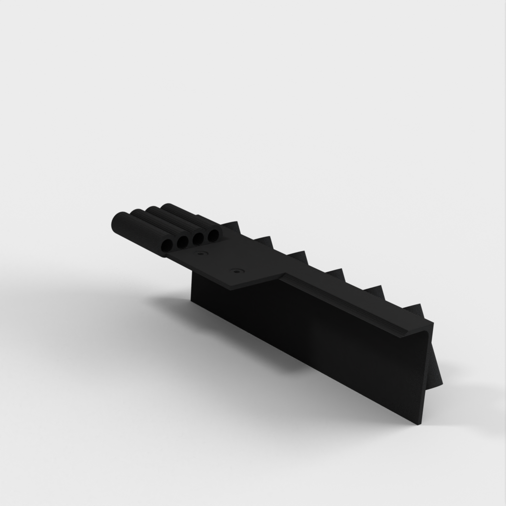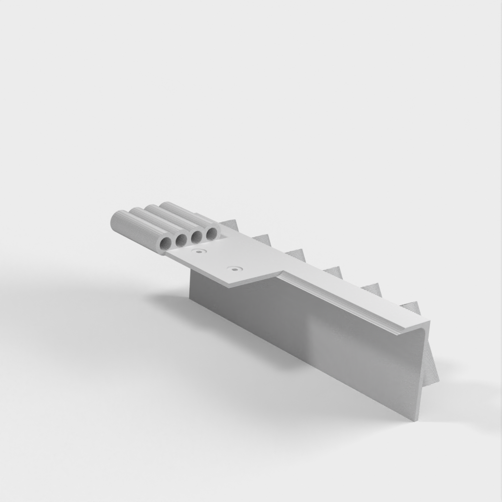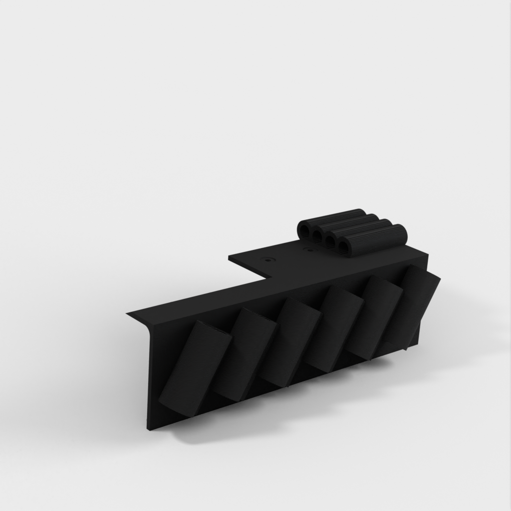 Dubbfäste verktygshållare designad för 6-delad nålfil (som dessa: http://a.co/iLnJ8kb ) eller liknande verktyg samt 4 insexnycklar/nyckel, som de som levereras med Anet A8 3D-skrivaren . Sex spår är vinklade och åtskilda för att förhindra att verktygshandtagen kolliderar. Två försänkta spikhål för montering på väggregel.