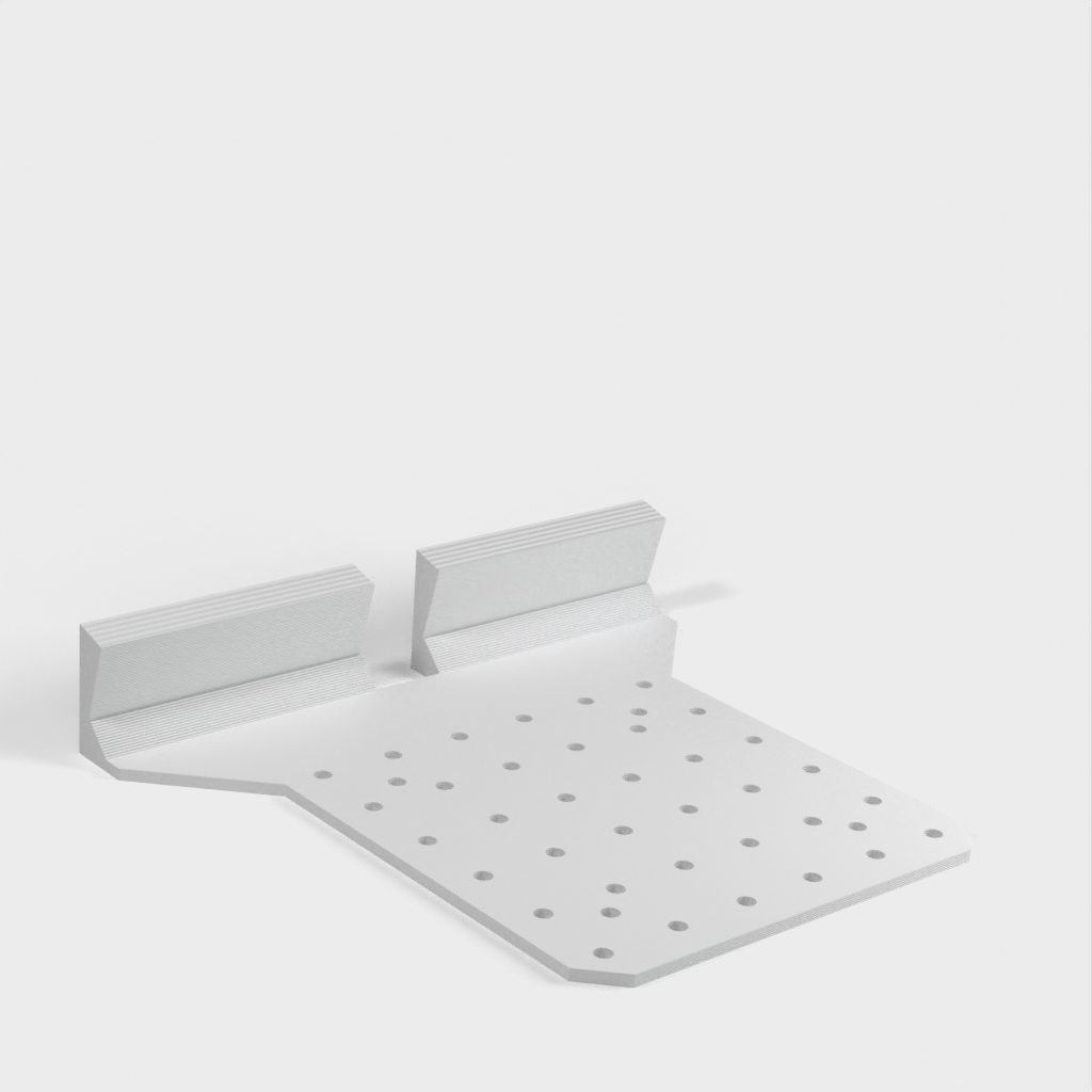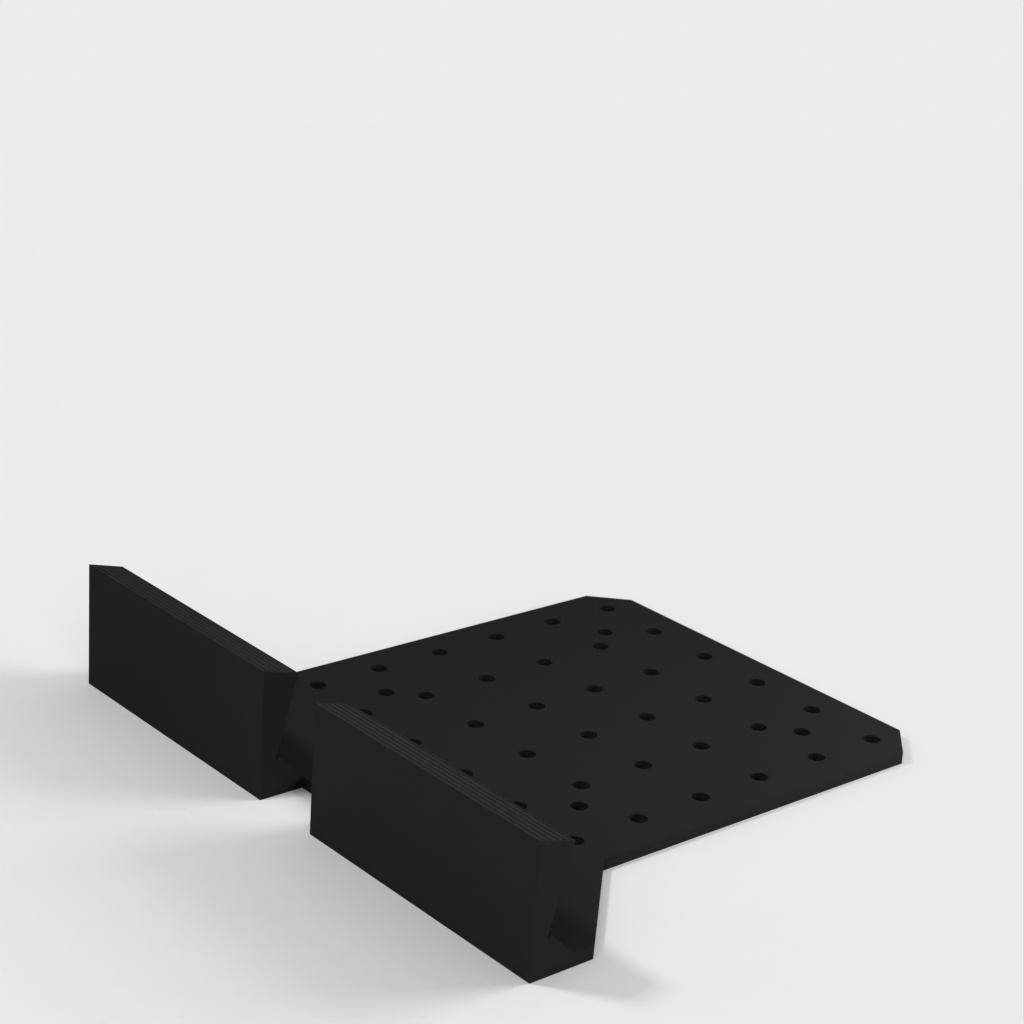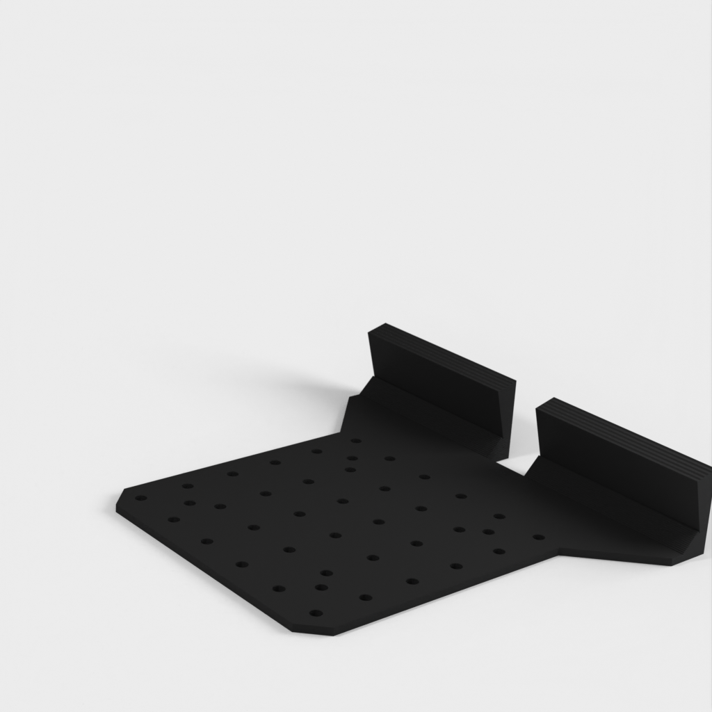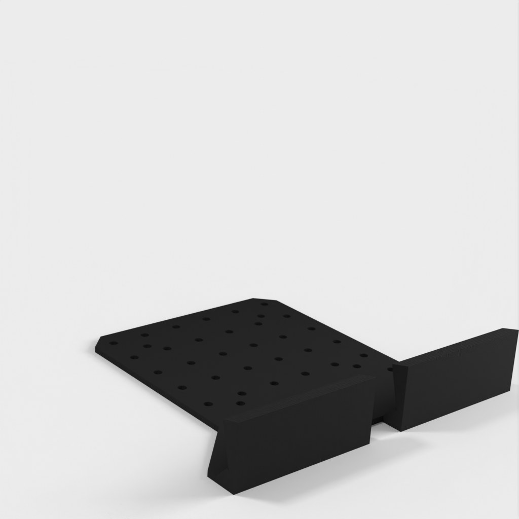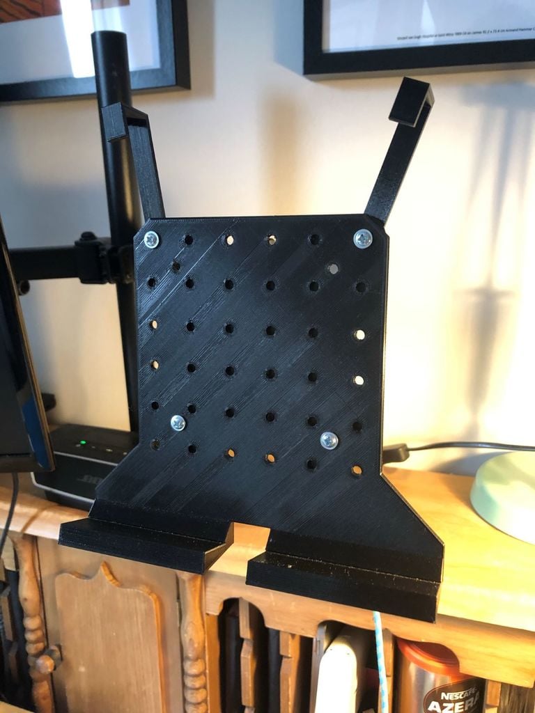 Enkel och smart VESA-monteringshållare för iPad och liknande surfplattor som gör det enkelt att fästa din surfplatta på en monitorarm med VESA-fäste. Detta skapar extra utrymme på ditt skrivbord och håller din iPad/surfplatta säkert på plats samtidigt som du kan justera vinkeln som du vill. Hållaren har även en central kanal för laddningskabeln, vilket gör det enkelt att ladda medan din iPad/surfplatta är i stående läge.